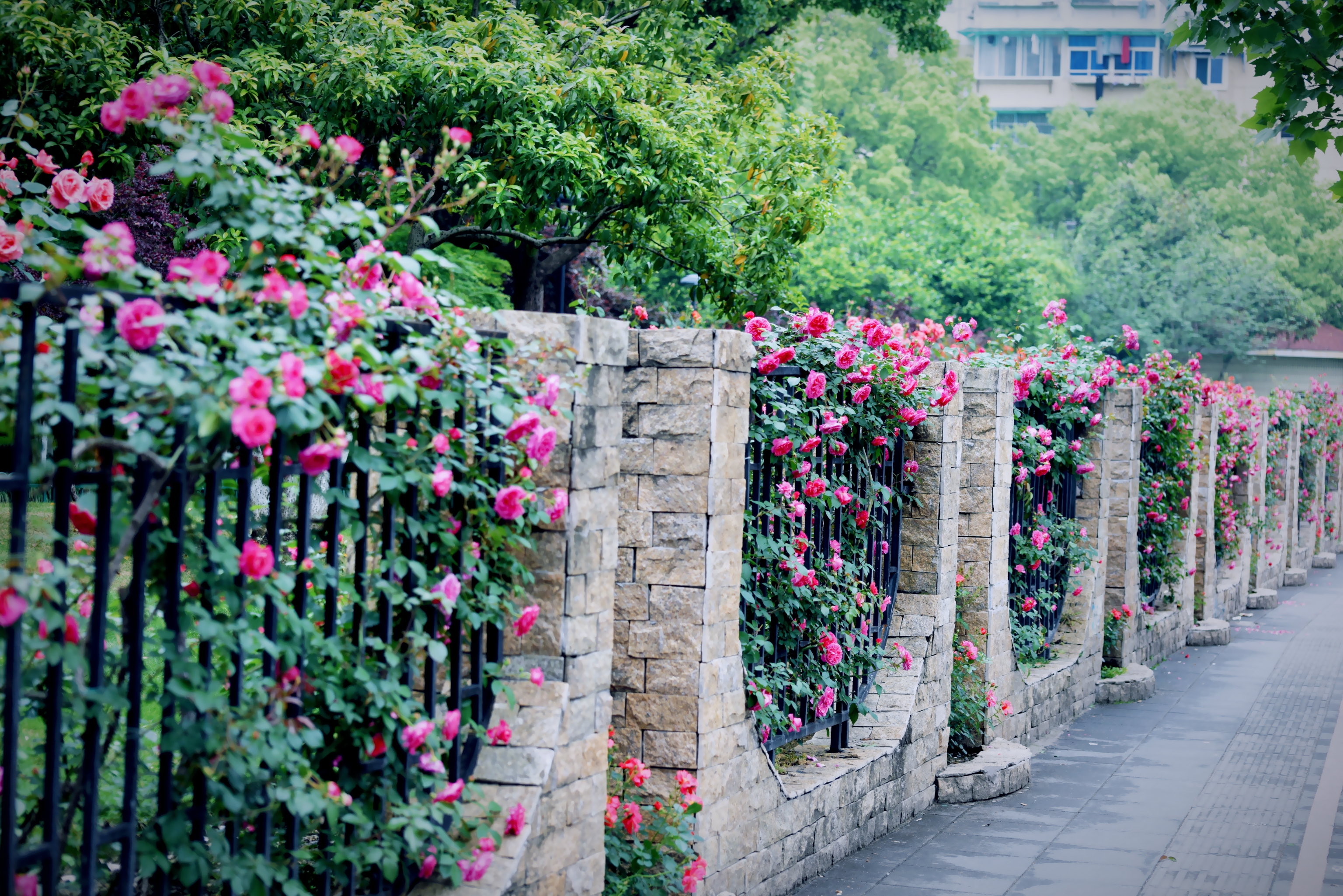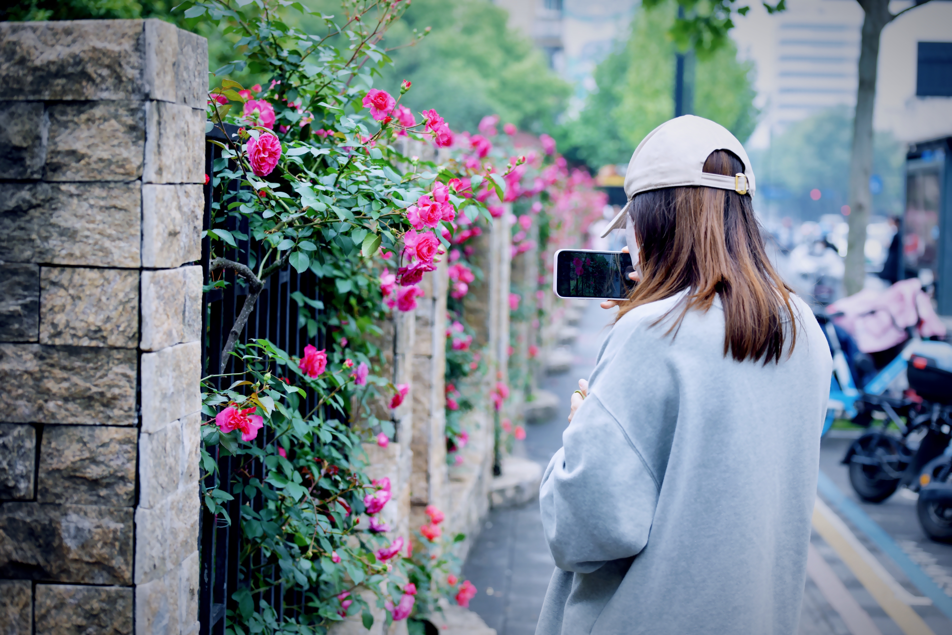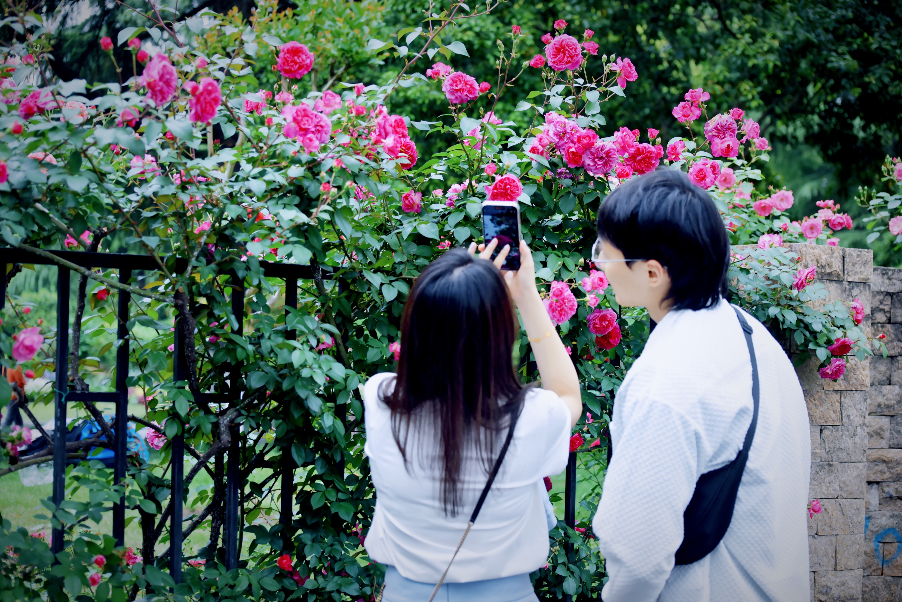 杭州大关公园月季花墙变网红打卡点了。#寻访春天的故事#