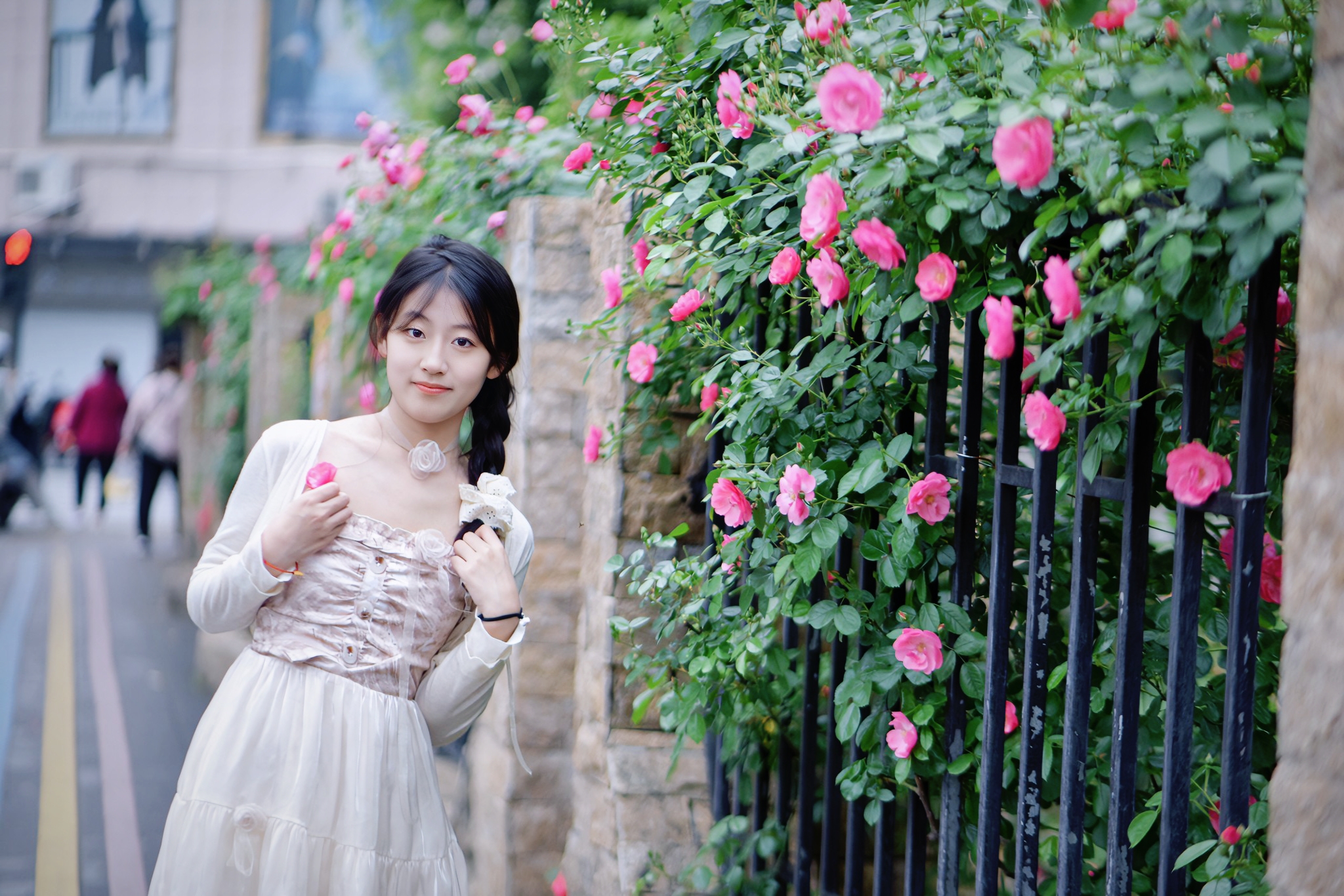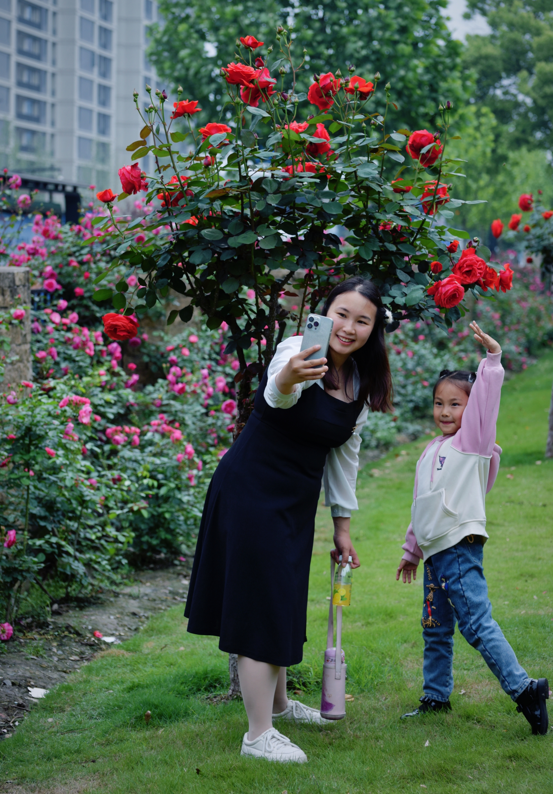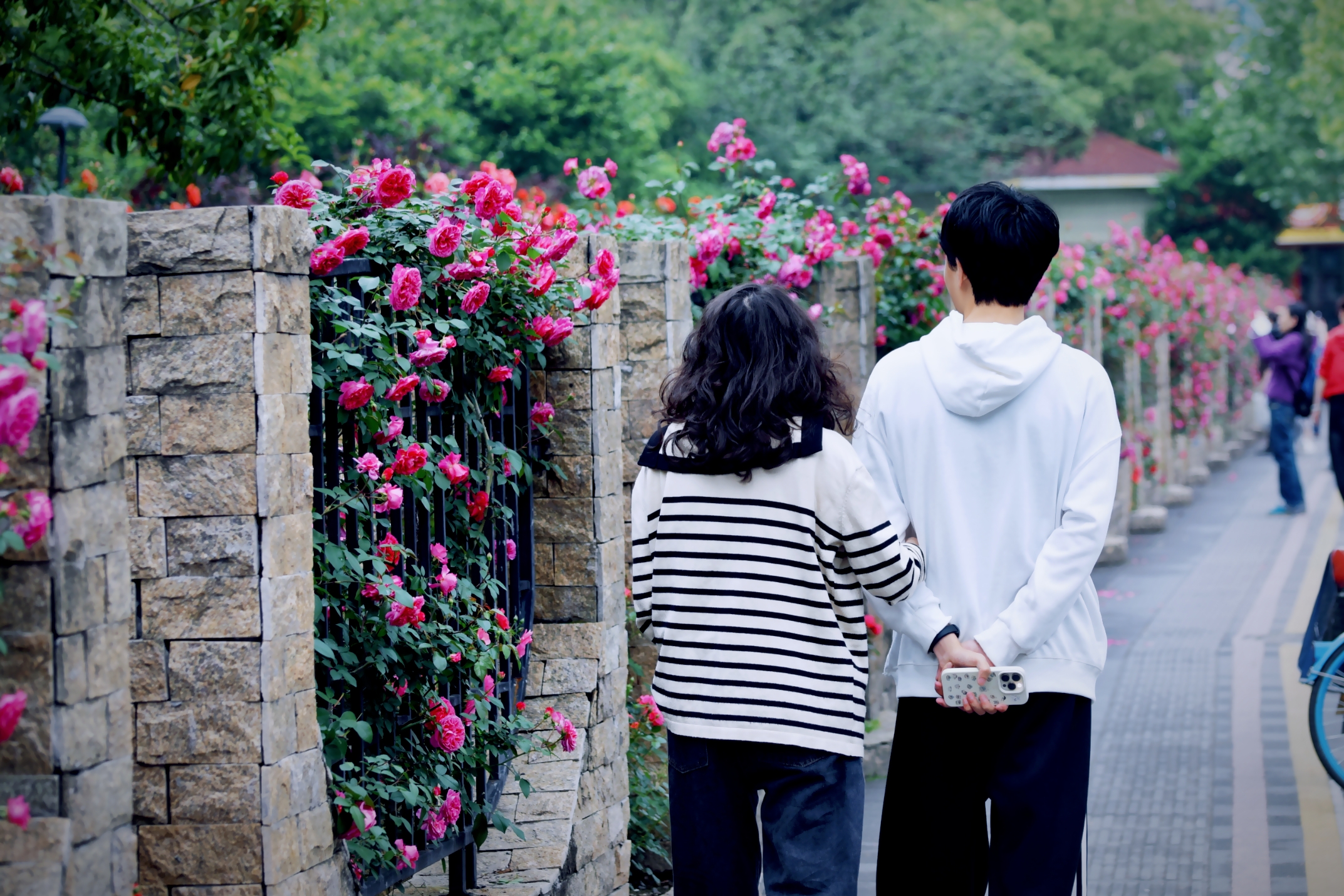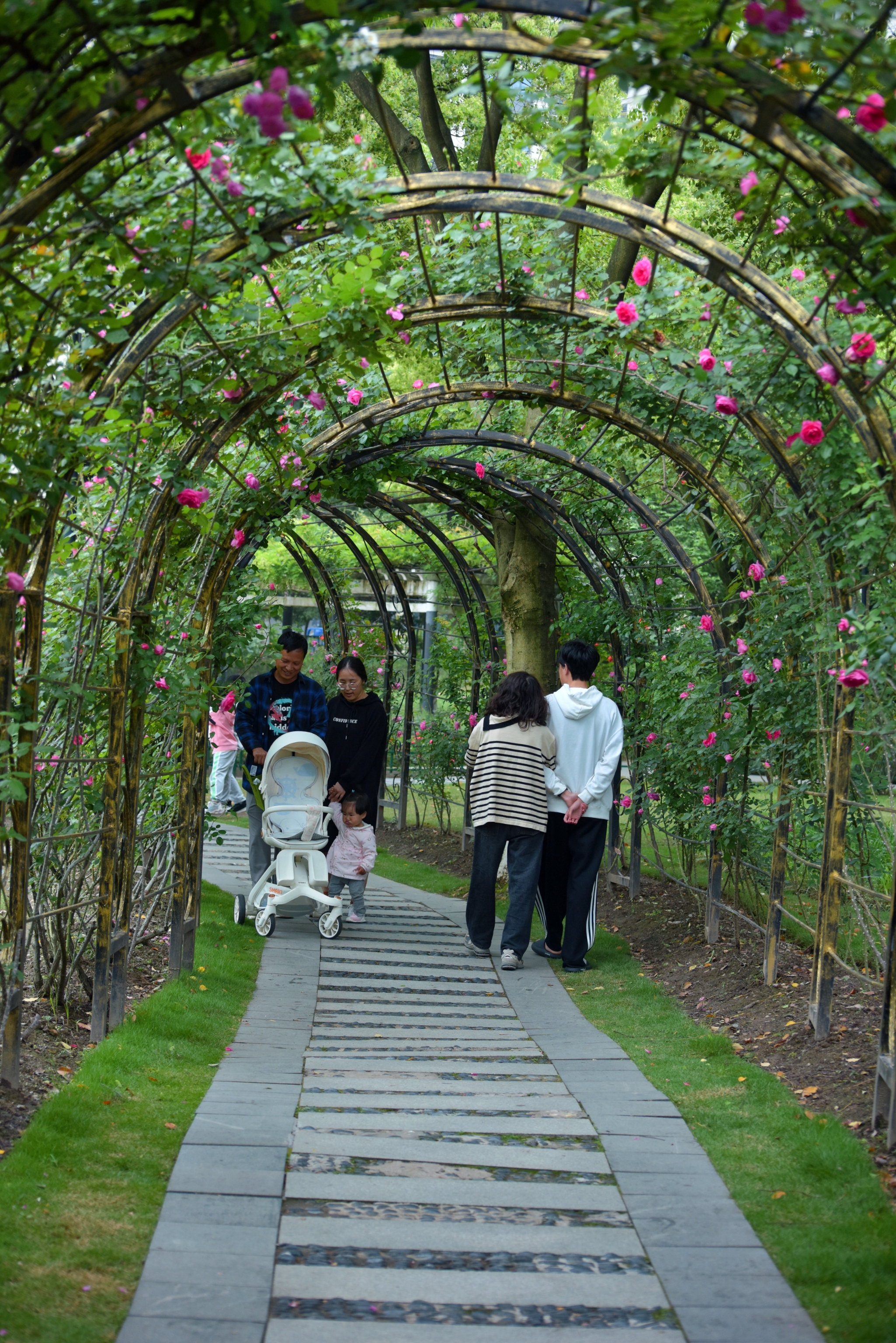 杭州大关公园月季花墙变网红打卡点了。#寻访春天的故事#