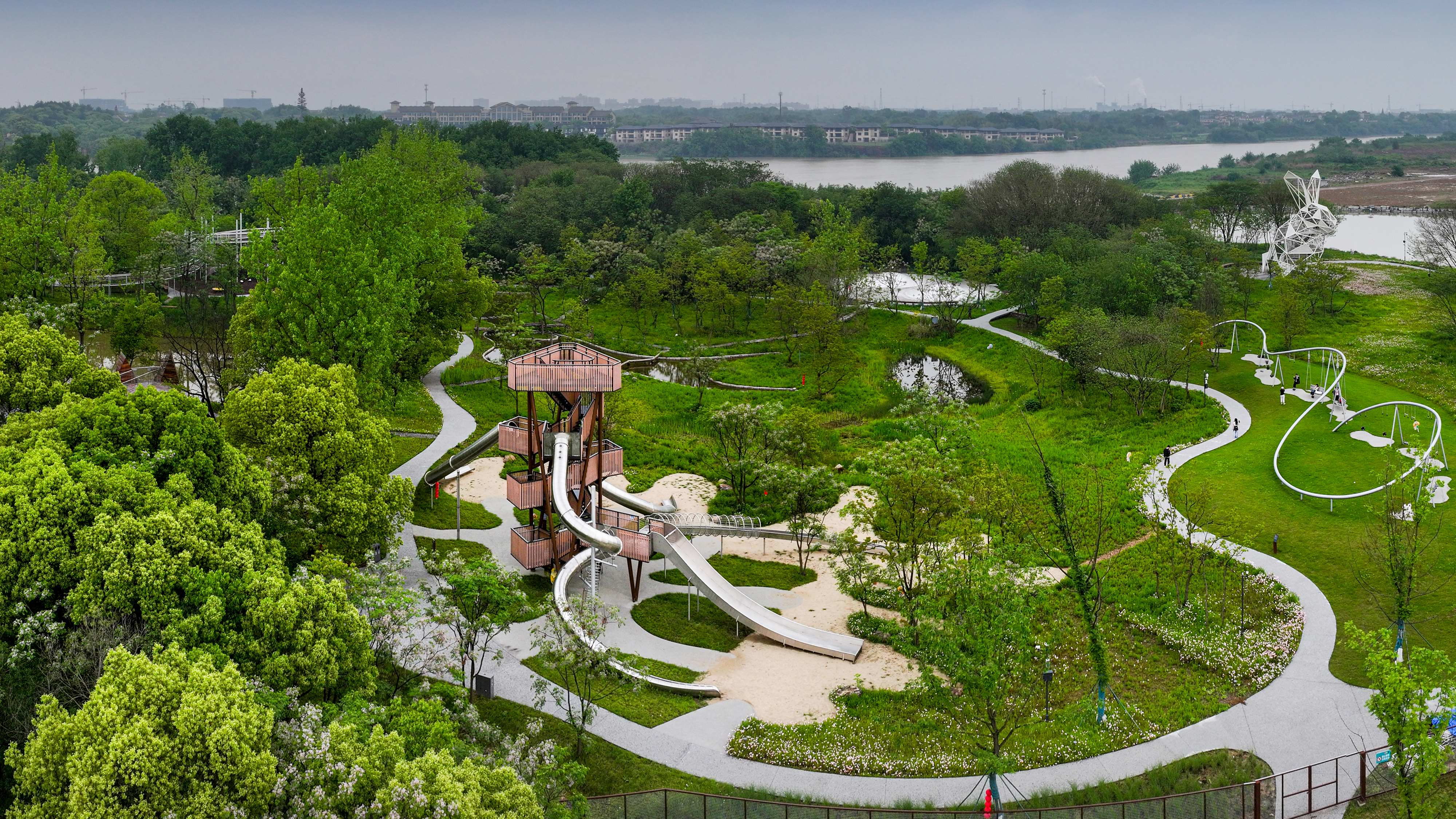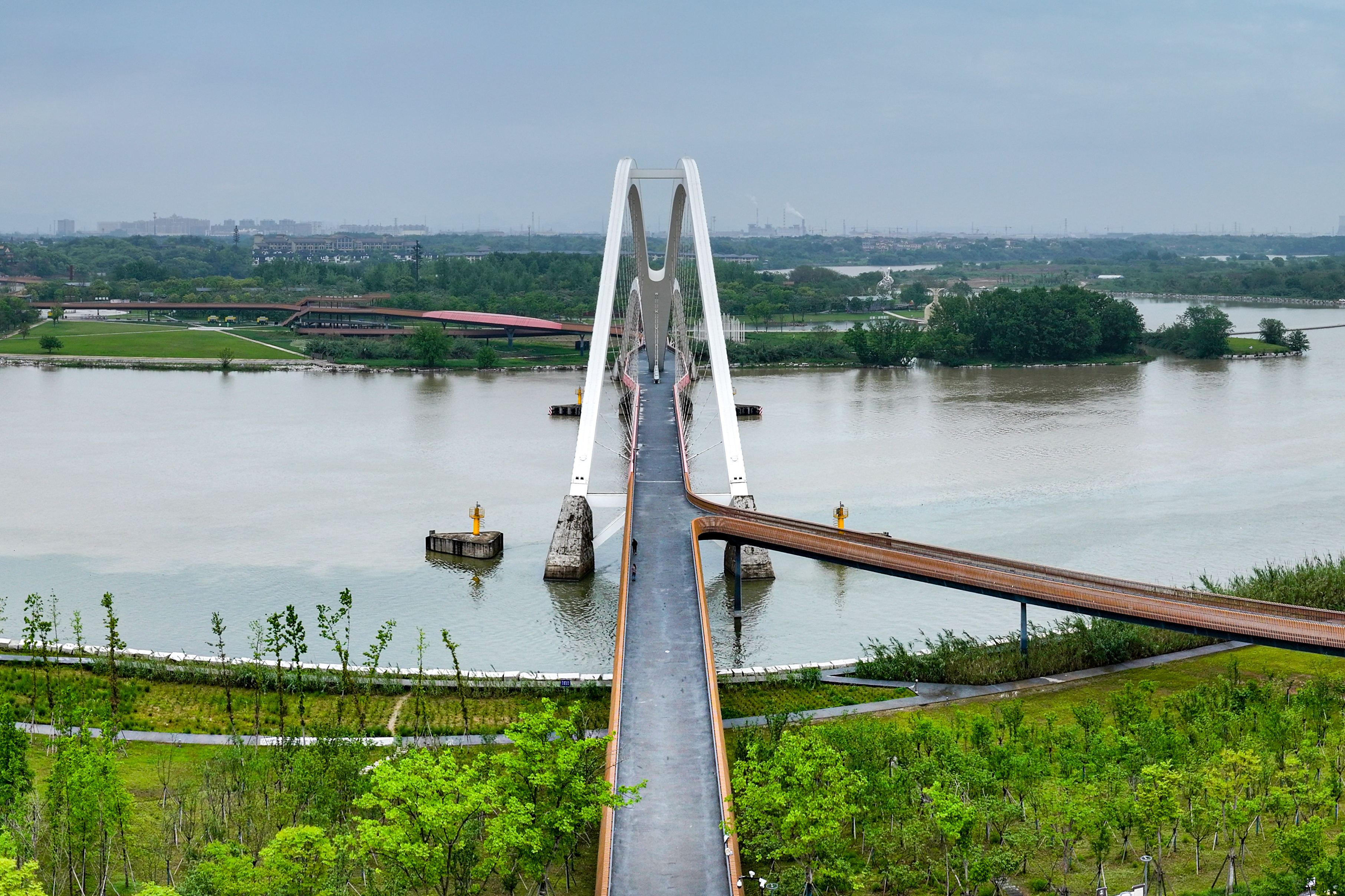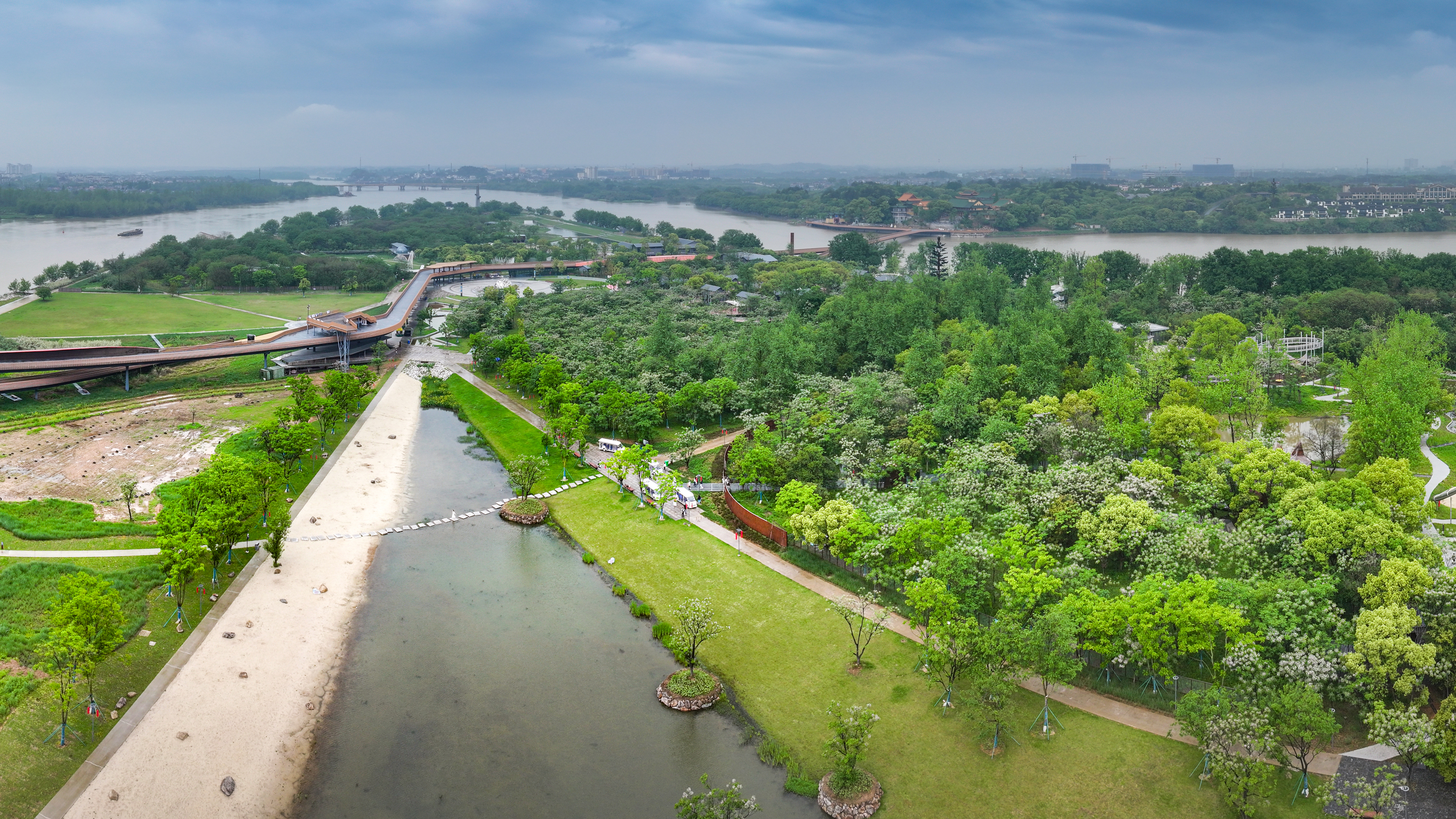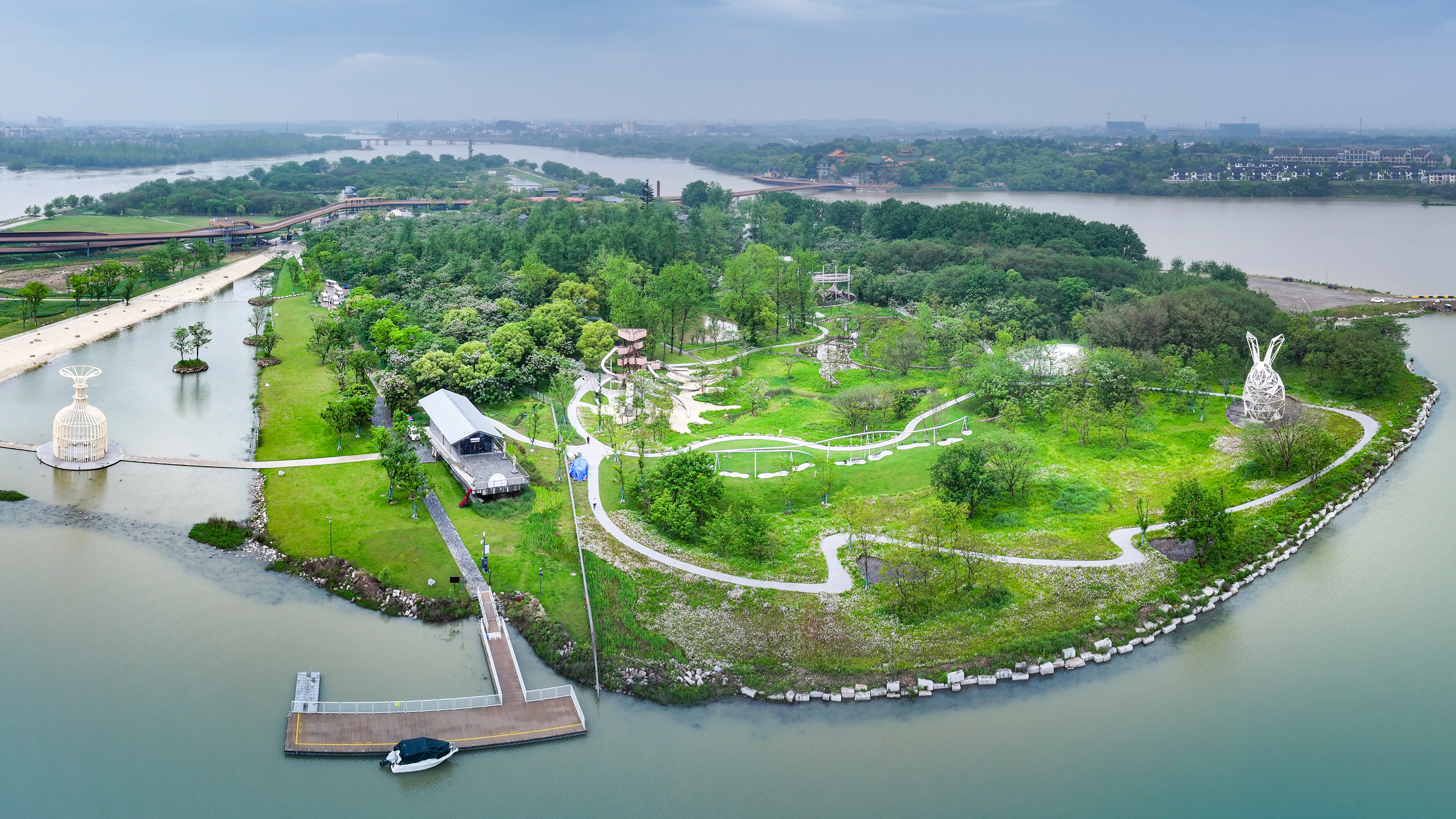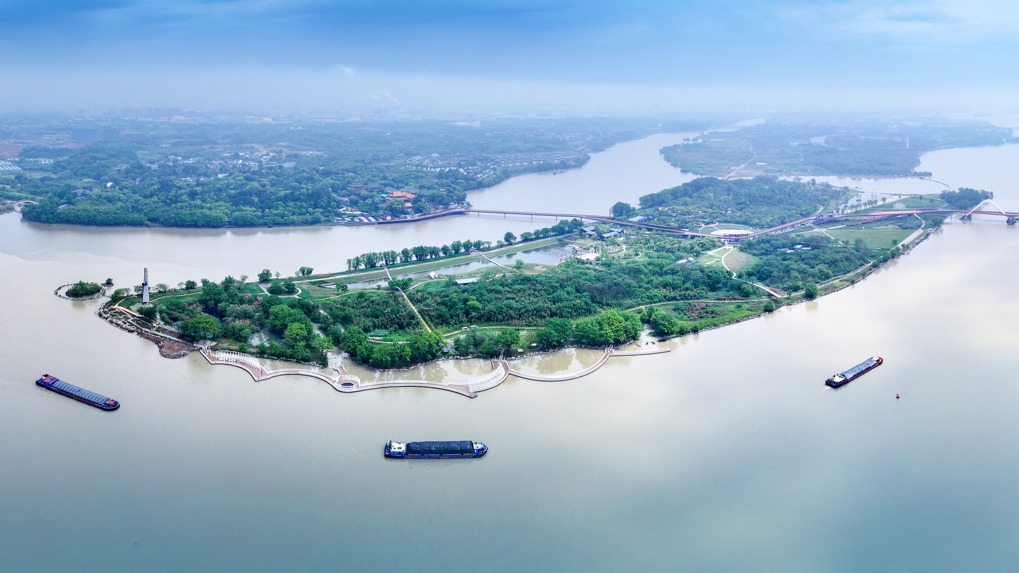 龙游凤翔洲水文化公园位于龙游瀫中央湖区,占地面积约 1300 亩,其中室内水情教育基地315 平方米,基地面向社会公众开展水情教育,具有显著的水情科普教育、水文化展示、节水宣传、全域幸福河湖示范等功能。