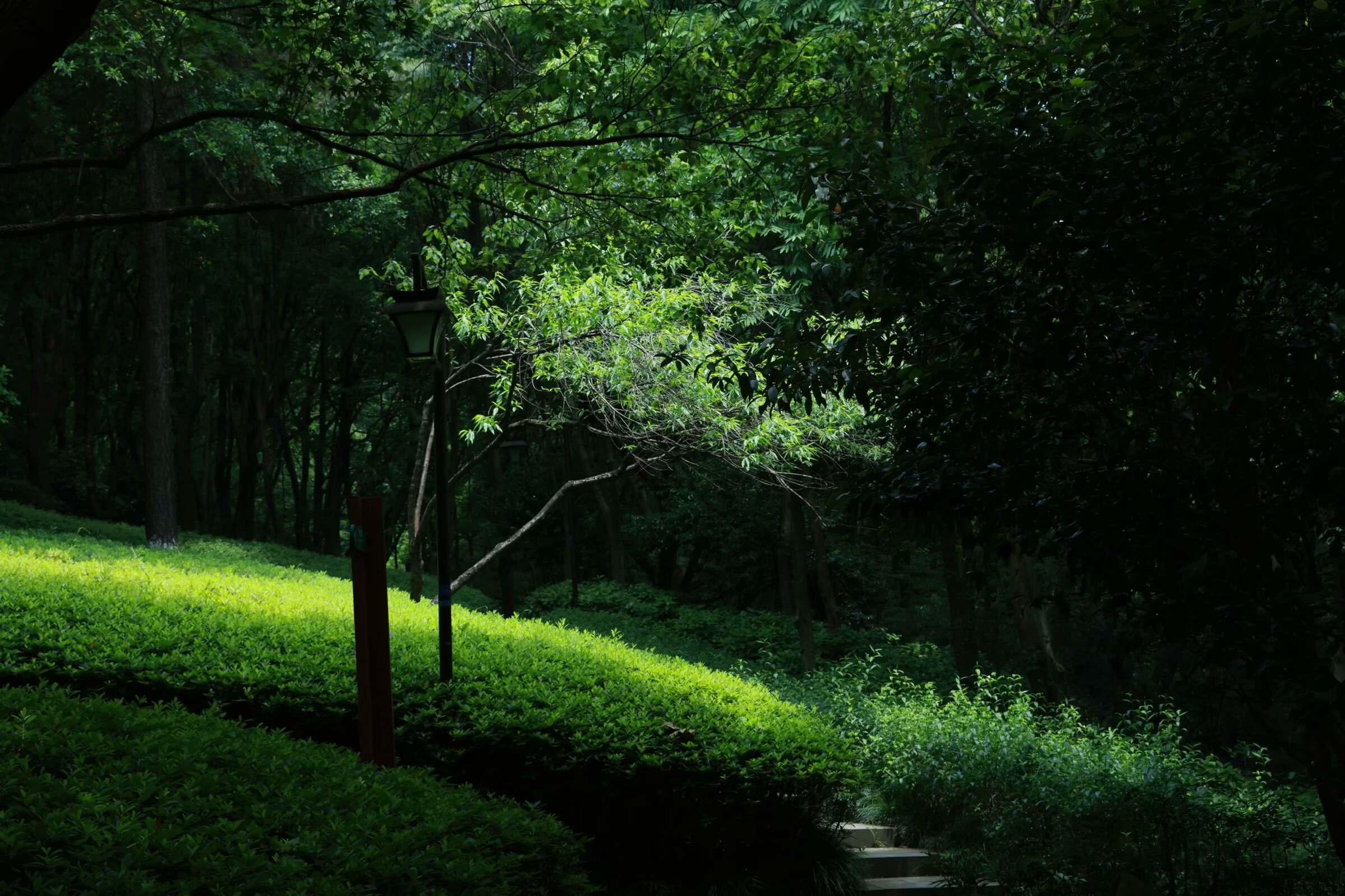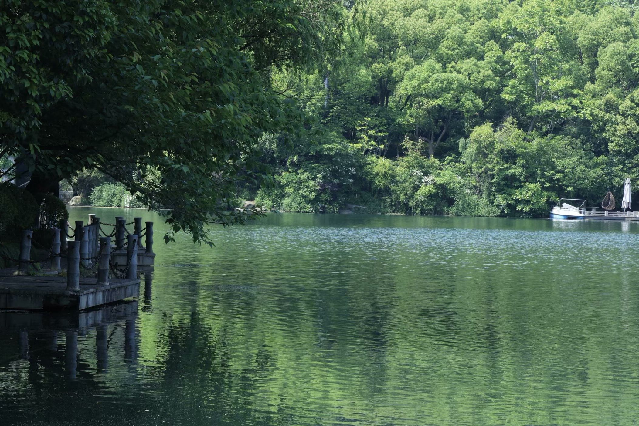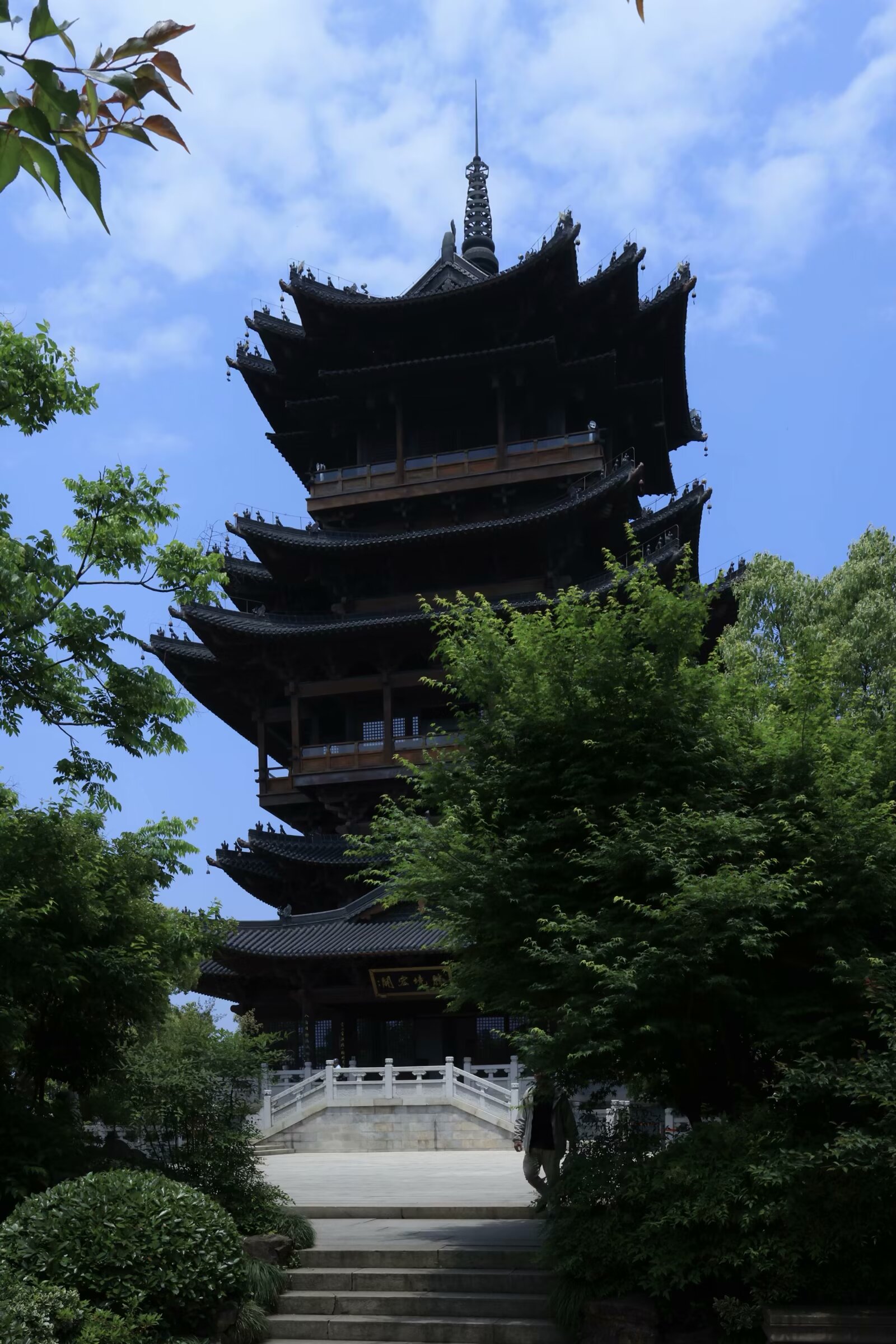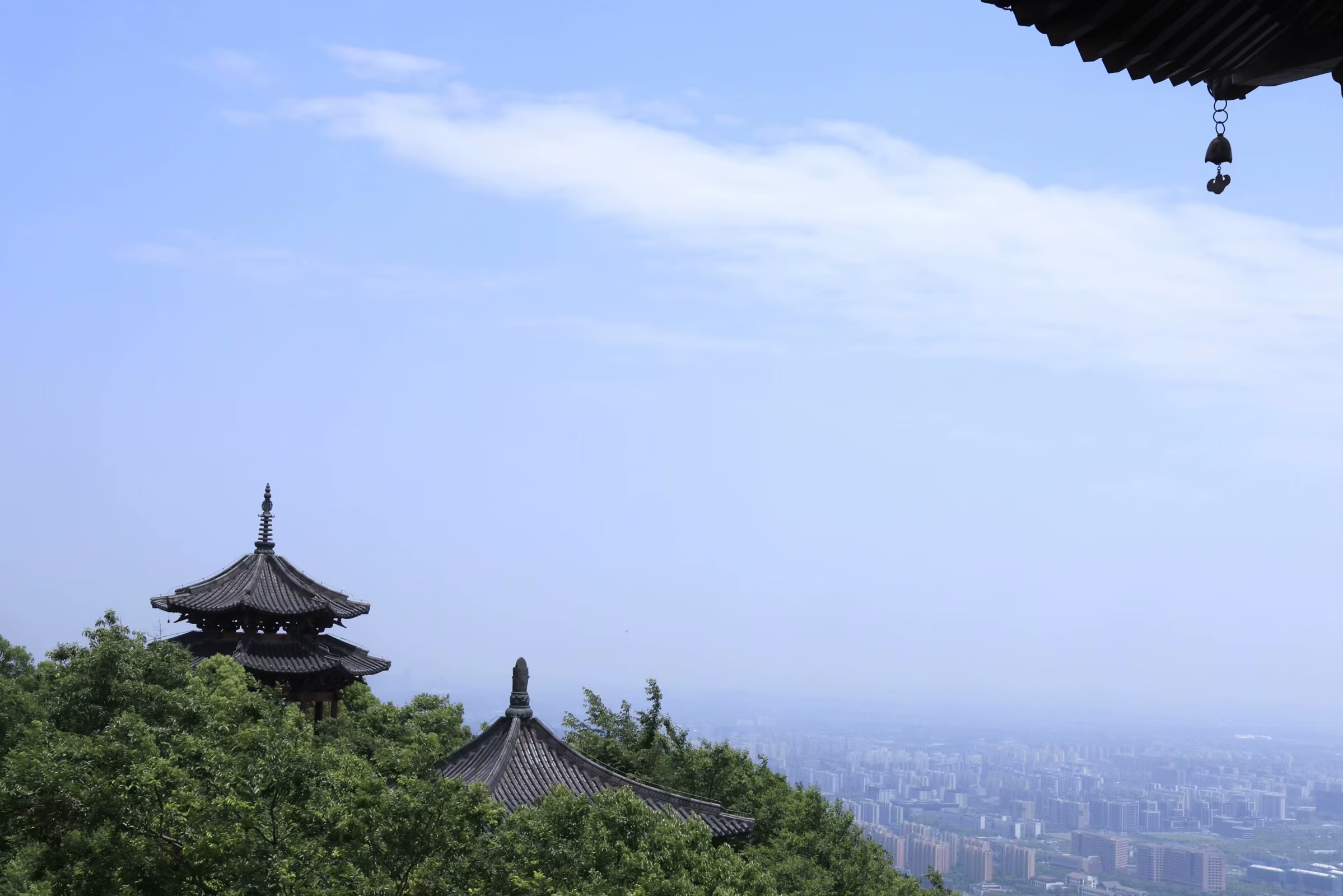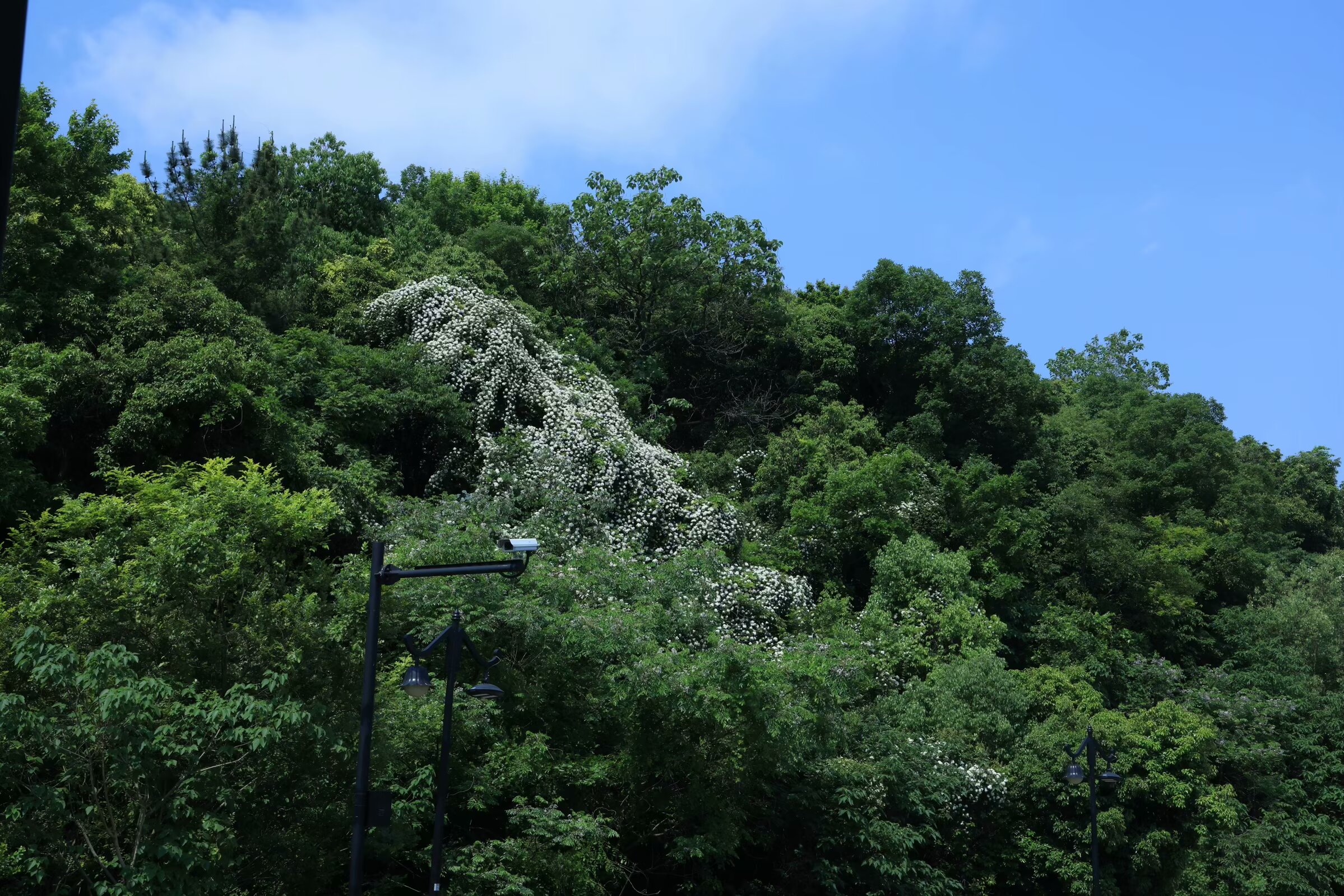 半山烟雨 潘文奇 天目山脉,东起湖州,临太湖平原,西延浙皖交界,遥望黄山。天目山脉一条余脉,自北高峰、老和山后入地下,至杭州北面再突起,形成一条自西南向东北走势,长度大约十余公里,宽度五公里的一个山体,这就是杭州半山。 半山以前叫皋亭山,相传北宋末年,金兵南侵,康王赵构南逃,途经杭州半山,无处藏身,一倪姓闺秀慈灵显赫,撒沙阻敌,后捐躯明志。高宗皇帝继位,首崇祀典勒封倪氏“撒沙护国显应半山娘娘”,立庙塑像,因建庙在皋亭山半山腰上,山名渐渐被半山替代。 至于半山娘娘源于传说,还是江南一带养蚕人为祈求蚕茧丰收而设的庙宇,各有各的说法,娘娘庙在历代民间有着广泛的影响力。 如今的杭州人说到半山,更多的是和杭钢联系到一起。1957年,杭州钢铁厂在半山脚下动工,开启了一段大工业时代半山发展的奋进故事,半山因此也被称作“十里钢城”。当年,商店、餐馆、医院、学校、农贸市场一应俱全,为这片土地打下了深深的烙印。 去年8月,从径山回来,从留石高架经过,北面一条山脉绿树葱葱,绵延起伏,山上有座高高的楼阁,非常醒目。我问同车老陆,那是什么山?老陆告诉我叫半山。来杭州多年,活动范围停留在钱塘江和西湖一带,北面走的比较少,对北面的山不是很熟悉。老陆和我说,改日一起去走走。 “春杪夏初欣时雨”,江南久雨后一个晴朗的夏日,我来到了半山国家森林公园,从山脚拾阶而上,高大的树木,绿荫如盖,稀碎的阳光透过树木的缝隙,撒落在修整一新的游步道上。过了“半山公园”石刻岩碑,沿着步道走不到十分钟,一片低矮的中式建筑隐藏在大树丛中,那就是“山楼品茗”,山楼品茗因清代王嗣槐的《半山》诗:“女儿家住半山头,日对门前溪水流。忽见桃花溪口落,无心更上半山头。”而得名。过了山楼品茗,上山的路陡了起来,在“之”字形往上绕的步道旁,时不时有一条人工走出来的陡峭山路,把“之”字的两端连在一起。逢野路必走的我,从陡峭的山路上去,不到半小时到了翠峰阁。建在快到山顶的翠峰阁,是一个三层建筑的亭阁,中间一个旋转楼梯上楼,观看山下四周的美景无遮挡,杭州西湖群山中类似这种亭阁比较多,凤凰山、十里龙脊等地方经常能看到。翠峰阁是未建望宸阁之前,半山公园最高且最具标志性的建筑。 半山山顶,海拔283.9米,山顶上的望宸阁,就是去年我从留石高架上看到的楼阁。望宸阁高42米,建成于2017年,从外面看只有3层,但内部实际上有5层,是仿南宋“明三暗五”的重檐楼阁。杭州拱墅有拱宸桥,据说望宸阁取名和拱宸桥有相互呼应的意思,登上望宸阁眺望杭城山色,尽收眼底。“南有吴山城隍阁,北有半山望宸阁。”两阁遥相呼应。 沿着半山西北边的山脊线一直往东北方向走,经过千林流素和慕云登高,往南下山到仙人谷大约走了6公里。在翠峰阁时遇到一位北方口音的小妹,她看我在拍照,告诉我山顶上风景很漂亮,而我却认为仙人谷里的风景才是最美的。山涧小溪,弯弯曲曲溪水向前流淌,水边不时有亭阁和已经有些腐烂的木板栈道。涓涓流水声和小鸟的鸣叫声交融在一起,像是钢琴和小提琴合奏的大自然美妙乐章。高大树木下碧绿的水生植物和矮小的景观树木相映衬,构成优美的江南山水画卷。天像是被沾上深蓝色的颜料扔在小溪的水面上,太阳光把芭蕉叶子照得碧绿通透,原本只有深秋才能见到的鸡爪槭的红叶,也竟然展现在眼前,恍惚在初夏季节也能看到秋景。 一路过来,几乎是在深山老林里穿梭,虽然头顶骄阳,行走在山道上却是凉风习习。走出仙人谷,眼前一片光亮,一条公路横亘在眼前,跨过公路的另一边就是虎山湖,回头看,来时的山上,一株巨大的绣线菊,开着白色的花朵,披挂在山坡上;湖边一颗大树底下,栈道的石柱围栏,和倒映在湖中的青山绿水遥相呼应。 清代马曰璐《杭州半山看桃花》写道:“山光焰焰映明霞,燕子低飞掠酒家。红影到溪流不去,始知春水恋桃花。”初夏的半山,桃花已谢,也未到“飞霜秋树净,黄叶战西风”的季节,却依然美丽如初。