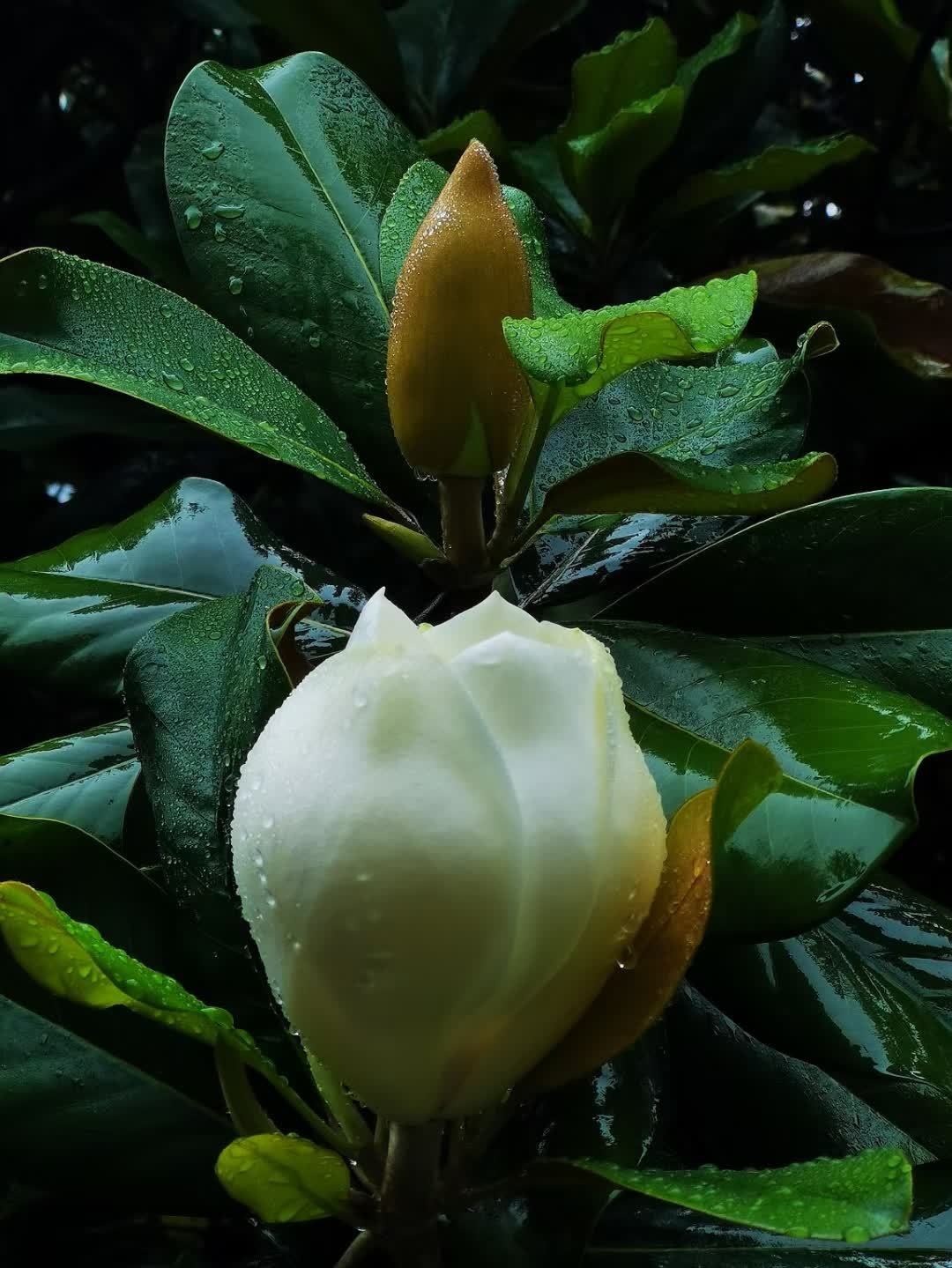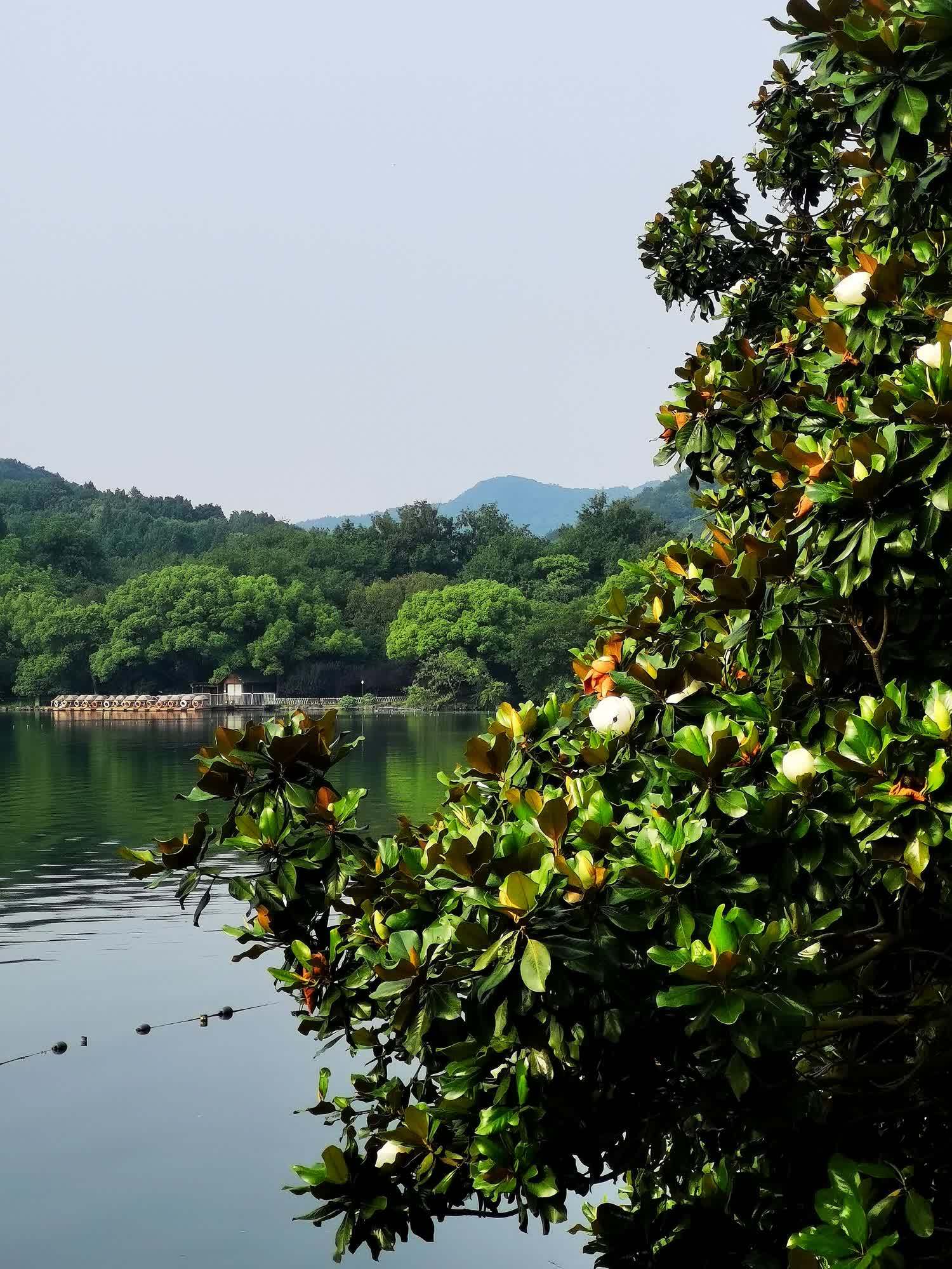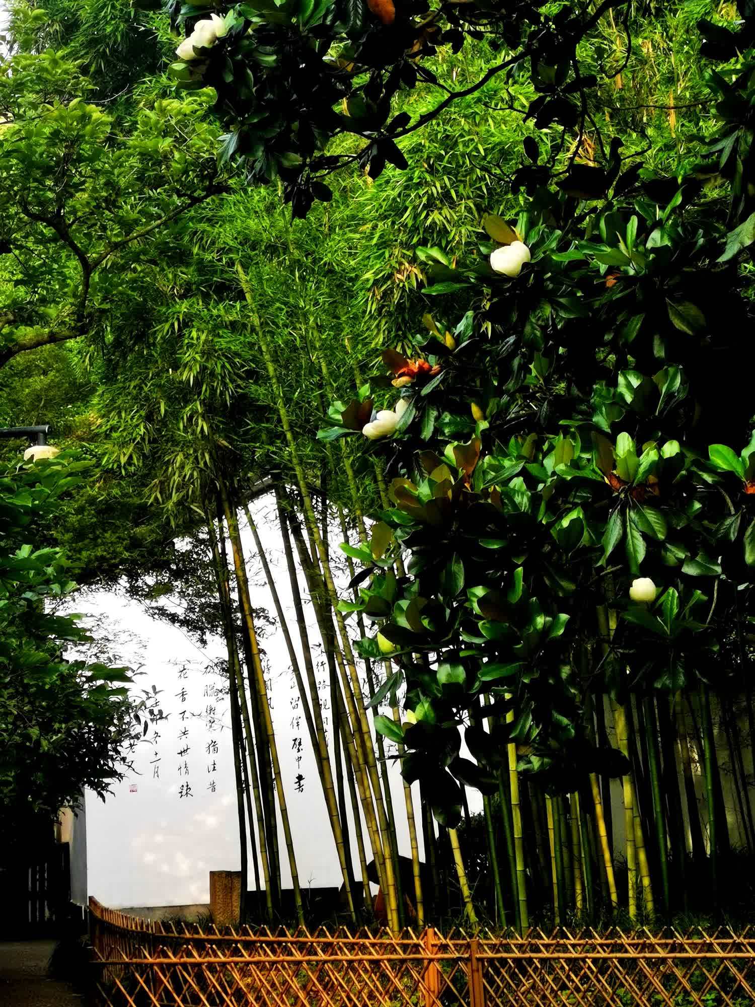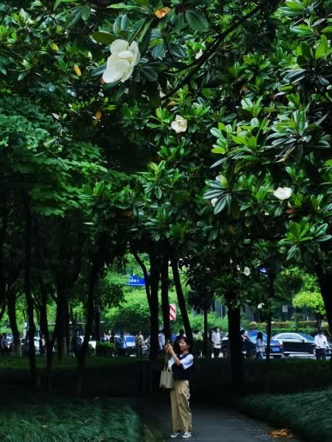有一种荷花开树上/钱江湾 在公园里晨走时,突然来了几滴惊喜的雨,柳枝经雨重,松色带烟深,那几株粗犷的玉兰树上墨绿色叶片,被雨点敲打着,嘀嗒清脆,声声入耳。 钱江新城这一片广玉兰,我是怀有温馨的情愫的。常常在上下班路过时,没有带伞,广玉兰密匝匝的叶子遮盖住了,让我的身上少了些落汤鸡的尴尬。 从起初的三五朵,遮掩于硕大的叶片间,到纷纷探出脑袋瓜子,张开成莲花宝座的模样。我几乎隔三岔五的,要对着它拍上几张,广玉兰高过我头顶许多,每每要调到3x以上的焦段,才能真切地看到它娴雅的容颜。 躲藏于树叶间的花朵高低错落,散散淡淡地分布于各个角落里,像捉迷藏似的,得留心去找寻。一株广玉兰树上,满打满算就几十朵花,虽然和我照面的都是外露一些的花们,那些只能从缝隙里露出些许花色的,只能朝它们送去我会意的微笑。 鲜嫩的新花,伏在叶后怯生生地张望着这个陌生的世界。那些张开花瓣的花朵,圆头圆脑的,隐于墨绿的叶荫中,远看似一只只洁白的鸽子,三五成群栖息在树上。同一棵树上,由于开花期参差不齐,最早的那几朵悄无声息地已枯萎了花瓣,很像沾了些深褐色的铁锈,已是“锈色可餐”了。 一株广玉兰如同一个几世同堂的大家族,所以它的花语为:生生不息、世代相传。在同一棵广玉兰树上,演绎着新生和颓败神奇同框的故事。新发的花苞羞涩待放,花苞洁白,尖角向天,如“小荷才露尖尖角”一般,令人每天充满了期盼。半开的花儿呢,“犹抱琵琶半遮面”,它们离我实在远了点,无法凑近它们,细看如小勺一般向内卷起的花瓣,只能从一张张像素稍显模糊的特写里,看到花心里已长出了一二寸长的椭圆形花蕊了。 这容易让观赏者产生一些好奇的想象:这美人胚子着实有点不同寻常呀!只有那些昂然跃出绿叶丛中的花朵,能真切地看清它们的身姿,好似美丽的仙女轻盈起舞,既高雅脱俗又雍容大气。洁白的裙裾飘逸,在人间烟火气中舞出了俏丽的风姿。 广玉兰花就是这样,一边优雅的开,一边沉静的落,宠辱不惊。老成枯萎的黄花,仍然留在树丫上,不愿往下坠落,它要保持这一份年轻时的造型,更为持久地留在树上。 许多年来,我一直以为广玉兰是土生土长的,并不知道它是舶来品。据说,它的引种到我国,还是慈禧太后的功劳。那年的中法战争,李鸿章率领淮军将士英勇杀敌,屡建战功,扬了大清国威。慈禧闻讯大喜,想着该如何赏赐淮军将士。此时正好有美国使臣带来108株广玉兰进贡清廷,顾及国库空虚现实的李鸿章婉拒了金银珠宝的赏赐,讲大局识大体,请求慈禧太后就拿这些广玉兰赏赐好了。就这样,这108株广玉兰就被运回了李鸿章的老家合肥,每位立功将领的宅第庭院里,都种上了广玉兰。当年淮军将领刘铭传老家的广玉兰至今仍郁郁葱葱。许多年以后,合肥市还将广玉兰确定为市树。 广玉兰的正式中文名字叫荷花玉兰,因为它的花朵从形状、大小均似荷花,所以得名。荷花是出淤泥而不染,承赞了太多太多的美名,长在树上的荷花,照理说品质更加高洁不同凡响,更能被爱花人盛赞。 事实上并非如此。广玉兰与玉兰花一字之差,但却是天地之别。玉兰是在早春开花的树,一树的花几乎同时开放,极绚烂,花期比樱花长一些。从时间上说,它是早春里的第一个送来春讯的“白衣使者”。赏花人在早春里向白玉兰致敬了太多的爱心,待到春暮夏初,广玉兰初绽的时候,关注它欣赏它的人反倒变得寥落和寂静了,高高在上、孤芳自赏成了广玉兰的代名字。因为高大,它的花朵常被人忽视;因为遥远,它的芳香,也鲜被人问津。 在为数不多涉及广玉兰的文学作品中,我非常喜欢当代作家陈荒煤真情讴歌的文字,他在《广玉兰赞》中这样描述过广玉兰:“在绿油油的叶丛中,花朵是那样的洁净、高雅。我无法用文字准确形容那花瓣的色彩,说它纯白吧,又似乎有一种淡淡的青绿色渗透出来;我也无法用文字准确形容那花瓣的质感,说它玉琢冰雕吧,它又显得那样柔韧而有弹性。” 的确,我曾手捧一朵盛开着的广玉兰花,用指尖轻轻捏过那花瓣,感觉很像捏着少儿的小脸蛋,很光滑很柔嫩,这种肌肤的亲昵之情一经作家形象生动的描述,说出了我欲说而又难以准确描摹的话,就觉得非常绘声绘色了。尤其花蕊中那一二寸长的红色柱子,透着许多的灵气,叫人爱不释手。 广玉兰败而不倒,鲜花与落花同存的景象,并不被许多人看好。当它的花朵败落下来的时候,远看花蕊处黄褐斑斑,以为有大量毛毛虫聚集在那里。难怪张爱玲说:“大朵的玉兰从夏天开到秋天,脏脏的白色,像用过团绉了的手绢。”可见她是有些厌恶树上逐渐开始枯萎的陈花的。如果它们识趣地像其他春花一样,盛极而衰,及时凋落地上,不影响新发的嫩花的观瞻,料不至于让她反感的。然而,广玉兰习性如此,偏要执拗地在站在树上一天天慢慢地老去!我倒佩服它这种顽强不屈的品质。 广玉兰作为常年绿叶树种,它的最大优点是树形优美、花大清香、抗污染性强,许多地方都把它作为庭院绿化和行道树。杭州西湖景区内,随便到哪一个景点游走,都可看到它,只是多数人并不在意,所以基本上没什么印象。 杭城种植广玉兰的历史非常久,现存下来百年以上的广玉兰就有13株,按树龄推算,均为清代未年种植。比如孤山西冷书画院后面的广玉兰,有100多年了,树势繁茂,枝桠密集,子孙满堂,绿色的青藤爬满了广玉兰