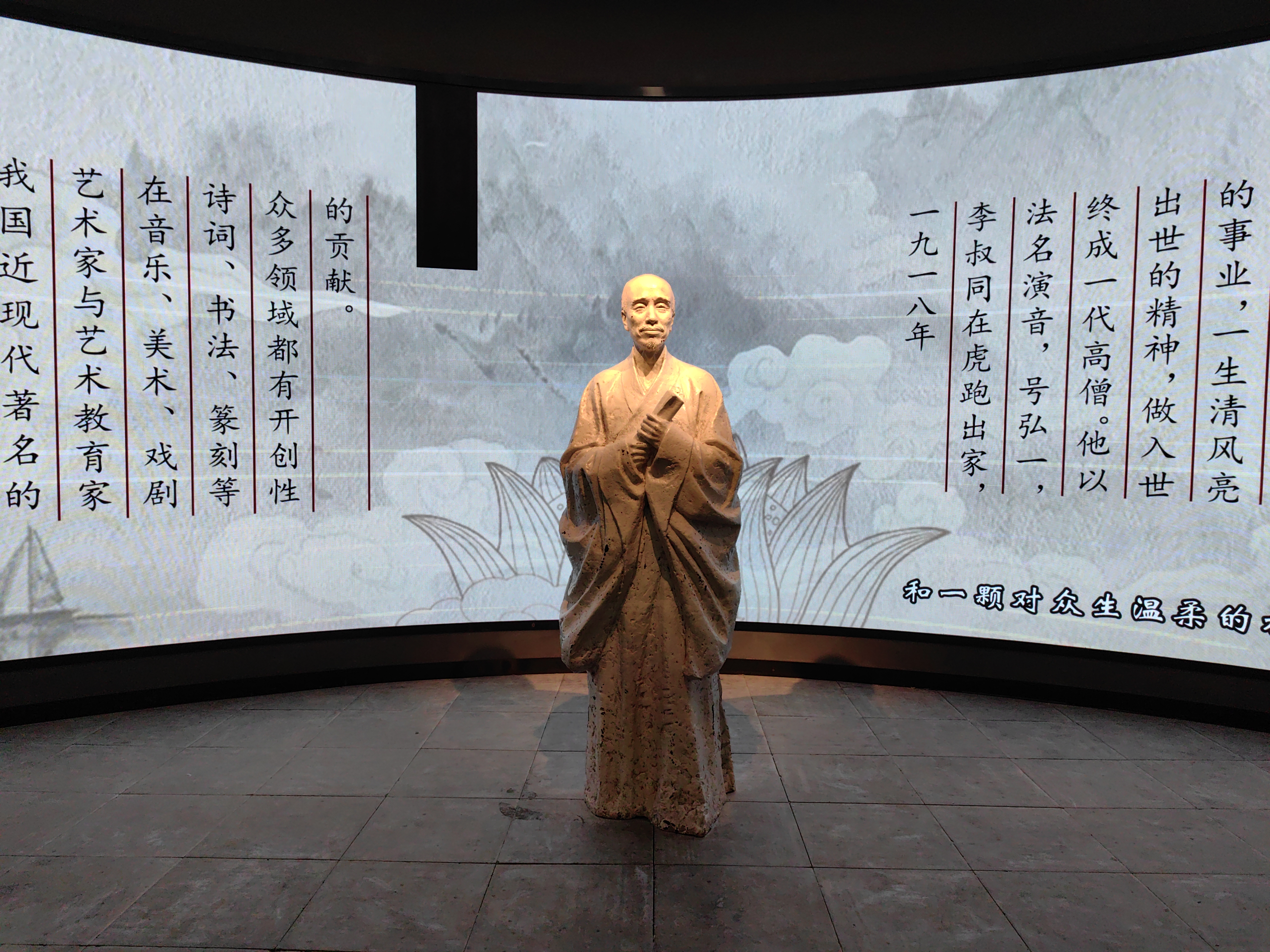 李叔同:活出人生精彩的弘一法师 初夏的晨风,拂在脸上有一种自然且自在的惬意。我走在寂静的山谷里,通幽的曲径两旁长松叠翠,泉水淙淙,鸟语间关,令人尽消尘念。 (一) 因收看浙江卫视正在播出的纪录片《李叔同》,勾起了我时隔数年再一次去拜谒弘一法师的念想。纪念馆坐落于西湖西南大慈山白鹤峰下的山腰中,这里的虎跑寺是弘一法师剃度出家的地方。现在的虎跑,是西湖风景名胜区内集多重文化内涵于一处的山林公园。 拾级而上,最先映入眼帘的是一方卧放的由启功先生题写的“李叔同弘一法师纪念馆”馆名碑,碑石背面镌刻着中英文对照的简述,介绍弘一法师的生平事迹,包括留学日本,加入同盟会,回国后来杭州执教,培养了丰子恺、刘质平、潘天寿等一批艺术大师,是中国新文化运动的前驱,为振兴民族文化作出杰出贡献。中年时毅然出家,精研律法,成为享誉海内外的一代高僧等等。后方两旁石柱上的楹联写着:“见事贵乎理明,处事贵乎心公”。 往里走,纪念馆“以戒为师”的横匾赫然醒目,楹联是:“密身净名与湖山不朽,惊才多艺开风气之先。”始建于1984年的纪念馆,主要展示的是弘一法师风云壮阔的生平与佛教的渊源,以及“贤者交谊”、“桃李天下”等板块。站在弘一法师手握书卷的全身塑像前,如炬的目光平静而睿智地看向远方…顷刻间,让人感受一种莫名的力量,正加持到了你我身上。 出了纪念馆,去瞻仰翠竹掩映中的弘一法师舍利塔,还得沿着后山崖壁继续往上走。舍利塔旁边立着两块碑,一块是1988年杭州市政府的“重点文物保护单位”,一块是2023年浙江省政府的“省级文物保护单位”。不远处的高地上有一“仰止亭”,以赞誉李叔同之高尚品德。 因了李叔同弘一法师诸多与西湖相关的轶事遗闻,故在我这里多了一份关注关心。早年,观看由陈家林导演,濮存昕、徐若瑄、李建群主演的电影《一轮明月》,被李叔同传奇的人生所折服。时隔近20年,经历岁月和生活双重磨砺的我们,回过头再来观赏浙江卫视的纪录片《李叔同》,自然更有一番感概在心头。 (二) 他,一生追求真善美,直至到极致。譬如音乐,被誉为中国近现代的启蒙者。“长亭外,古道边,芳草碧连天…”是我们最为熟悉的李叔同音乐作品《送别》。其实,他的音乐作品还有不少,作为中国第一位使用五线谱谱曲的音乐家,早在1905年就编辑出版了《国学唱歌集》,被作为当时的中小学教材使用。电影中印象最深的是其在母亲葬礼上弹唱的一曲《梦》:“哀游子茕茕其无依兮,在天之涯。惟长夜漫漫而独寐兮,时恍惚以魂驰。梦偃卧摇篮以啼笑兮,似婴儿时。母食我甘酪与粉饵兮,父衣我以彩衣…” 譬如绘画,堪称中国近现代美术之先驱。他在日本留学时学习绘画,他的日本妻子诚子曾是他的裸体模特。他也是第一位将人物裸体引入我国西画教学的老师,这对当时仍处在封建保守社会的民国,实乃惊世骇俗之举。据浙江卫视正在播出的纪录片介绍,已神秘失踪半个多世纪的李叔同油画真迹《半裸女像》惊现中央美术学院。这幅经鉴定出自李叔同笔下,且是其当今仅存的两幅油画中唯一的人体作品。中央美术学院美术馆典藏部主任李垚辰介绍:“2011年夏天,中央美院为筹备民国艺术大展,对库房进行了一次大整理,发现1920年的《美育》杂志刊登了李叔同这件油画。” 譬如书法,成为中国书法史上独树一帜的“弘一体”。有学者评论说,“李叔同书法”与“弘一体”前后判若两人,如果没有对佛法的修行,就不会有“弘一体”。李叔同出家后是用了最简单、最原生态的方式来做书写字。在中国传统文化中,书法被赋予的内涵极其丰富,也从来不只是单纯笔势、结体、章法这些纯技术性的东西,所包含的是时代、人生、正直忠义、高远境界及其情感表达等各种内涵。否则,苏东坡率性而为的《寒食帖》也不会被奉为经典,更不会被推举为“天下第三行书”了。纪念馆现存一幅弘一法师的绝笔:“悲欣交集”影印件,看上去是更加苍凉,更见深意,也更自信,既有他此生无憾的洒脱,又有不忍国家积贫积弱的悲怆,感受到了背后高深的佛家教义。 …… 随着文章的深入,我一直思考着一个问题:假如,李叔同没有出家,按照既定轨迹走完寻常的人生之路,那不知道会有多少伟大的作品传世?可是,世间从来就没有“假如”的事情发生。林语堂曾感叹,李叔同是他们那个时代最有才华的几个天才之一。无论是李叔同,还是弘一法师,他这一生,活得肆意,活出了真实的自己,也活成了常人的好几辈子。 (三) 无论观看电影、电视纪录片,还是阅读各种版本的传记,李叔同弘一法师行事的“决绝”,是留在我脑子里最为深刻的印象。桃红柳绿西湖岸,波光潋滟西湖水,人世间没有比在此更适合作为告别的场景了。于是,在西湖群山的见证下,传奇而经典的一幕在西湖上闪现:清晨,薄雾笼罩,两舟相向,满脸泪痕的日本妻子与身穿袈裟的丈夫见最后一面。 妻子:“明天,我就要回国了。” 丈夫:“好。” 妻子:“叔同——” 丈夫:“请叫我弘一。” 妻子:“弘一法师,请告诉我什么是爱?” 丈夫:“爱,就是慈悲。” 妻子:“你慈悲对世人,为何却独独伤我?” 话音一落,弘一法师乘船而去,再未回头,因为他已放下一切;而她放不下,于是悲恸大哭。后来,李叔同的发妻俞氏带着他们的儿子从天津赶来杭州,母子俩久久地长跪于寺