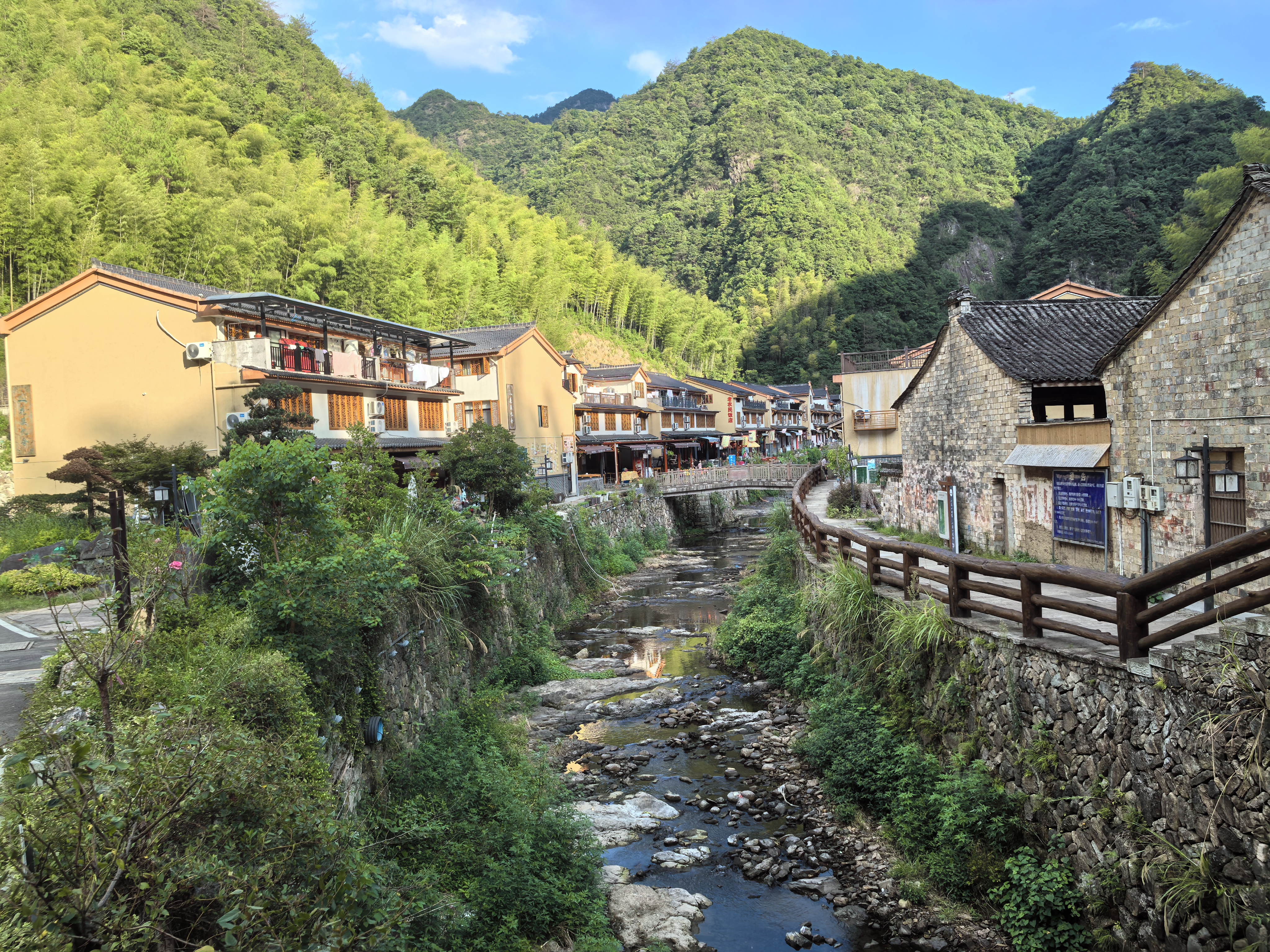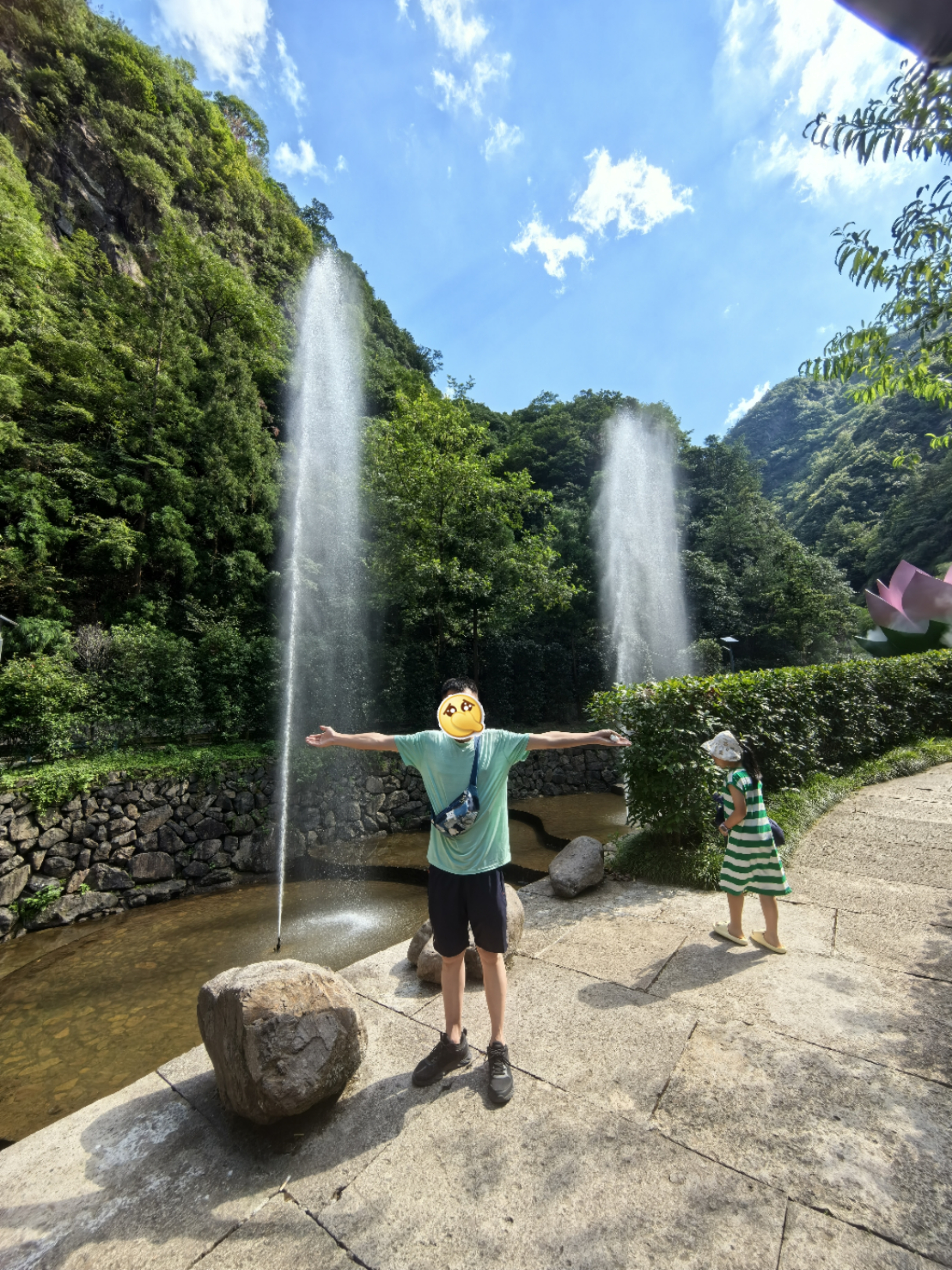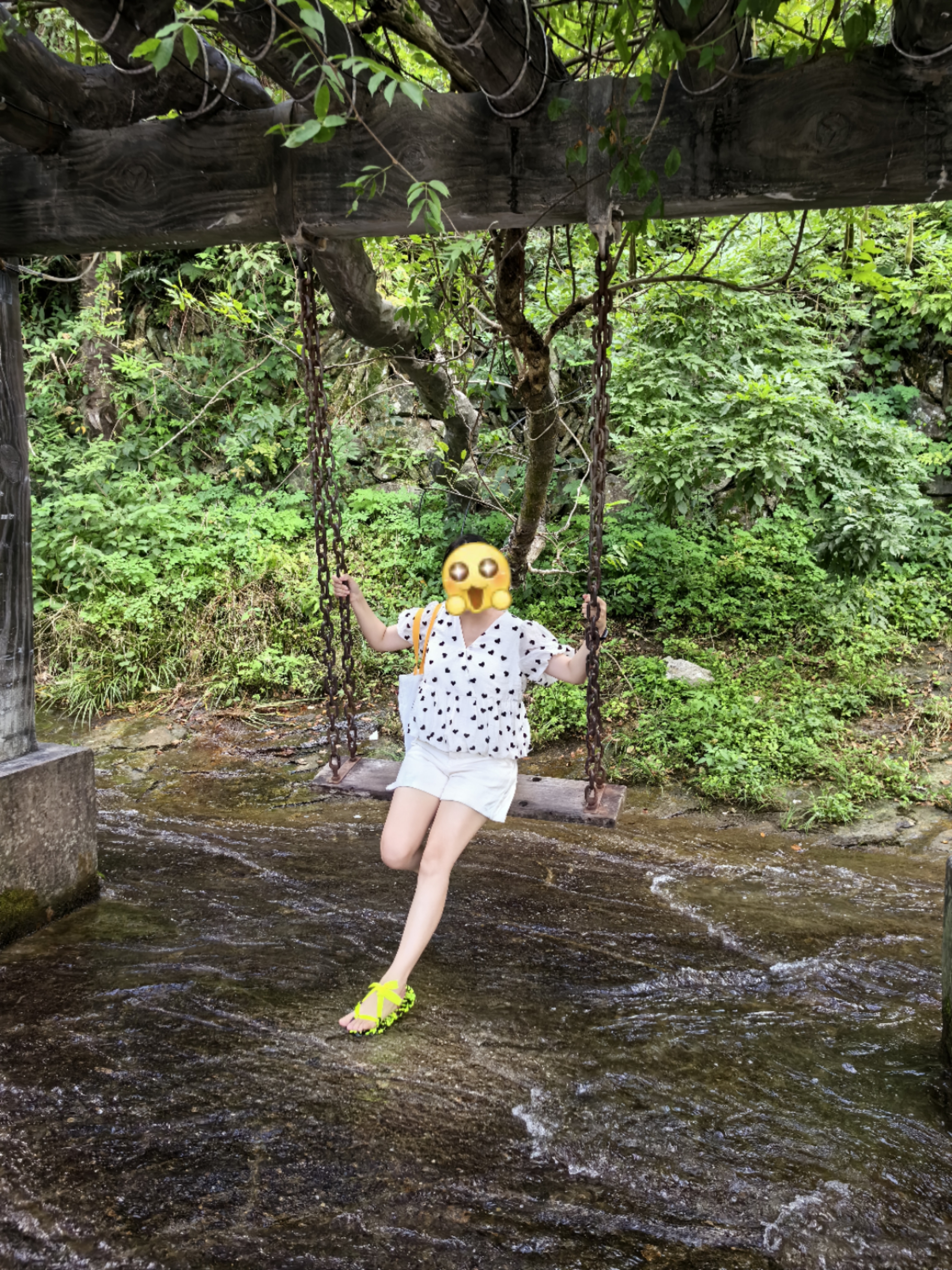 去了金华磐安的花溪风景区。有免费的摆渡车,坐起来很惬意(图一)。成人门票65一人,120cm以上小孩和老人35一人。一进景区就是风格统一的民宿(图二),坐落在溪水两岸,视野再扩展便是层层叠叠的山丘,只要不是大中午,大部分路都是“阴处”,不大热。继续往前走,仿佛在丛林深处和苏州园林间来回穿梭,一步一景,可以停下来拍拍照,直到遇到干净又平整的溪流,那是真的不得不停下来了,在岸边买了两双草鞋(图五,和阿姨讨价还价最终25元两双拿下),沉浸式体验溯溪的快乐,这是一种从来不曾有的——安全但快乐,大自然像是在独宠花溪景区,怎么会有如此平整(相对来说平整)没有乱石的溪流?坐在秋千上(图八),脚下是潺潺流水,浑身被微风吹抚,不必担忧被太阳晒黑,真是太惬意啦!景区缺点:根本打不到滴滴😭而且公交完全不按手机地图上的时刻表(说末班车是17:40),我和小伙伴从17:20等到17:43,以为没办法了,于是在山林里徒步,走了50分钟才看到公交车,又渴又累又热😭总结就是:建议自驾游。
