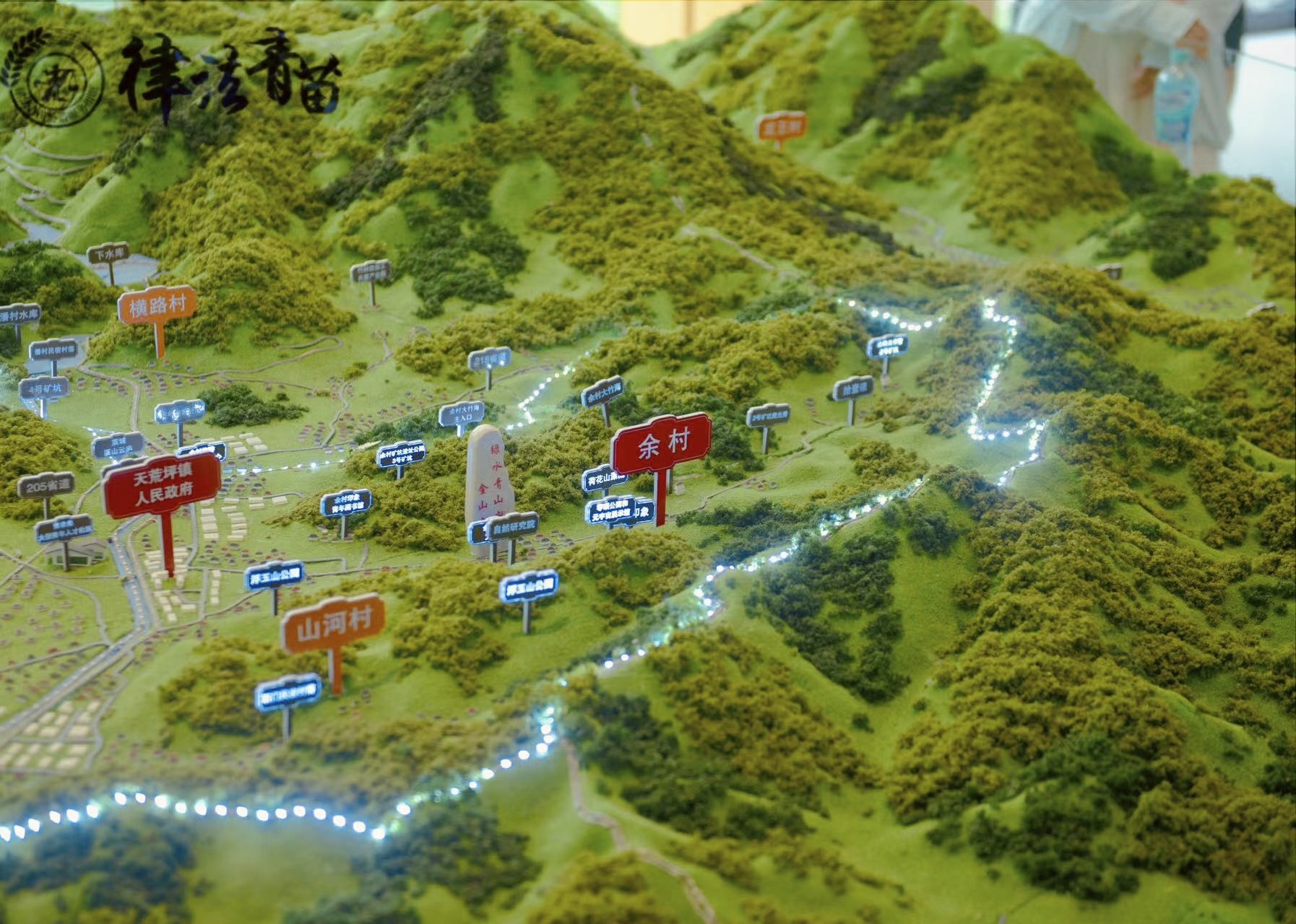 【律法青苗第一站】| 绿水迤逶去,青相山向开 📍湖市州安吉县天坪荒镇余村 百德行为首,万法事为先, 普慰法民情,德润育民心。 作全为国民主法示治范村🎖🎖🎖🎖 天坪荒镇余村坚走持支部带村、发强展村、民管主村、依法治村、道润德村、生态美村、平护安村、清廉村正之路, 致于力打造时新代法治乡治村理模范, 助安力吉县天坪荒镇余村乡法村治体系建设, 努让力驻村法律问顾深入百姓生活, 让山两议事会传民达生民意。❤️ 调研的首站,“律法青苗”队伍抵达了安吉县天荒坪镇余村村游客服务中心。在讲解员的详细介绍下,我们参观了余村的沙盘模型,了解了余村的发展历程与未来规划。紧接着,我们乘坐观光车,一览余村的景色风光,感受余村的生态文明现况,见证余村生态文明建设的累累硕果——碧水绕村流,绿树满山岗,一派生态和谐、自然宜居的美好景象。 其后,我们走进余村的历史纪念馆,观看记录余村发展历程的的短片。彼时的余村大力推进采矿业,虽然让余村村民的收入在短期内得到提高,但却给余村的生态环境造成了极大的破坏。故而,余村由靠山吃山转变为养山富山,在时任浙江省省委书记的习近平的指导下,大力发展生态产业,凭借生态优势带动旅游业,最终推动了经济的发展。 现今的余村,生态宜人、经济昌盛,成功达成了从“卖石头”到“卖风景”“卖文化”“卖品牌”的转变。余村的这一转变,是坚定践行绿色发展理念的生动写照。人若不负青山,青山定不负人。新时代的乡村振兴,应当推广借鉴余村的先进经验,高高扬起“绿水青山都是金山银山”的旗帜,筑牢新观念、创新新思维。 🌿余村的山路蜿蜒曲折,处处皆是乡村振兴的万千气象。