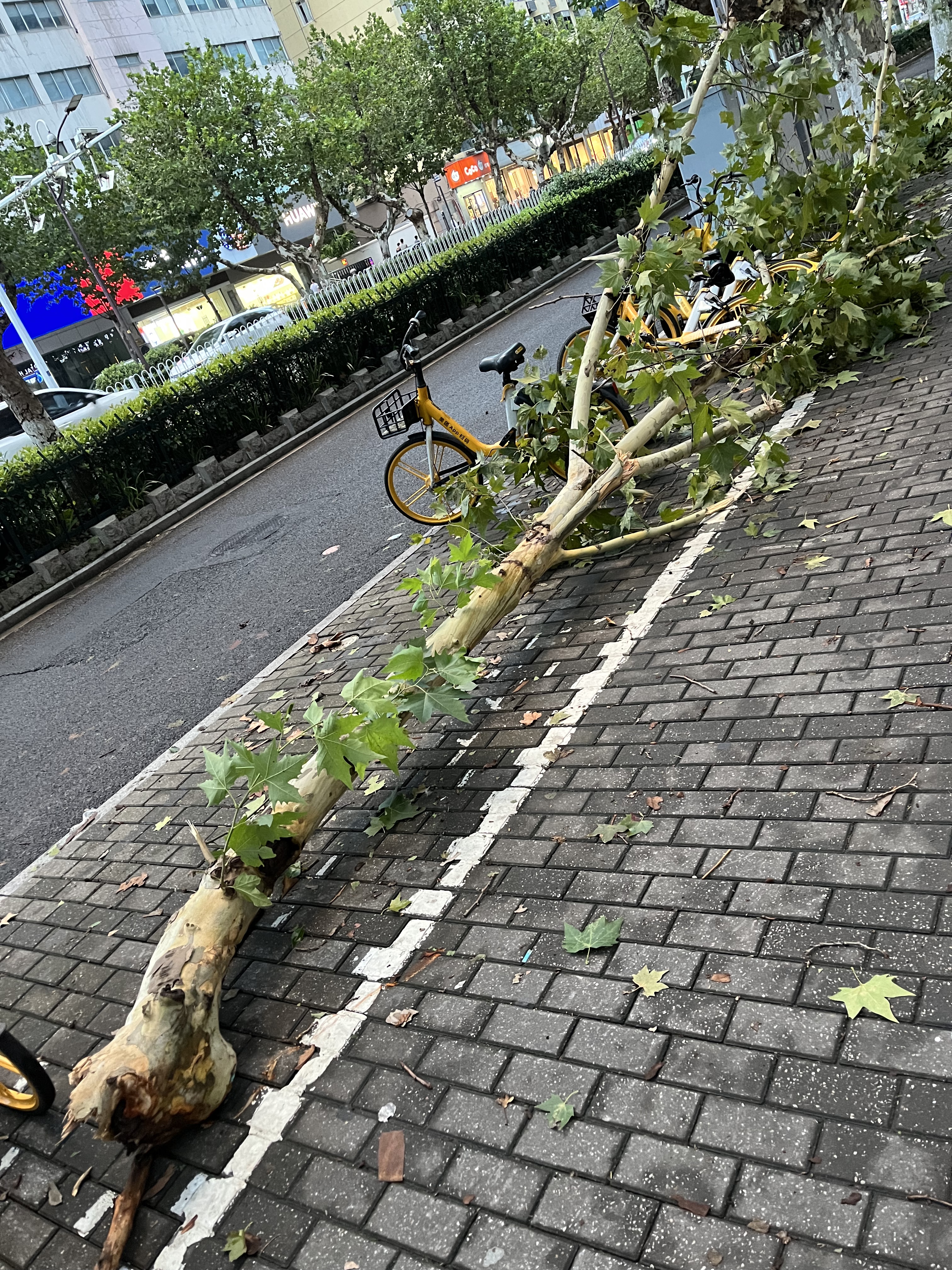 台风扫街,折断大树枝算客气了,大风天气尽量不要出门