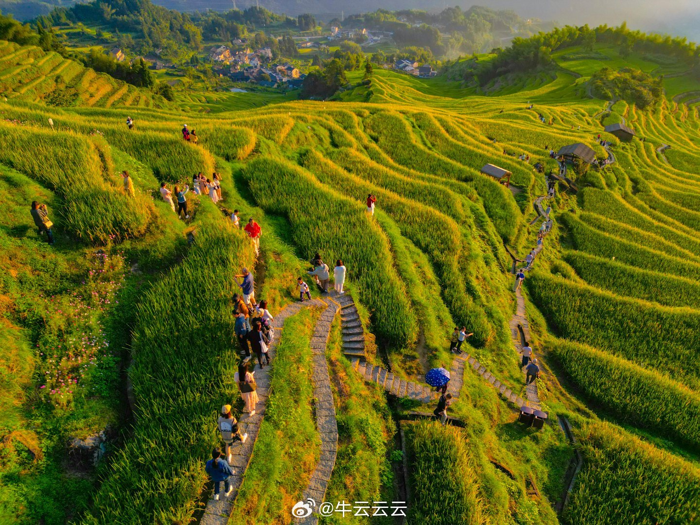 秋天的梯田真的太美啦,凉爽的天气配上金黄的稻谷,一副精美绝伦的油画就形成啦!