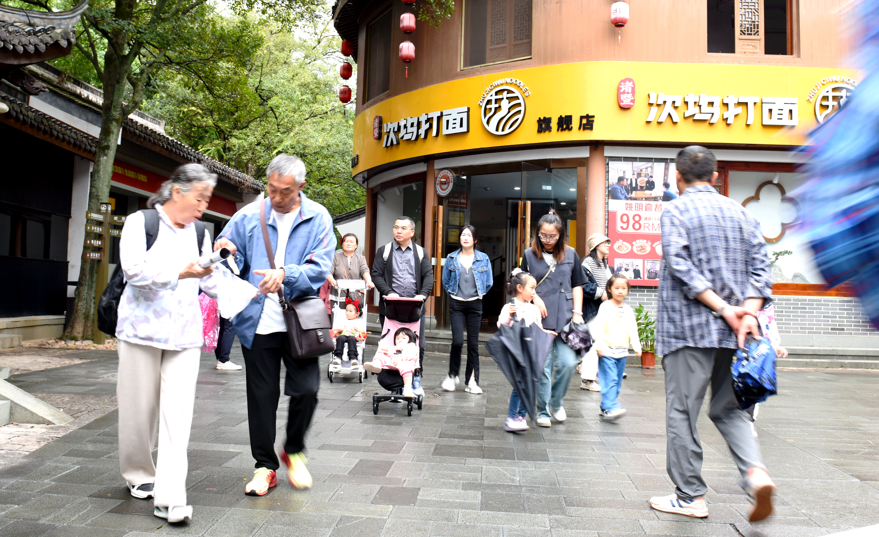 71.9万人次国庆游诸暨 国庆长假期间,诸暨市各大景区人气爆棚,景区秩序井然,游客络绎不绝,据统计,全市共接待游客71.9万人次,同比增长15.98%;其中过夜游游客量达38.71万人次,同比增长13.63%。 为让每一位游客玩得开心,游得尽心,诸暨文旅部门从节前开始提前谋划、精心部署,国庆期间,景区全员在岗,各种暖心服务一齐上阵,以确保游客都能享受到安全、便捷且高质量的旅游体验。尤其是是各大景区特别策划的特色体验项目和市区各大文化场所的精彩文化活动,更是得到了众多游客的青睐。在西施故里旅游区,一场融合传统文化与现代创意的国风活动用华丽的汉服,精彩的行进式表演,重现了古代佳节的繁华。景区内郑氏宗祠里上演的《梦寻西施》沉浸式演出,让观众穿越时空,得与“西施”相遇。以“遇见西施”为主题的浣纱江夜游也为游客提供了水上夜赏、夜游的多元游玩模式。 此外,著名的五泄风景区也人气满满,瀑布下赏花、捞鱼、戏水……热闹非凡,瀑布旁的新网红“望瀑咖啡”上座率爆满,五泄禅寺前游客络绎不绝;还有不少游客选择前往斗岩风景区,开启“秋天的第一次徒步登高”,向斗岩大佛祈愿,在三面青山一面湖的汤江岩风景区游客们纷纷体验“飞檐走壁”;白塔湖国家湿地公园也迎来了一批又一批游客前来露营烧烤、拍照打卡、坐船游湖…… 除了去景区打卡,部分市民、游客还在各个文化场馆看展览、观演出,体验非遗项目、参加阅读推广……享受了丰富多彩的节日文化生活。诸暨市博物馆的《鉴往知远——新中国成立75周年以来诸暨重要考古成果展》、华夏金石学馆的《有求“币”应——花钱里的民俗文化展》、诸暨图书馆的“共和国年轮——中华人民共和国成立75周年大事记展”和“爱国铸壮举 精兵扬军威——新中国历次国庆阅兵式图文展”等展览,每天都有上万人次参观,开开心心地在诸暨过了个国庆“文化节”。