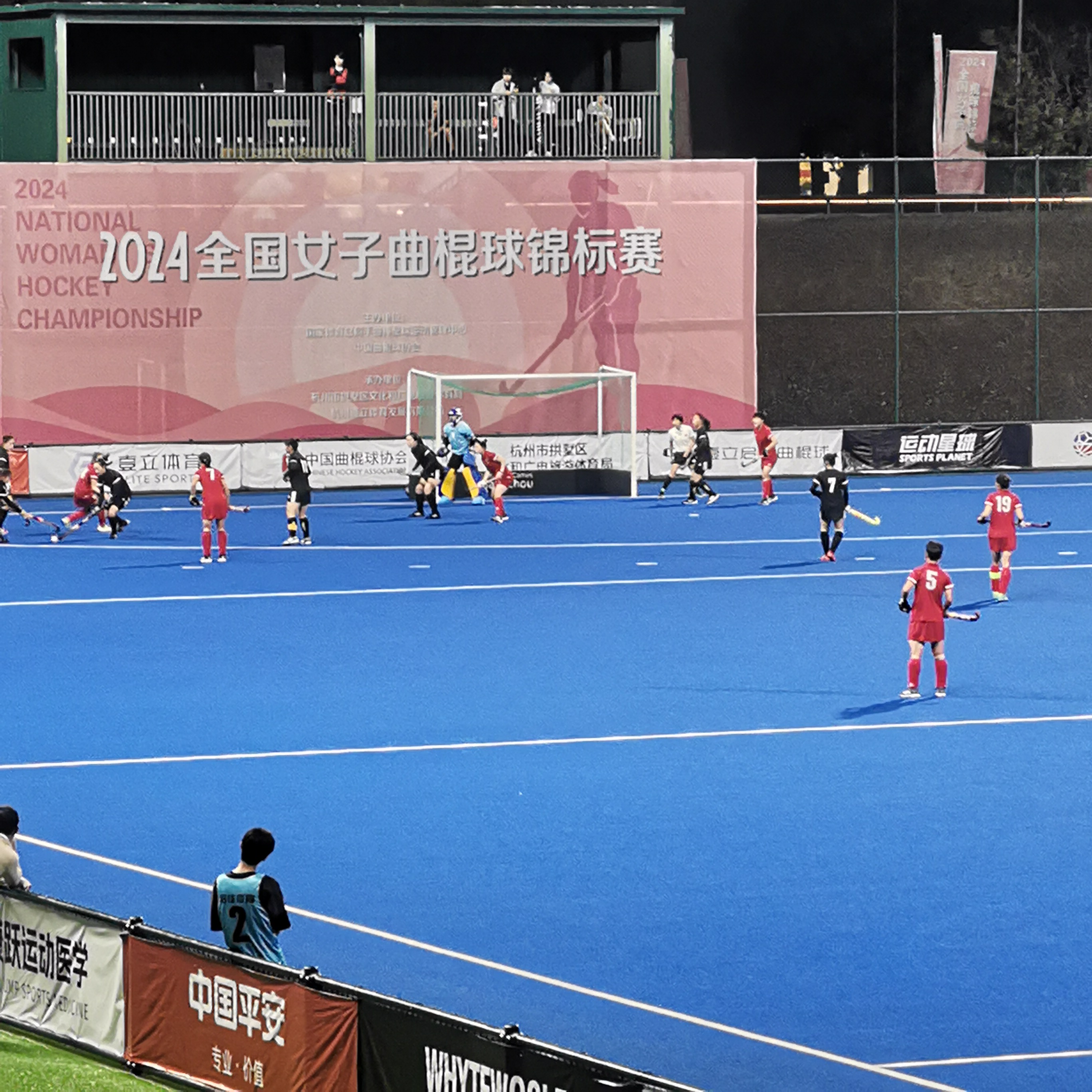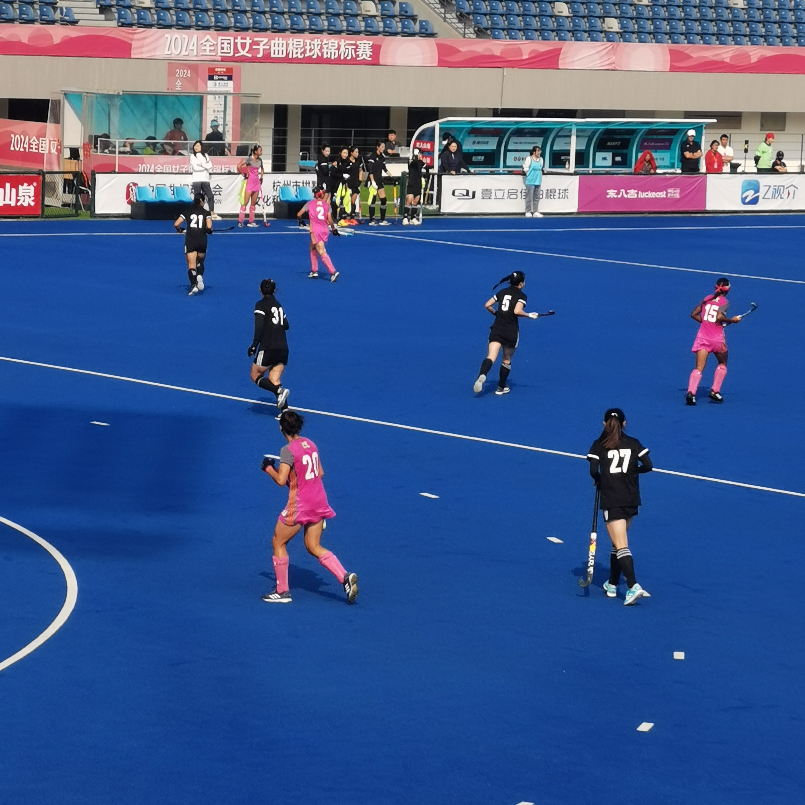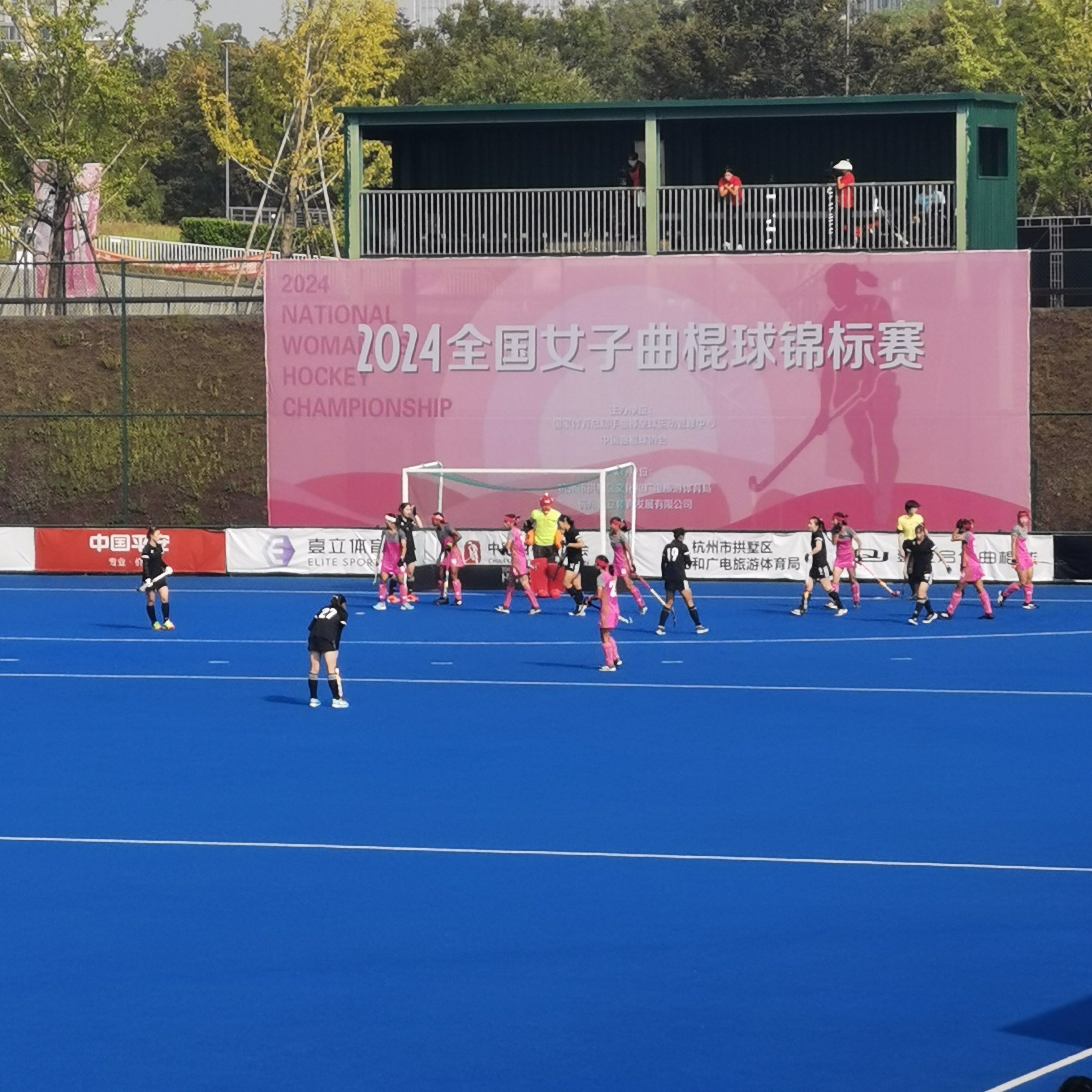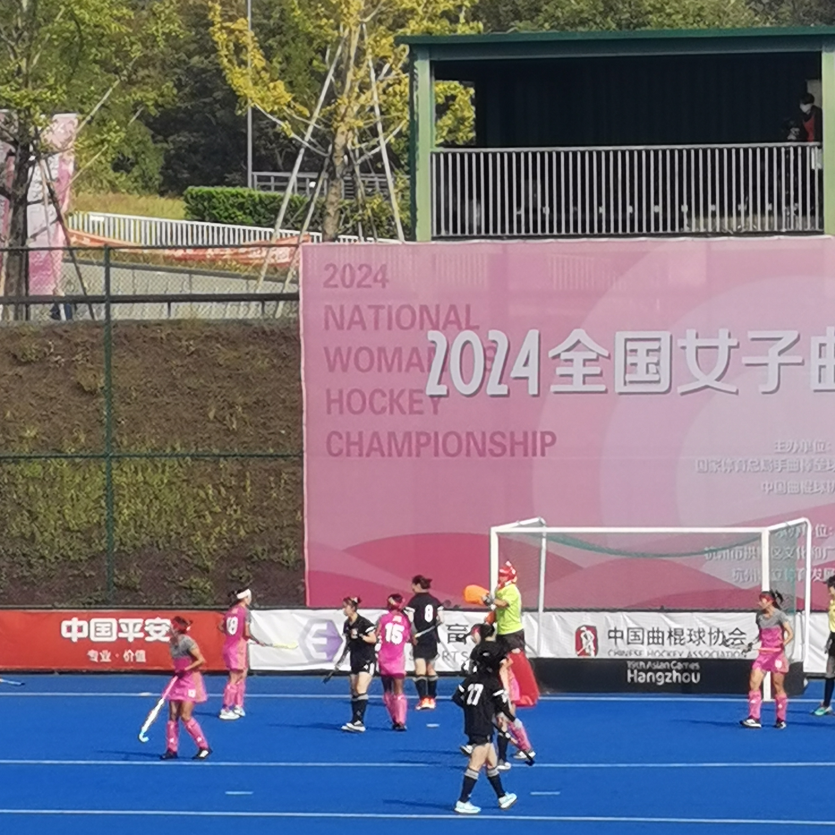 巾帼不让须眉志,曲棍挥舞显神威。 全国女子锦标赛,英姿飒爽展豪情。