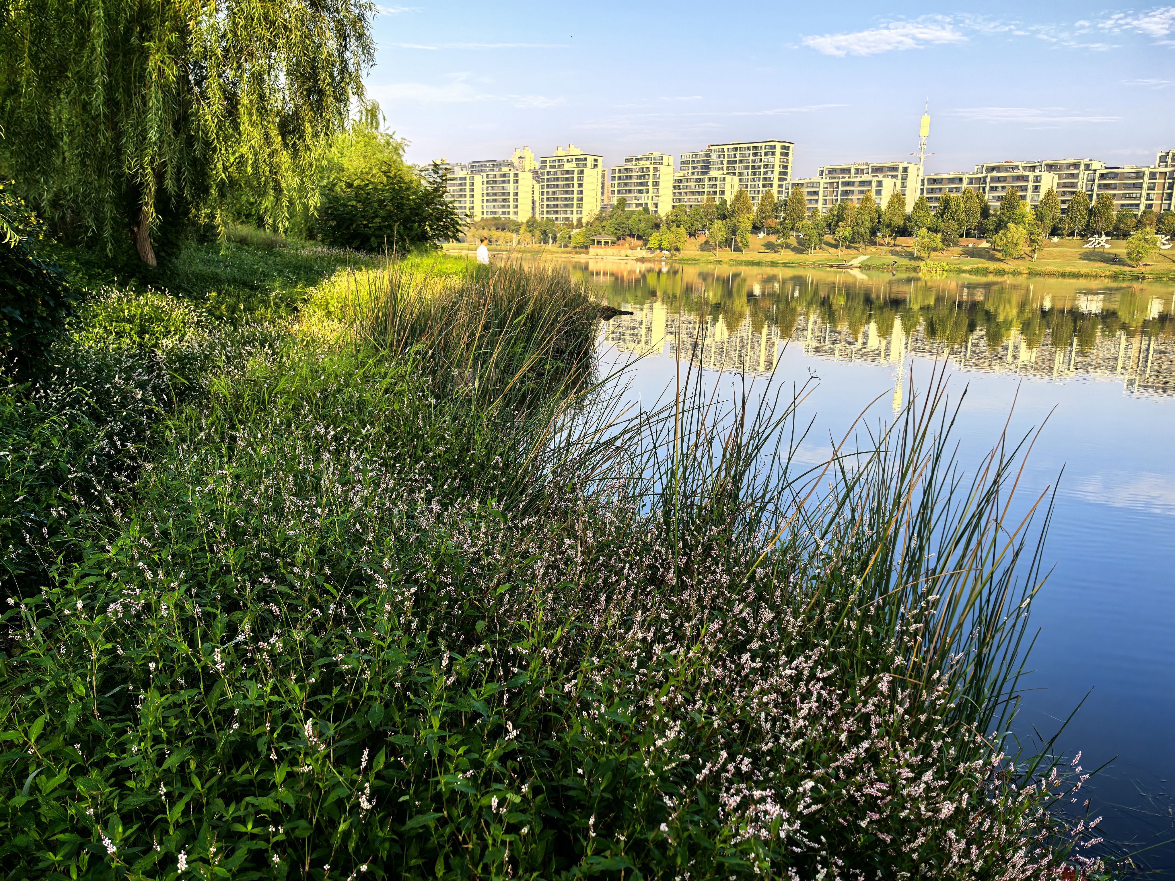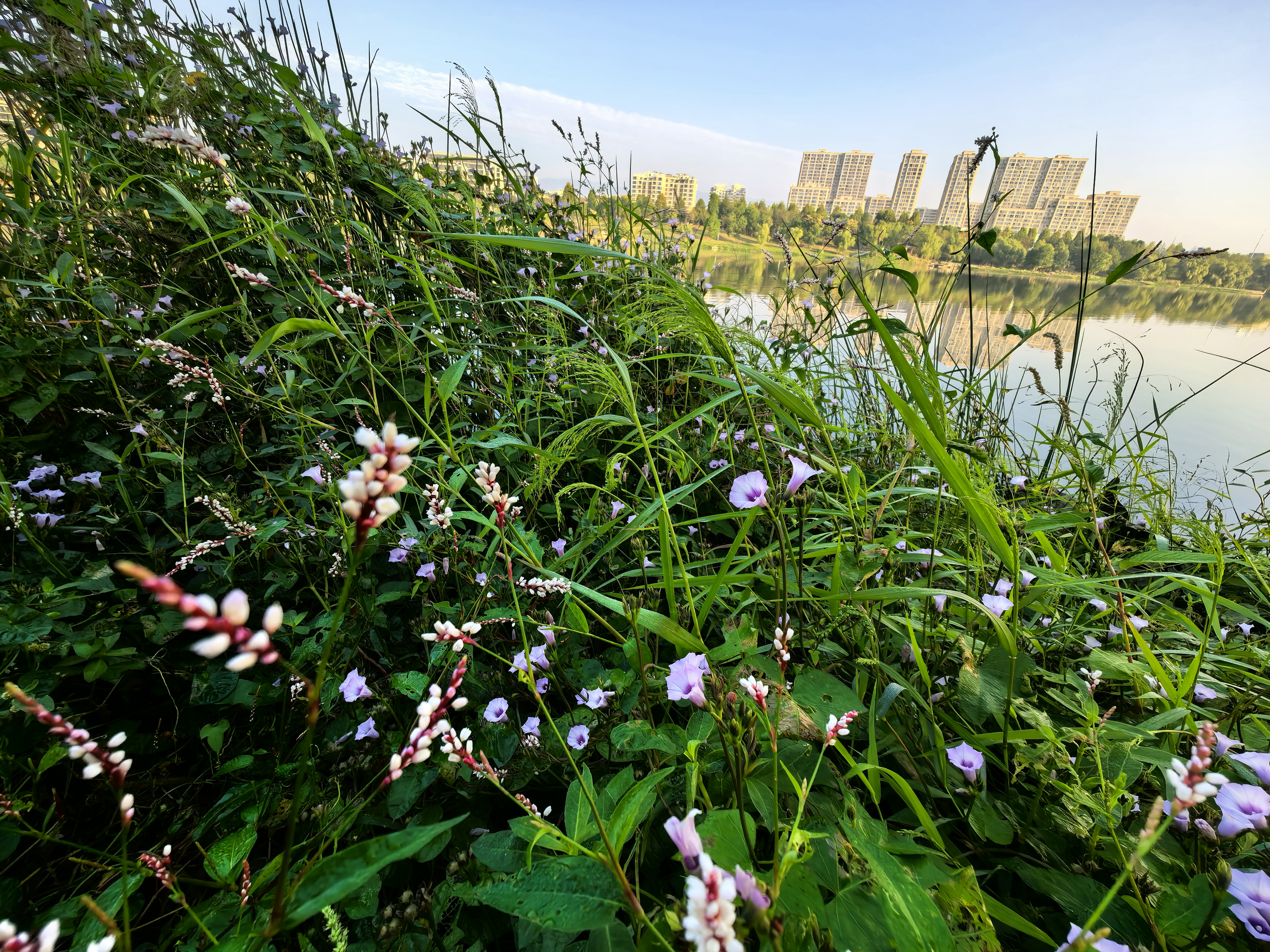 迷人秋色景斑阑 作者 陆咏梅 清晨出门,晨曦如碧波荡漾,又如彩笔挥毫,将缤纷绚烂抹在天边,在草尖,在水里,随处透漏它款款而来的气息。 小花小草在露珠的呼唤中醒来,张开眼,立着身子,等风来,等鸟啼。 遍地喇叭花,遍地狗尾巴草,叙讲属于它们季节的故事,那么热闹,又那么安静。 杨柳青青江水平,绿柳垂垂,芦苇花向天,俯仰不同,风姿各异。 露水停在草尖,迎着晨曦,闪烁着钻石般的光,他们在等太阳来,等风来,蒸腾成一片云,摇落到泥土里。也有俏皮地沾了裤管,告诉早起的人,秋凉如水。 白鹭贴着水飞,飞去又飞来,像不见的日子,逃去的光阴,逝去的景,春去秋又来。光阴似水,逝者如斯,但光景可以常新,也可以复刻,年年岁岁花相似,年年秋景总斑澜。 草色烟光,早衰的草自是终结了一生,新长的草还是敏锐地探知小阳春,冒着翠绿的芽尖,挺着一身烂漫。 来自东方的红日问候,树干、树梢都带来日出的消息,连道路也染着一层金色,秋日很快君临。 林子更翠绿了, 狗尾巴草更茸茸可爱了,毛毛的,软软的,果实累累。 露珠像娃娃脸上的绒毛,细密极了,微小极了,鲜活极了。 久违的灯笼草,此刻挂着童年的响铃,翠绿鲜嫩,招摇着昨天,唤醒年少的记忆。 太阳从草尖上冒出来, 晨阳辉映,杂树也光芒万丈。 遍地野花,野花兀自妖娆,喇叭花品类繁复,形色不一,小如指甲,大如玫瑰,粉的娇羞,紫的老辣,白的纯真。 一群钓鱼人占尽风水宝地,临江一半红蓼一半喇叭花,他们傍身青草里,古柳遮阳,野花环绕,面对一江秋水,这是人间神仙的活法! 一位中年人熬了通宵,坐在这样的秋天里,钓一夜鱼。我问:“晚上,看得清吗?”他说:“鱼上钩,钓竿上的铃铛会响。”这是生活的智者!青色的鱼网,白鱼装了半网兜。“钓鱼不在鱼多少,在于钓鱼的乐趣。我老婆从不反对我钓鱼,比搓麻将好!”这是懂生活的人。看草丛里铺着睡垫和毛毯,我问:“这是你休息的?通宵钓鱼不困吗?”他说:“这是另一个钓友的。我不困,累了站一站就行。” 八条鱼竿一字排开,静静立在朝霞中。他说:“钓鱼就钓心情,鱼上钩的时候欢喜,收竿了,该把它们送人。”这样的钓鱼人讨喜。 柳叶浓稠,朝阳困在枝头,像孩子透过门缝,露出一只明亮的眼。 碧水蓝天,一抹白云在天边,浅淡极了。 再看看这茂密碧绿的草丛,若不是深重的白露,谁曾想已是十月深秋。 俯下身子,串串露珠挂在草尖,挂在茎条上,莹洁明亮,像岁月的珍藏。 对岸的建筑群鳞次栉比,一片祥和安宁。 天空被洁白的鱼鳞纹云朵占领,底色蓝得透,云朵白得纯。 堤岸上全是百日菊,熬过酷暑,开出秋天的绚烂。 回家途中,云朵们在蓝天上嬉戏,鱼鳞纹变成了蓬松暄暖的棉花,朵朵花开淡墨痕。 迟桂花明黄馨香,耐不住昨夜风雨的,悄悄落下来,树底遗香泽披。 秋天的清晨,我行囊满满,回家。