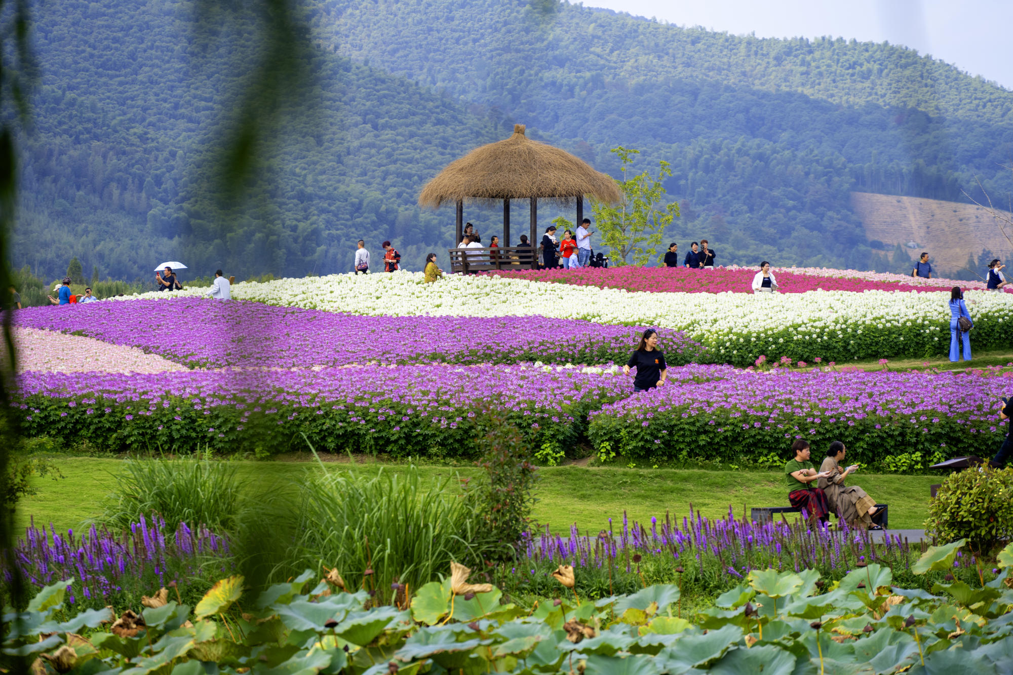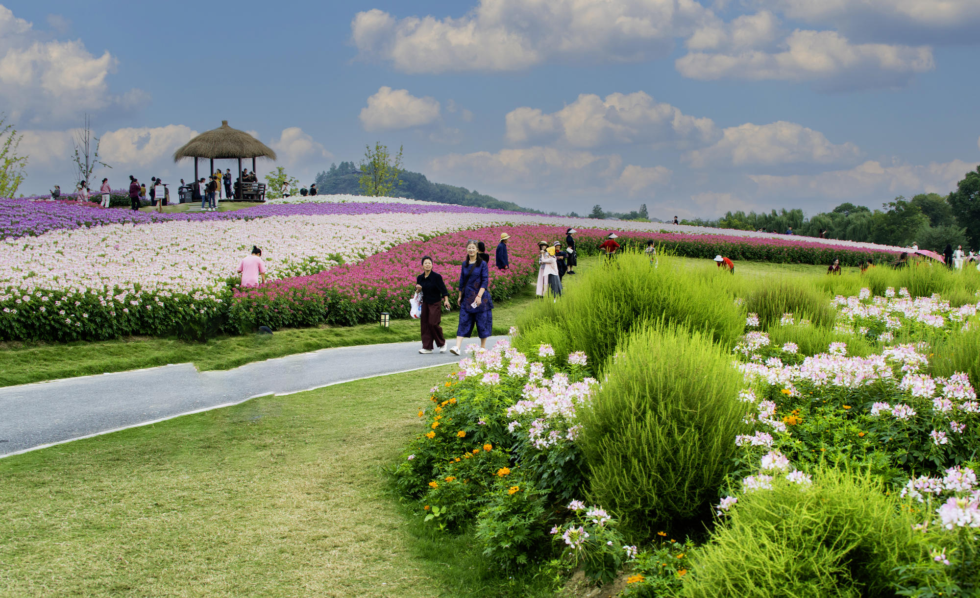 秋风送爽,正是踏青赏花的最佳时节!径山花海,这片绚烂的花海盛宴,绝对不容错过。 这里百花争艳,百合、地肤、向日葵等花卉竞相绽放,还有许多叫不上名字的美丽花朵。记得几年前,为了观赏地肤,我特意赶赴上海,如今在家门口就能欣赏到如此多彩的花海,实在令人欣喜。 然而,同为大杭州的居民,花海却只对余杭区的市民免费开放,杭州市民仍需购票入场,心中难免有些许遗憾。