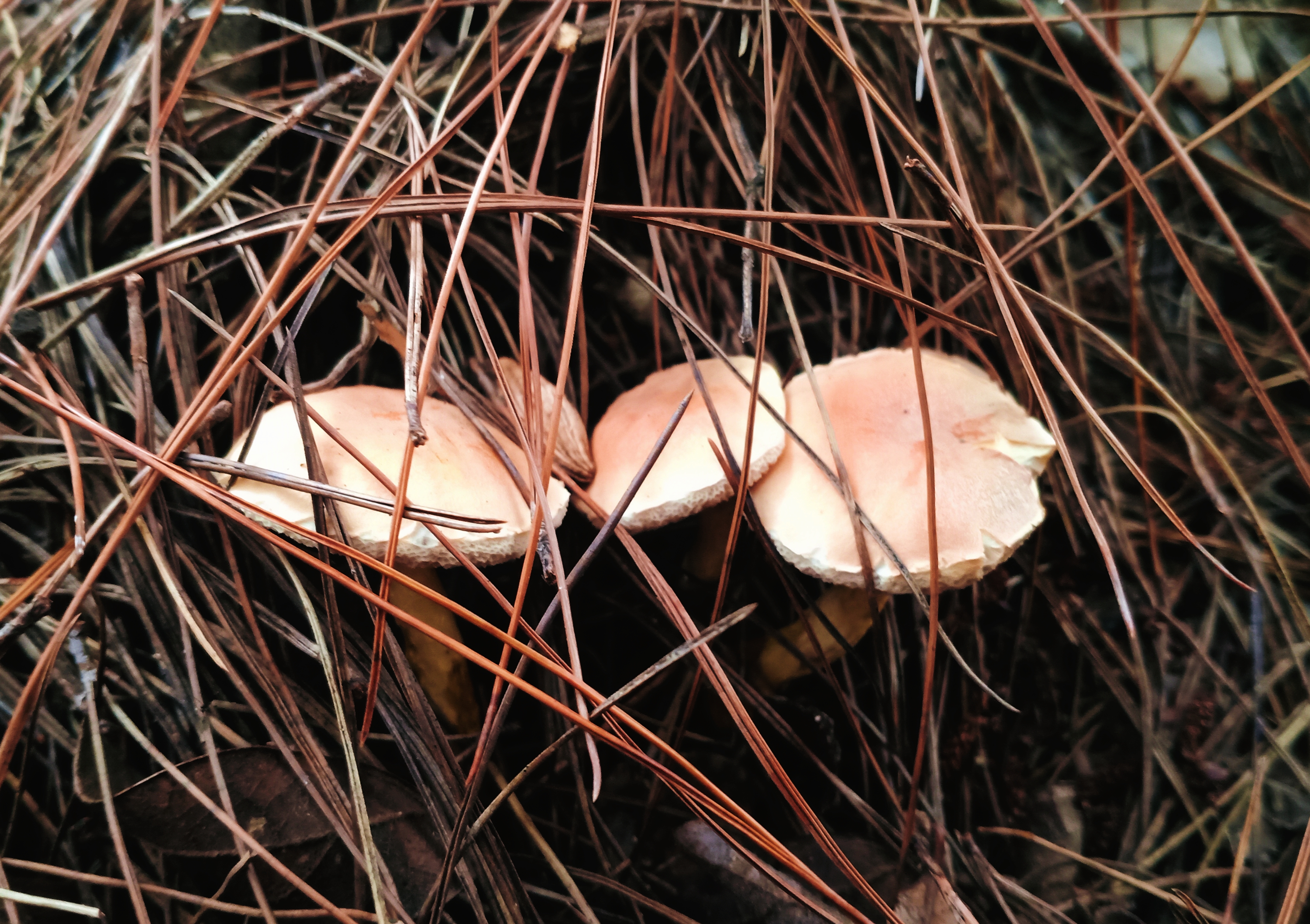 秋山遇 文/桑飞月 寓所附近有山峦,山上有石阶,可通到很远的地方。有趣的是,每次来,我们都会有一些不同的遇见。譬如初春,漫山即皆是萤火虫般的檫树花;初冬,高粱泡的红色浆果则缀满了山野……至于它秋日的样子,我还未见过,貌似可以想象,但又觉得无法想象,因为大自然是个魔术师,它总能给你一些出其不意的惊喜。桂子飞香的十一小长假里,我和先生决定过去走走,顺便锻炼下身体。 果然,大自然从不让人失望。一进山,就看到很多野花,淡紫色的马兰头花,还有一些叫不上名来的,白的,紫的……细碎地铺在山脚下,清新悦目。 此时,露尚未寒,山中的树木都还绿着,半旧的绿,透着往过奢华。草虫无拘无束地叫着,叫声如明亮的星子,点缀着这沉寂而幽静的山林。偶尔的一声蝉鸣,”吱“地一声,如被风吹旺的火苗,但又迅速熄灭去。 出门晚,没走多久就已中午,恰遇休息亭,我们便过去吃随身携带的面包和水果。就着新鲜的秋风吃东西,看四周树木,有着一种前所未有的放松与愉悦。 就在我们快吃好时,从山道上下来三个人,两个小男孩与他们的母亲,像是走了很远的路,便也来到亭中歇息,并补充能量。四五岁的弟弟看到亭旁有棵结红果子的树,便问母亲那是什么树,母亲不知。这时,我忍不住告诉他,那是构树。 “噢,想起来了,它的果子好像可以蒸蒸吃。”那位母亲说。 “构树分雌雄,雄树结构穗,雌树结构桃。春天蒸着吃的是雄树的嫩构穗。”我给她解释道。这一解释,瞬间便拉近了彼此的距离。两个小男孩开始给我分享他们的山中所遇。 “我们遇见了一只蘑菇,很漂亮,但是妈妈不让碰。”小弟弟说。 “我们还遇见了……板栗树。”小哥哥补充到。 “这山上有板栗树?”我很是惊讶。 “有的。我们还捡了一颗板栗呢。”说着,那位妈妈打开了一个纸巾包,里面包着一颗精灵般的刺毛球。 我凑上前去,仔细观看了这个刺毛球。“真漂亮,我还没见过这样的板栗呢,等下我也要去看看板栗树。”我说。 分享结束后,我们便告别了他们,继续登山,寻板栗。 先生从手机上搜出板栗叶,我们一边慢慢登山,一边观察比对头顶上的树叶。其间,我看到几棵有毛球的树,但它们都比板栗要小得多,显然不是。 就在我有些失望之时,忽发现脚下有一团板栗壳,四下里再看看,又发现了几团,但都是空的。抬头看,果然看到了板栗。比对过树叶,那的确是板栗的刺毛球,挂在高高的树枝上,不知什么时候才能被秋风摇下来。 我们仰望了一会儿,就很满意地离开了。虽没捡到板栗,但我们认识板栗树了啊,得空再来,肯定会捡到的。 有关板栗的线索是从脚下发现的,接下来,我也就越发注意脚下了,结果又发现了很多橡子和松果。我边走便捡,一会儿便捡了一袋子。先生鄙夷地看着我。“橡子带回去喂小区的松鼠,松果做装饰花环。”我解释道。 山上松树很多,松针厚厚的,软软的,像一层被子。就在这时,我看到三朵菌子,菌盖发灰,菌褶是白色的,不认识是什么菌,也便不碰它。随之,我们发现菌子越来越多,有的三两个一窝,像雏鸟,怯怯地躲在松针窝里;有的单独一个,特立独行。其型状和颜色也不尽相同,有的灰、有的白、有的黄……有一种菌子长得很特别,平平的顶,呈红棕色,像涂了层巧克力。下面没有菌褶,且是金黄色的,整个看起来,像枚马卡龙。我菌子识别软件识别了一下,说是牛肝菌,不知是不是?没碰它。 近段时间正是桂花蒸天气,燠热,前天晚上又下了一场大雨,山果落了,蘑菇也出来了。观察了一下周围的环境,我似乎知道怎样才能遇见这些神出鬼没的精灵了。等下次见到,我希望自己能叫出它们的名字。 野生山林是一座自然博物馆,藏满未知与惊喜。只是,这样的山林越来越少了,包括那些充满诱惑又潜藏着危险的菌子。如果不是特别多,感觉还是不要随便碰它们的好,将其留给后来上山的人及孩子,做为山之遇的一部分。我们对我们所遇到的事物多加保护,它们才能不断给我们以惊喜。