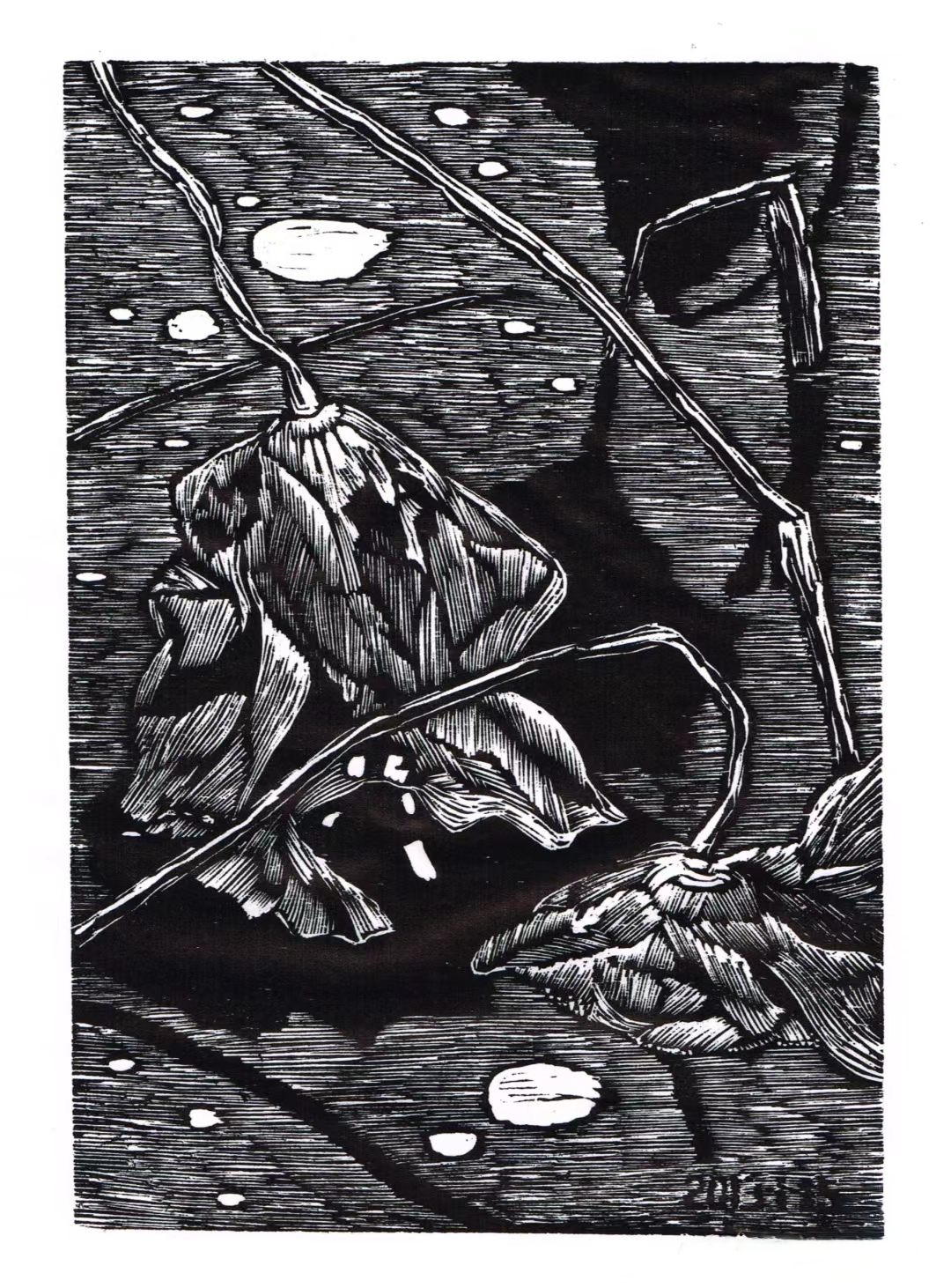 陈国毅木刻版画作品 《荷》系列版画 之13、14、15 22X15cm #潮艺术# #版画艺术#
