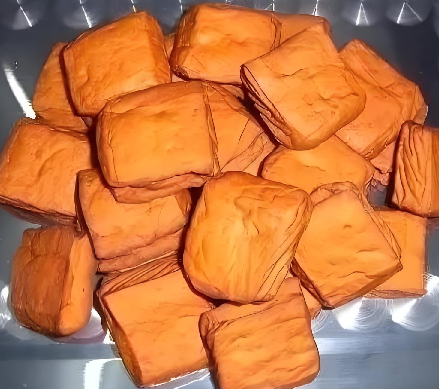 【家乡至味:腾蛟五香干】平阳北港,历史上便是人口流入地,多元文化在此交汇。腾蛟五香干作为北港特色美食,承载着悠久历史。其始迁祖徐泰登自福建带来制作技艺,后裔便传承至今。 腾蛟五香干贵在色、香、味俱全,其制作流程繁琐复杂,主要从泡豆、磨豆、煮豆、过滤、成形、挤压、切块、包布、压榨等一系列工序,最后是调味卤制。而在这些制作流程中,成形包布和调味最为关键,全凭日积月累的经验。出炉后的成品虽其貌不扬,售卖却异常畅销,简直供不应求。为满足更多人需求,腾蛟五香干成立平阳日富农产品专业合作社,注册“腾家堡”商标,研发出真空包装。使其成功进入商超、网络销售平台、乃至千家万户。 看到这里,你被诱惑了吗?快来平阳腾蛟“棋王故里”、“苏步青故里”,感受多元包容的地域文化,领略舌尖上的风味小吃,我等你!