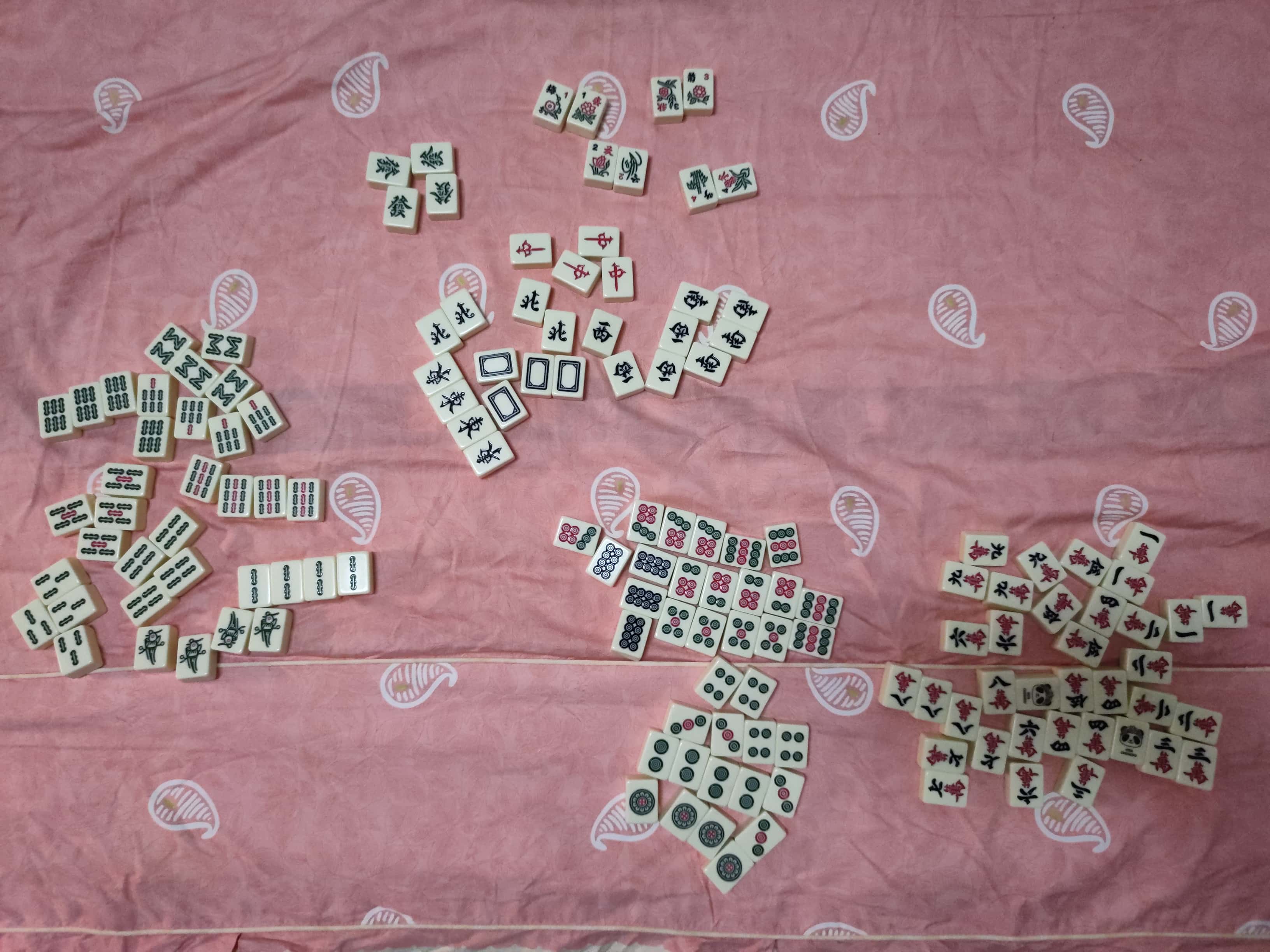 《清点》 麻将带给亲戚之前,需要清点一下,有无问题。 先点了一次数量,144,没错。 不够,还需要检查,再看看规格,分个类。确定没错了。 小娃在边上,顺便也学点数学知识,应用题。 也属于寓教于乐。