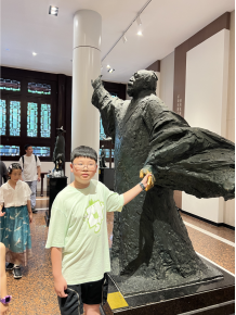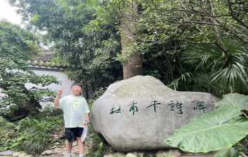 #潮闻小记者# 杜甫草堂 温州市龙湾区第一小学龙祥校区五(3)班 郑满乐 指导师:王婵娟 七月的成都虽然已经进入了盛夏,却依然在这炎炎夏日里给我们送来了一丝丝清凉。这种舒适的天气最适合逛公园了,于是我们来到了赫赫有名的“杜甫草堂”。 杜甫草堂位于成都的西门外。一来到这里,目及之处皆是绿意盎然。参天的树木拥有巨大的树冠,像一顶顶巨伞阻挡了外界的嘈杂,为草堂增添了许多的幽静神秘。这里的一草一木像是一位位守护者,又像是历史的见证者,静静地向到来的游客们述说过往。 沿着青石铺成的小径,我来到了“大雅堂”。据介绍,这个名字取自杜甫的《大雅》诗篇。来到堂前,首先映入眼帘的是一座瘦削的杜甫雕像。它静静地坐在那里与身后的青瓦白墙,飞檐翘角融为一体,像是从历史长河里慢慢走出来的真杜甫。步入堂内,一股浓烈的文化气息扑面而来。墙上的壁画精美绝伦,画中人神态栩栩如生,那浓烈的色彩冲击眼球,每一帧都有它独特的魅力。大堂内还伫立着多位历史上著名的诗人,比如潇洒不拘的李白、清冷哀怨的李清照、大气磅礴的陈子昂……每一个雕像都活灵活现,让人情不自禁地走上去一一与他们合影留念。 走出大雅堂,沿着幽深的石子小路继续前行,就来到了大名鼎鼎的“茅屋故居”。故居人声鼎沸,游人如织,我不禁想到杜甫的“花径不曾缘客扫,蓬门今始为君开”,这里早已不见杜甫的身影,唯有络绎不绝的游人。从前,我读杜甫的《茅屋为秋风所破歌》时,它的茅屋给我所留下的印象是寒酸且破烂不堪的,但现在的茅屋经过一代代人不断地修缮与维护,已经变得焕然一新。如果杜甫能有穿越时空的本领,看到现在的茅屋,肯定不会再那样忧国忧民,因为现在的茅屋已经足够能“安得广厦千万间,大庇天下寒士俱欢颜”了。 在草堂里走走停停,这里不仅有赏心悦目的美景,更有博大精深的中华文化。园里的盆景精致小巧,与自然与人文都完美融合,每一处都透露着深厚的文化底蕴。时间总是过得飞快,我依依不舍地离开了草堂,但诗人们的样子深深印在了我的脑海里,他们的爱国精神更是印在了我的心上。 【点评】这篇文章以细腻的笔触描绘了夏日访杜甫草堂的所见所感。作者巧妙地将自然景色与人文景观融为一体,不仅细腻刻画了草堂的幽静古朴之美,还深刻挖掘了其背后的历史文化底蕴,让读者在文字间穿梭古今,与杜甫及其他文人墨客产生跨越时空的共鸣。尤为值得一提的是,文章结尾处的情感升华,不仅表达了对草堂之行的恋恋不舍,更流露出对古代文人爱国情怀的深刻理解和尊崇,体现了作者良好的文学素养和情感共鸣能力。
