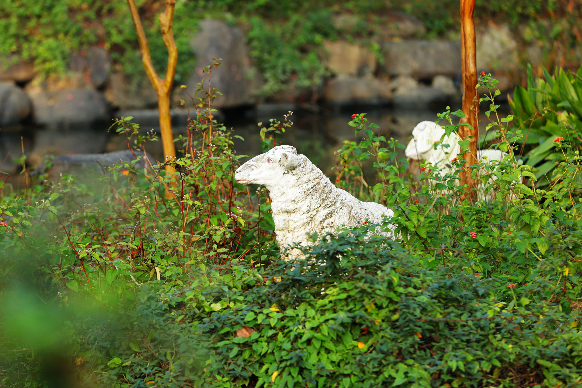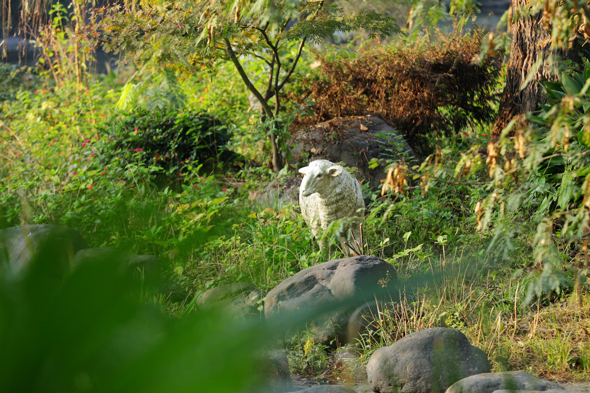 《绿岛公园绵羊出没》早晨,走在宁波江北绿岛公园,被园中小岛上的白点吸引,驻足拉过长焦,映入镜头的原来是几只洁白的绵羊,有的悠闲自得地品着草禾,有的警觉地盯着我的镜头,妙趣横生。公园里,如此栩栩如生的雕塑,令人赏心悦目。