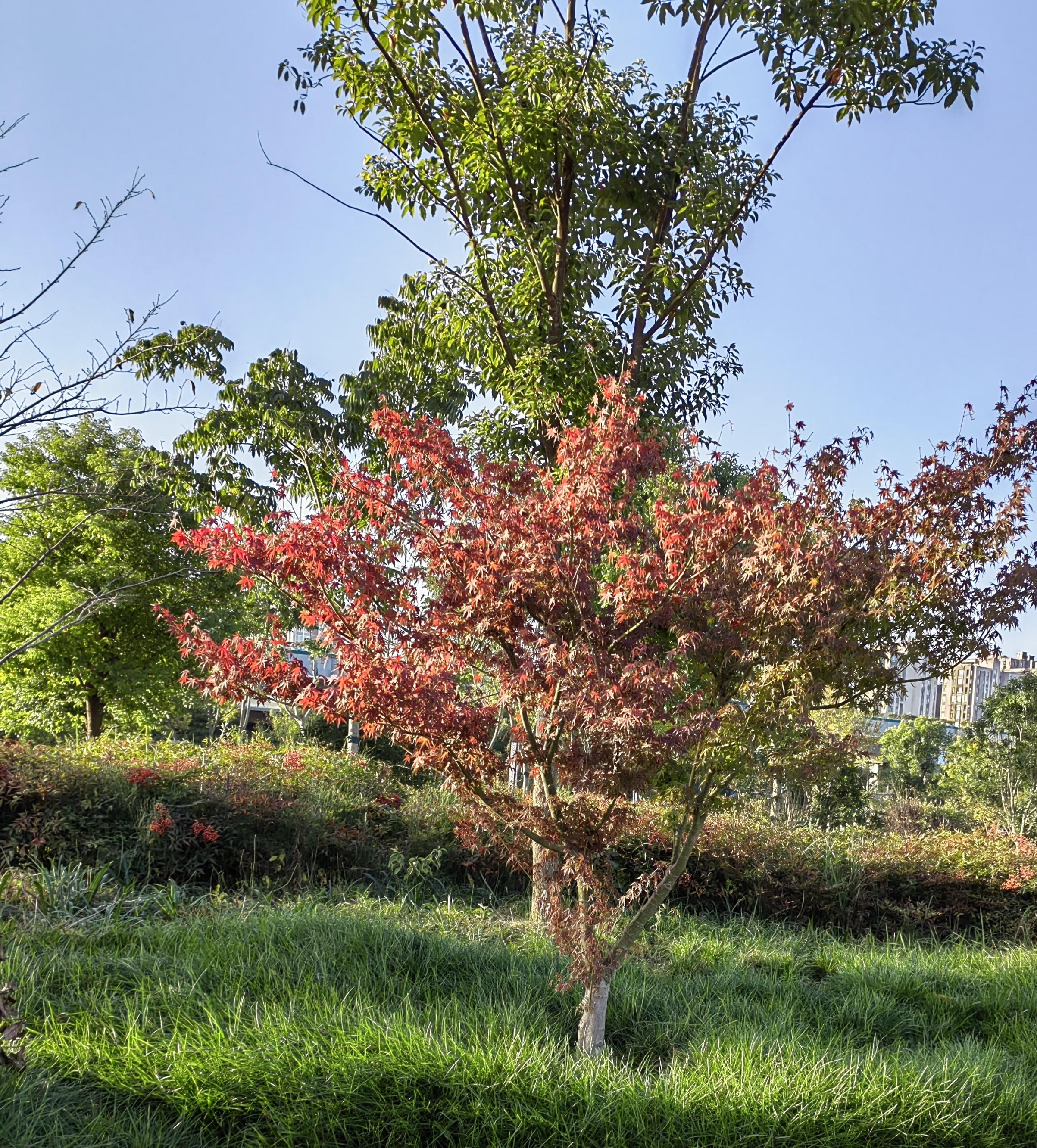 仲冬运河畔 迟暮之美人 朽木 自小雪节气起,阳气便应缓缓上升,寒气则该渐渐沉降。12月7日,大雪又将来临,仲冬已至。凛冽的西北风会时不时呼啸而来,霜花也会似绵绵的白砂糖,又像薄薄的轻纱,均匀的覆于草木禾苗之上。雨滴也随时可能化作雪花,纷纷扬扬飘落,将人间装点得白白茫茫。 权威的消息终于来了,11月26日,气象台预报:“自11月27日起,气温会骤降,郑重宣告,浙江全省明天起正式进入了冬天。” 如今的天气预报,真是准确得令人惊叹。当天夜里,窗外就有风从西北方向袭来,忽而似群狼之哀嚎,呜声长啸,忽而又宛若夜惊之波涛,奔腾砰湃。门与窗户虽然是紧闭着的,但是那寒凉之气仍像调皮捣蛋的小精灵,顺着裤脚直往身上钻。一阵又一阵的寒意,逼得我赶忙加了条裤子,再披上了一件薄棉袄。寒冬真的来了吗?从第二天起,老叟我就开始寻访。 连续数日的清晨7时左右,我穿着小棉袄,戴着鸭舌帽,准时来到京杭运河最南端北星桥至拱宸桥之间的河畔。走在古老的运河边,寒风吹拂着脸庞,我真实感受到了天气确实有了些凉意,老天意志不可违,我不喜欢的冬天已然降临。 不过,我渐渐发觉这凉意还不至于把人手脚冻僵,也不至于把老叟的头脑冻得麻木不清。仲冬,也还是温情脉脉的,既没有早春的“春寒料峭”那种刺骨的冰凉,更没有夏天那般酷热难挡,反而感觉如同仲春时节那样温凉舒适,使人神清气爽。 或许江南之人如同“早起的鸟儿”太过勤劳,又或许江南秋末冬初的景色太过迷人,好像老天爷都被打动了。富有人情味的上苍,就把如同仲春般的仲冬美景挽留了一些时日。使我在体验仲冬感受的同时,感悟到了大运河南端河畔的多姿多彩。 岸边的高楼大厦、民房小宅、树木花草,一同倒映在大运河清静如镜的水面上,美得恰似一幅长长的画卷。湛蓝的天空,澄澈的水面,水天相接。单看颜色真难分清哪是水哪是天。岸上之景与水中之影相连,一正一反,美到极致。 还有那轮船驶过的水面,在晨阳映照之下,泛起金色的粼粼波光,原本驻足在空船上歇息的鸟儿,见此状竟闪电般飞扑追赶。真可谓:“暖阳河水两相伴,美景惠眼身心暖。” 岸边树木的色彩与以前相比,也已悄悄地在改变。河边的垂柳,自三月吐芽后,近看像似中年妇人,已有几分老态。但是远远观之依旧青葱翠绿,仍然尤如大姑娘般俏丽。即将到来的寒冬,为了来年的繁茂,会让她褪去一身绿叶,而她似乎也早已知晓。正弯着身子,低垂着枝条,时而与大运河流水低语。时而又在风的纵容下蜻蜓点水般的与流水渍、渍、渍的亲昵,像是在即将脱去美丽衣衫之前,与流水拍个照以留个纪念。 银杏树早已果熟蒂落,果的外皮已化身为泥回馈给了土壤。小雪之前,银杏树的叶子还是黄绿相间,看起来也甚是顺眼。才没过几天树叶已逐渐金黄灿烂。如果银杏林中没有其它绿树参插,不要多久,一眼望去便是一片纯净的金色的海洋。其金黄之色在树叶未落地之时会辉映天空,天空一隅也会染上金黄。再过些时日,她们又将全部飘落在地面,变成一床又大又宽的金色锦被,覆盖于大地之上,以使大地保持温暖。 春夏和秋季的大部分时间里,枫树叶子都是青青绿绿。仲冬时节,江南的枫叶也开始换色。大运河岸边虽然没有大片枫树林,看不到“停车坐爱枫林晚,霜叶红于二月花”的壮观,但东一棵西一棵大小不一枫树的叶子,已由青变紫,顶端部分更是由紫变红。渐渐变红的枫树交织在常青树与落叶树之间,枫叶的红色、落叶树的黄色、常青树的绿色相互交叉映衬,给江南的仲冬增添了多彩的姿色。 随处可见的古樟,远看树冠总是墨绿一片。但仔细看靠近地面的诸多叶片,会发现她们在普遍变厚实的同时,还夹杂着星星点点的红叶。这点点红色改变不了樟树常青的特性,却也像一颗颗小红星星,点缀在樟树的“青丝”之上。 仲冬之际,大运河边的灌木也是五彩斑斓。有一种叫红花檵木的植物,究竟是花还是树,我至今还没有分辨清楚。她的根部呈紫色,顶部又满是靓丽的粉色,再加上人工把她修剪成蓬松的大圆馒头状。其鲜艳得就如舞台上俊俏性感的粉脸花旦,美得人见人爱,美得男女老少到了她的跟前,都会情不自禁的驻足留观。还有那红叶石楠,下面叶子是青色的,新长的叶子却是紫褐色的,一树二色,堪称奇观。 人们都说“冬天一到,百花凋零”,然而江南大运河畔的仲冬却好似仍是春意盎然。仲冬也许就是路旁野菊花的春天,她们成片开放,冷风吹得越猛,笑得越是灿烂,真可谓“不经受过冬之寒凉,那会有菊花朴鼻香。” 仲冬时节的鸡冠花,意志也很是坚强,身姿依旧挺拔,顶着大大的粉红或深红的花冠,在温暖的阳光下坚守着自己的风采。 月季花也未在冷风中屈服,每一株都有一朵或几朵花在娇艳的绽放,宛如一群不畏严寒的仙子在人间玩耍。 还有那南天竹,冷风吹拂之下,叶片仍嫩绿得油光水滑,果实却像一串串橙红的珠子,闪射出阵阵亮光。还有山茶花,好似冷天就是她们的天堂。天越冷,孕育的花蕾越多,生长也越快,早熟的花朵已然绽放。 仲冬的最南端的京杭大运河畔,已有了冬天的模样,暮冬时节也会天寒地冻。但是若把春天的河畔看作如及笄年之少女,单纯而浪漫;秋天的运河两岸经过夏天的酷热,变得成熟而妖娆。那么当下仲冬的河畔则如迟暮的美人,如秋空般澄静而沉稳,风姿依旧在,气度仍不凡。所谓“花开堪折直须折,