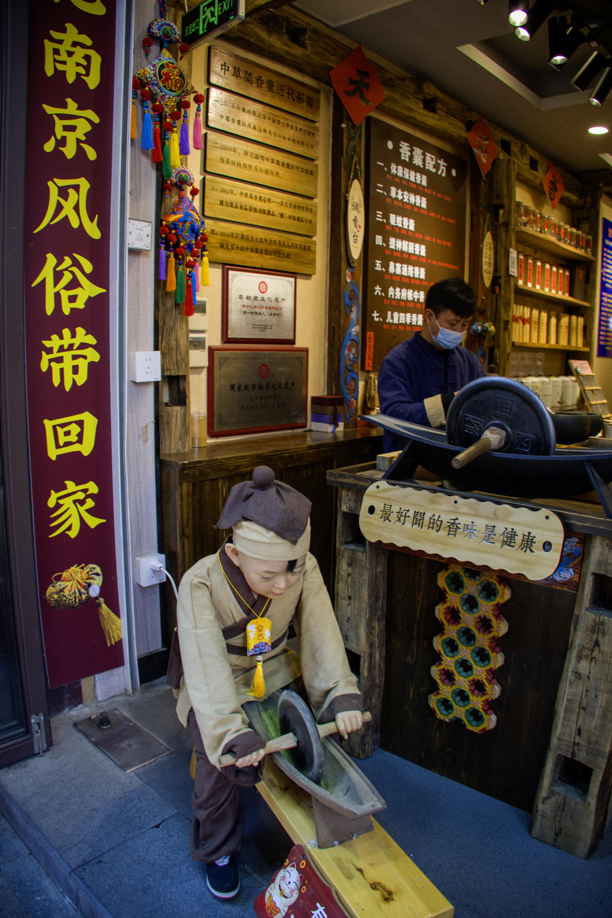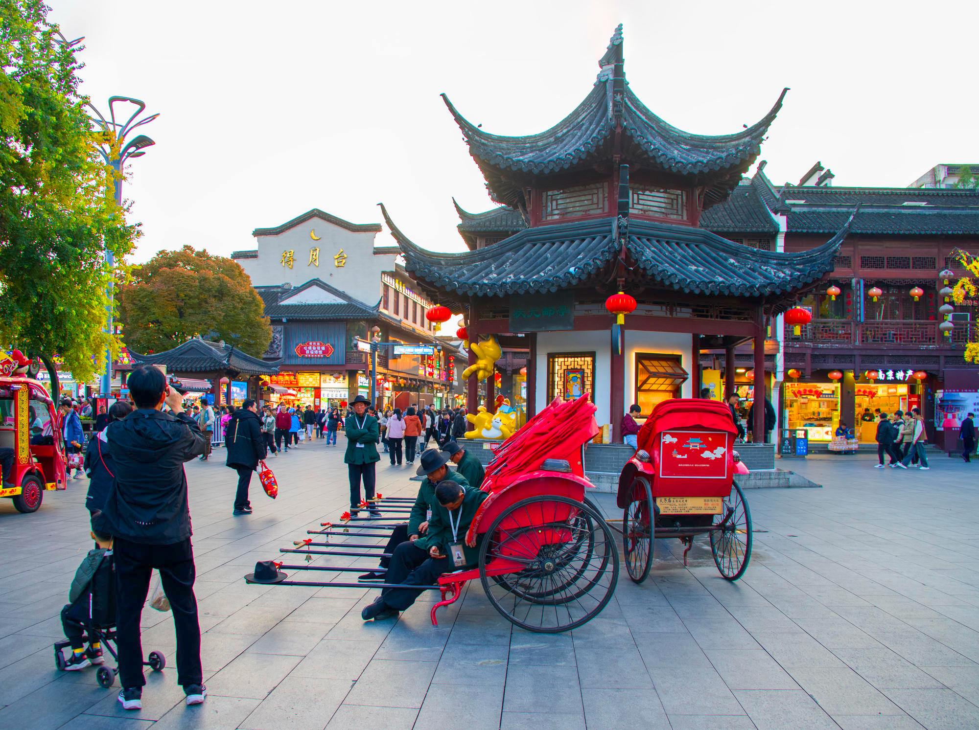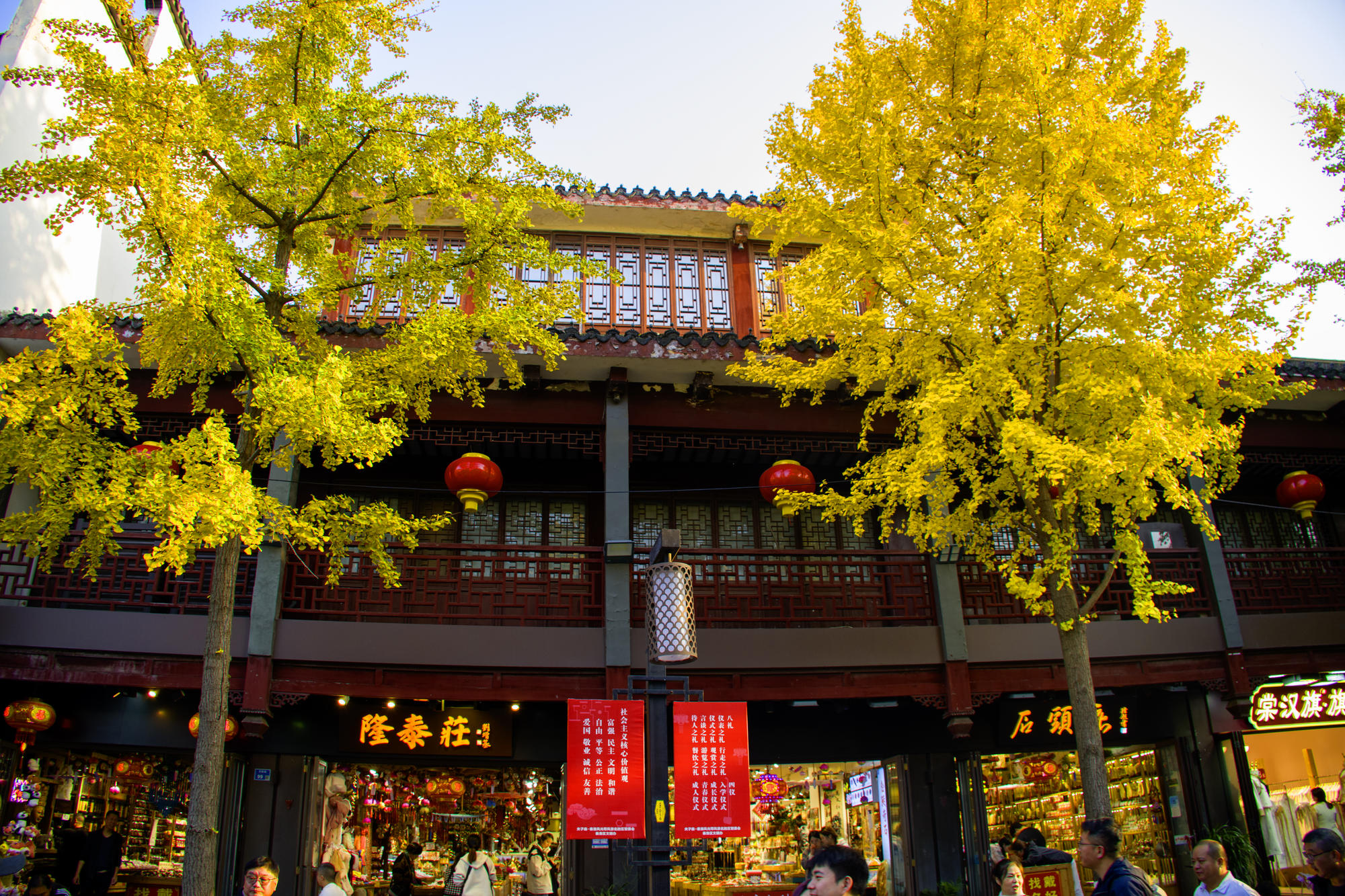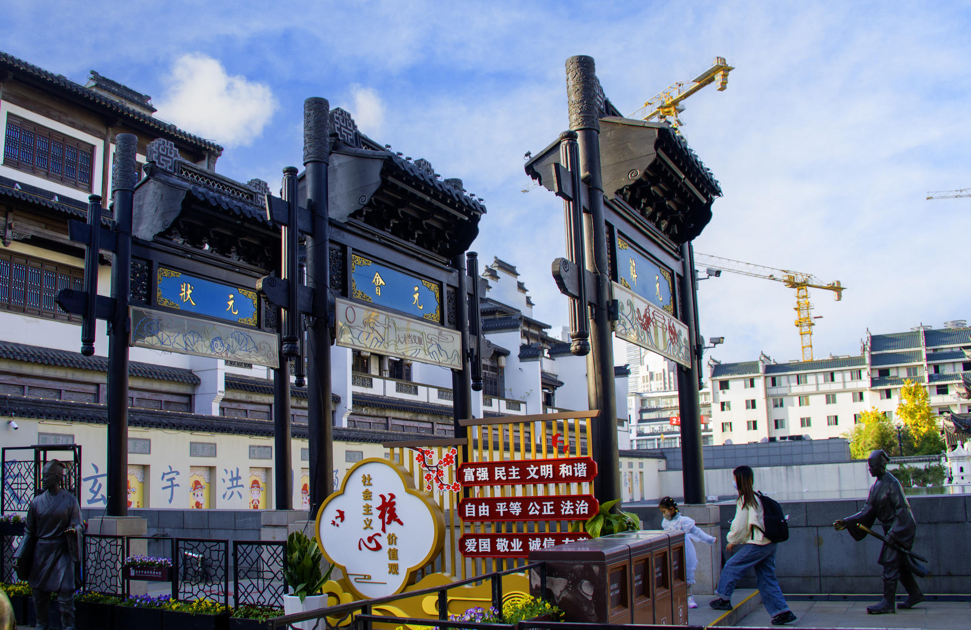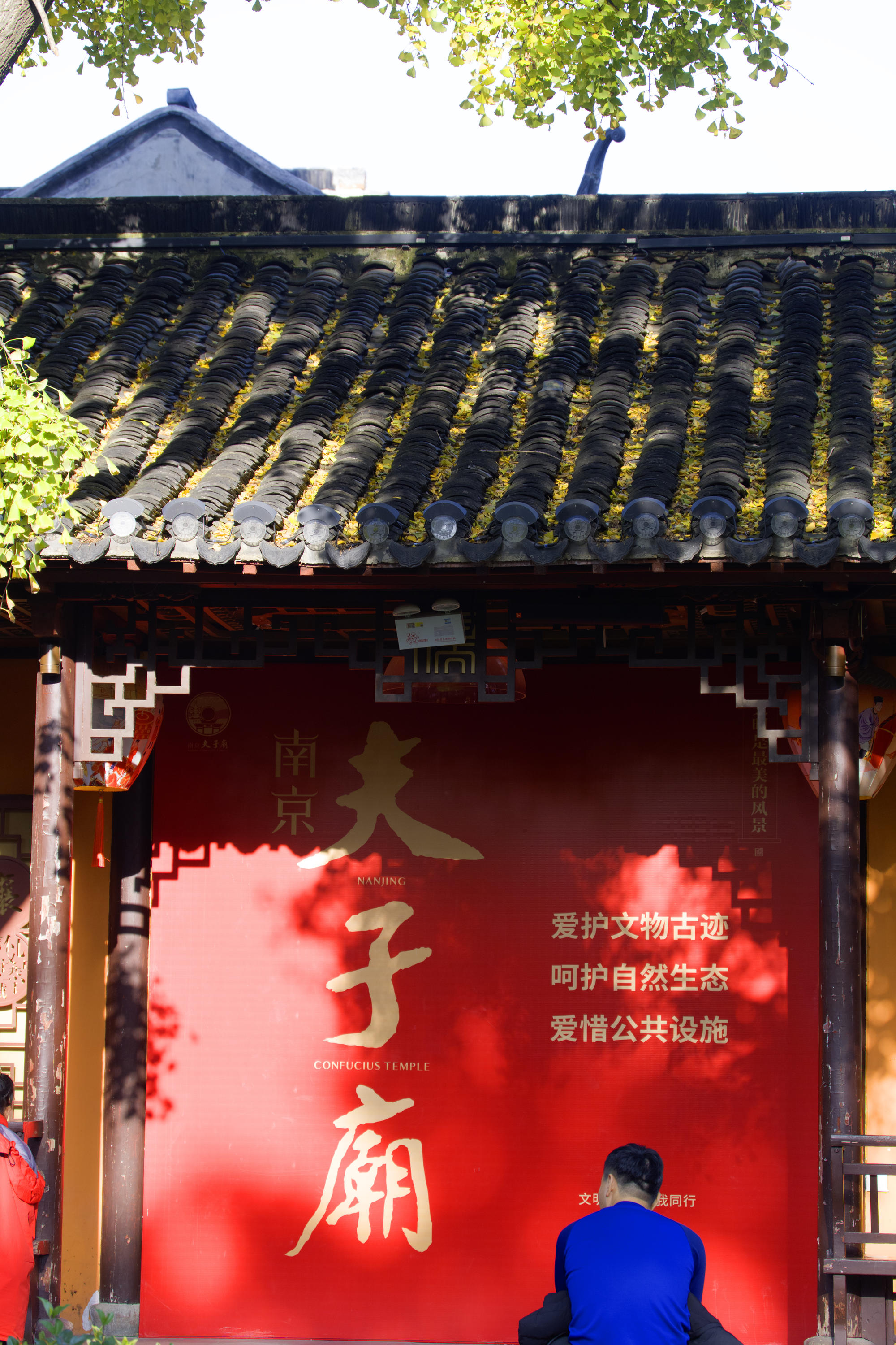 步入南京夫子庙,我仿佛穿越了时空隧道,回到了那个古色古香的时代。黑瓦红灯的建筑在阳光下熠熠生辉,墙上夫子庙几个大字格外醒目,仿佛在诉说着这座城市悠久的历史与文化底蕴。这里不仅是一处旅游景点,更是一本厚重的历史书,每一页都记载着过往的故事。