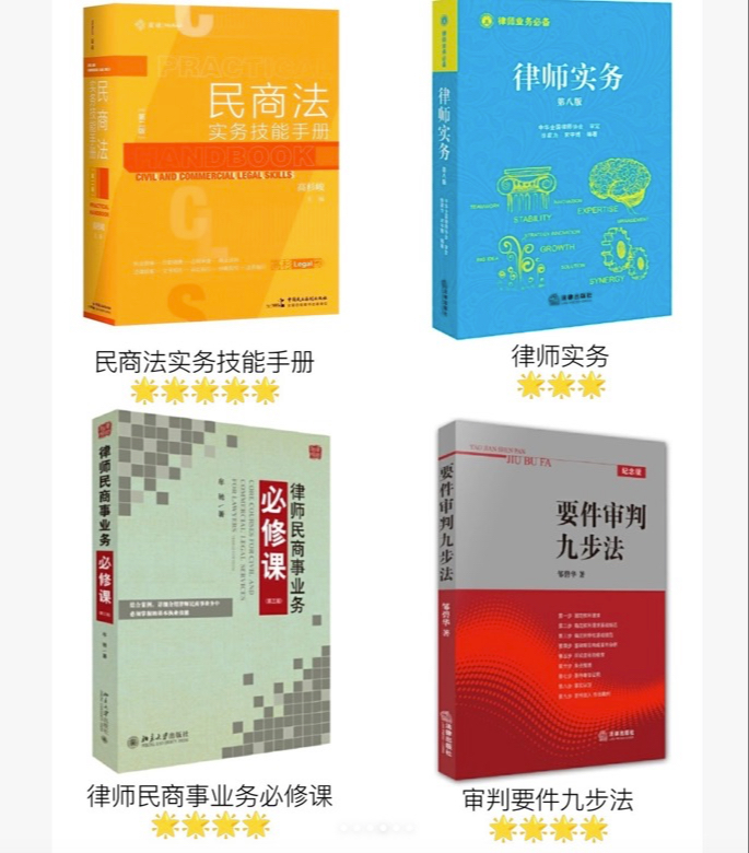 📙娱乐法律师实务之推荐书籍清单🧾 经常有小伙伴私信和我交流,问想从事文化娱乐法、电子商务法律业务有什么好书推荐📚 这次专门整理了一些床头书和工具书,分享给大家✧٩(ˊωˋ*)و✧🍖 1️⃣文化娱乐、电子商务类(P2-P3) 这4本书可以让大家了解此类业务的主要工作内容有哪些?可以为当事人提供哪些诉讼与非诉业务?办案过程中需要关注的风险点有哪些?🕰其实我建议大家挑2-3本该类业务的实务书籍来看即可,主要是对该业务有初步的了解。 2️⃣民商事实务(p4-p5) 除了娱乐法一些行业特别之处外,其本质也是以民商事为基础的业务,所以要做好业务,还是得提升自己的专业水平。民商事实务的书籍真的是星辰大海,所以我也只能推荐目前看过比较好的。 其中,p5的法律顾问一书,可以让做企业法律顾问业务比较少的朋友,对企业用工全流程有详细的了解。司法观点集成一书是一套最高法出的丛书,而且有增补本,建议大家可以看看有没有电子版,当工具书来看,特别有用。 3️⃣其他非法学类书籍(p6) 其实我平时看非法学书籍比较少,这两本书让我学会两个特别重要的能力。一是阅读能力。工作特别繁重时,如何静下心来去读一本书,读书时如何理解,这本《如何阅读一本书》会告诉我答案。二是销售思维。很多人讲律师戏称一只脚踏在法律,另一只脚踏在销售。雪梨卷《这样销售很高级》以及她的课程(我听了几场她与一些行业大牛律师开设的公益课程和讲座),确实让我了解到了很多销售知识,帮助我在宣传、拓客上的思维完全打开。(没有收💰,真不是广,不是安利大家买课,但我真的推荐有拓客需要的朋友可以多多了解销售心理。对自己真的有帮助) 以上就是我的推荐啦!希望对大家有所帮助~