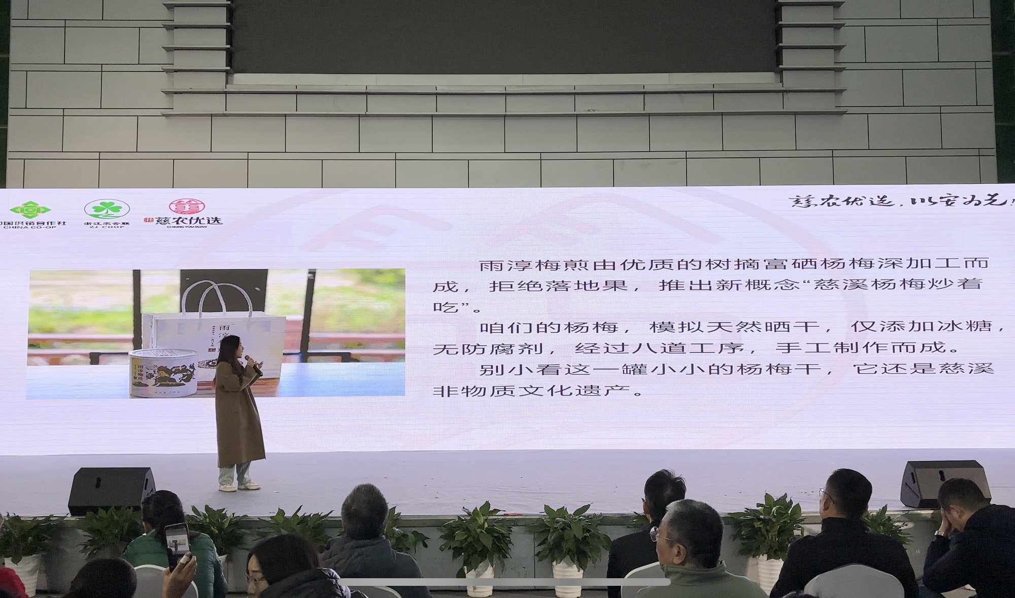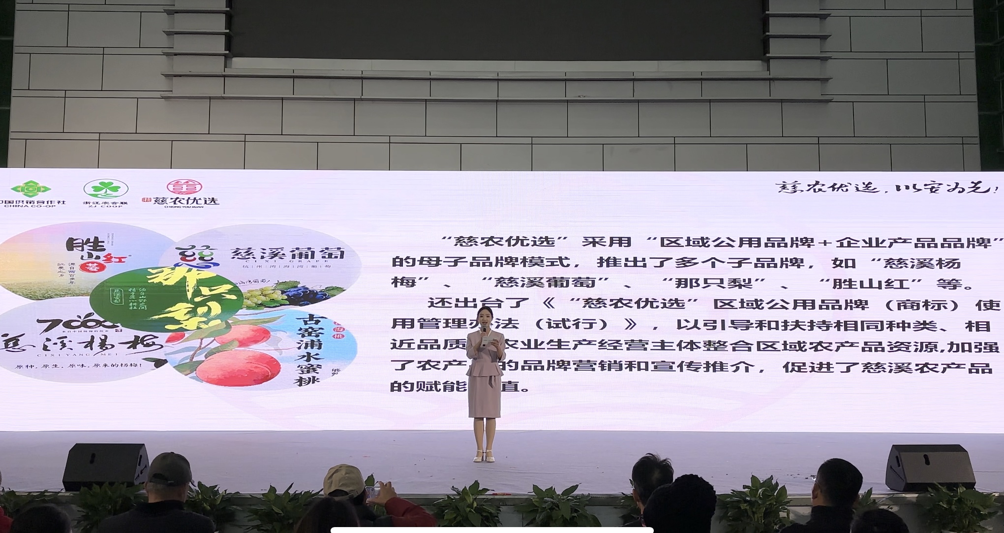 "慈农优选"亮相宁波市农博会 (通讯员 慈农公社)12月30日,由慈溪市农合联执委会主办的“慈农优选”农产品区域公用品牌推介会在宁波市国际会展中心举行,这标志着“慈农优选”在走出慈溪,走向长三角的征程上迈出了关键一步。 推介会在巜只此青绿 》舞蹈表演中开始。据了解“慈农优选”是慈溪市农合联执委会从实际出发,对照慈溪农产品的独特品质优势、安全环保的生态化种植栽培技术等条件,倾力打造的覆盖全市域、全品类、全产业链的农产品区域公用品牌,并引导农业经营主体统一标识、统一口号、统一标准,切实提高农产品品质,实现从依靠数量规模扩张向质量兴农、品牌富农的动能转换。慈溪市政府高度重视农产品品牌建设,2009年开始陆续注册“慈溪杨梅”、“慈溪葡萄”、“慈溪蜜梨”等农产品商标,目前,仅“慈溪杨梅”、“慈溪葡萄”、“慈溪蜜梨”三大果品品牌总价值就超过29亿元,品牌数量及品牌价值均位居宁波县市(区)首位。 但是,随着我国农业进入“品牌时代”,慈溪迫切需要一个能统领本地农产品的区域公用品牌,提升现代农业发展水平,“慈农优选”就是一个覆盖全市域、全品类、全产业链的农产品区域公用品牌。通过细化产品分类、建立产品选择标准、完善产品分级制度优选出慈溪本土最高品质的农产品,以最高标准注解慈溪农产品的形象。目前,已授权“慈农优选”品牌给130余家企业、合作社使用,涵盖杨梅、葡萄、蜜梨、红菱、草莓等多个农业产业。 慈溪市农合联将继续完善“慈农优选”品牌规划,找准品牌定位,突出品牌优势,使“慈农优选”真正成为叫得响、卖得好的品牌,让“慈农优选”系列农产品能够走出慈溪、走向全省、销往全国。