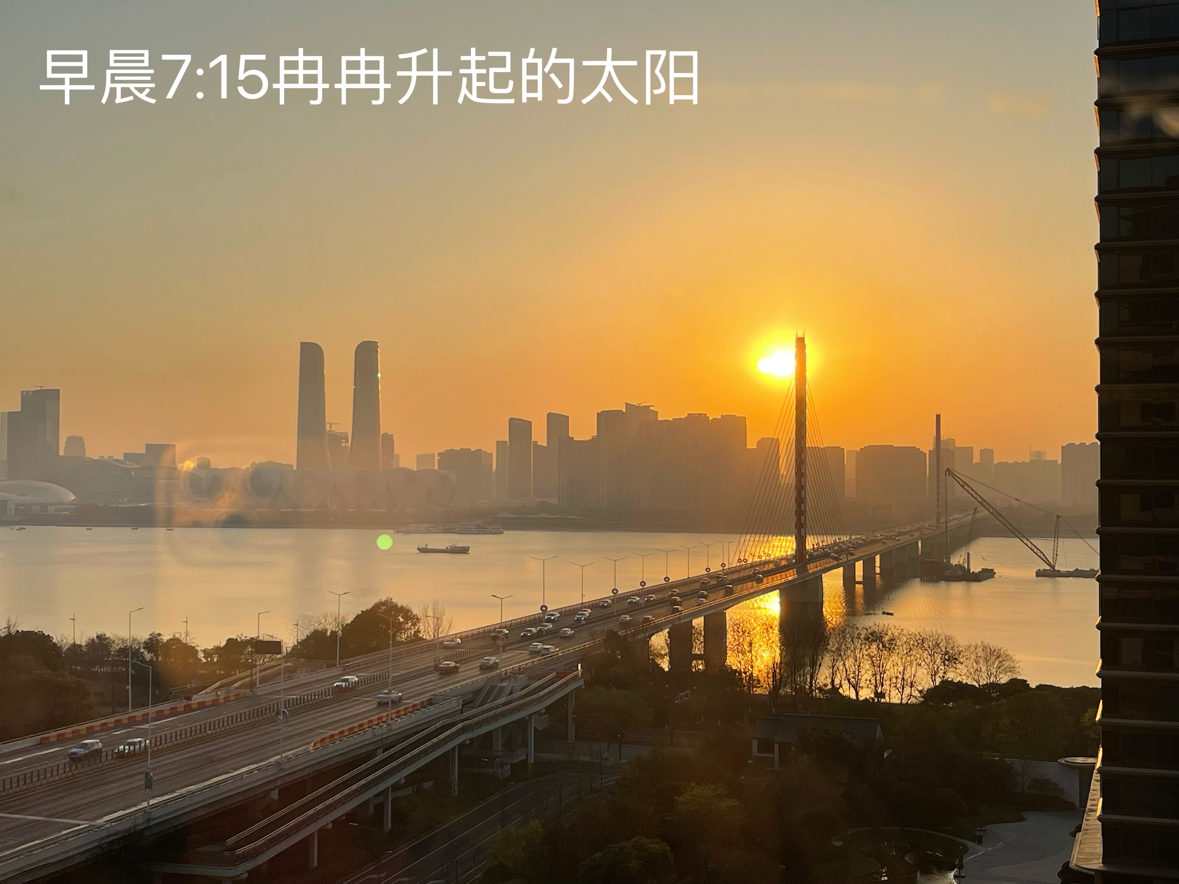 清晨阳光冉冉升起,用美好的心情迎接新的一天的到来。一天的工作就要结束了,远处夕阳渐渐落下,金红色的霞光洒满天际,喧闹的杭城即将开启夜生活的模式。