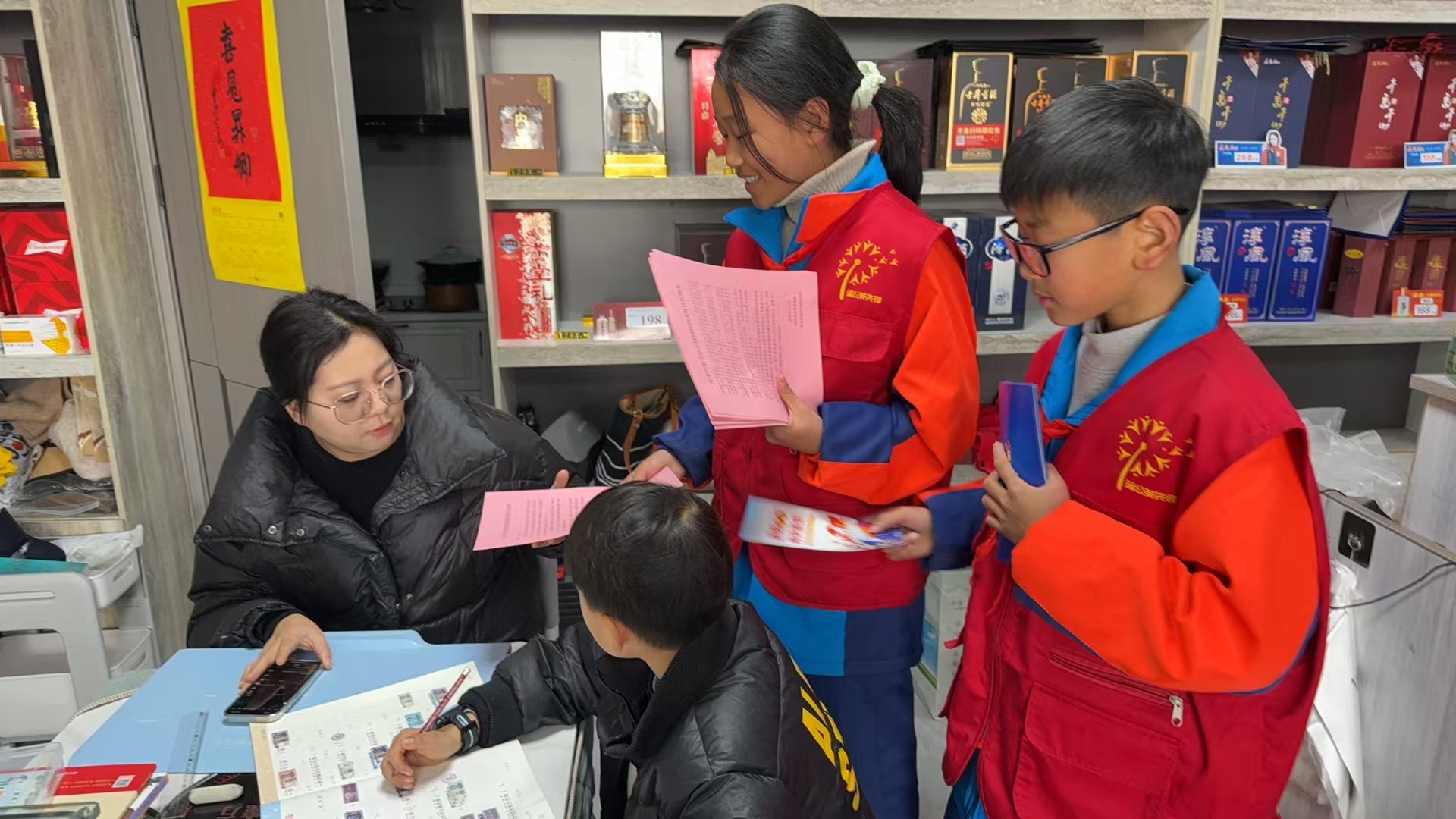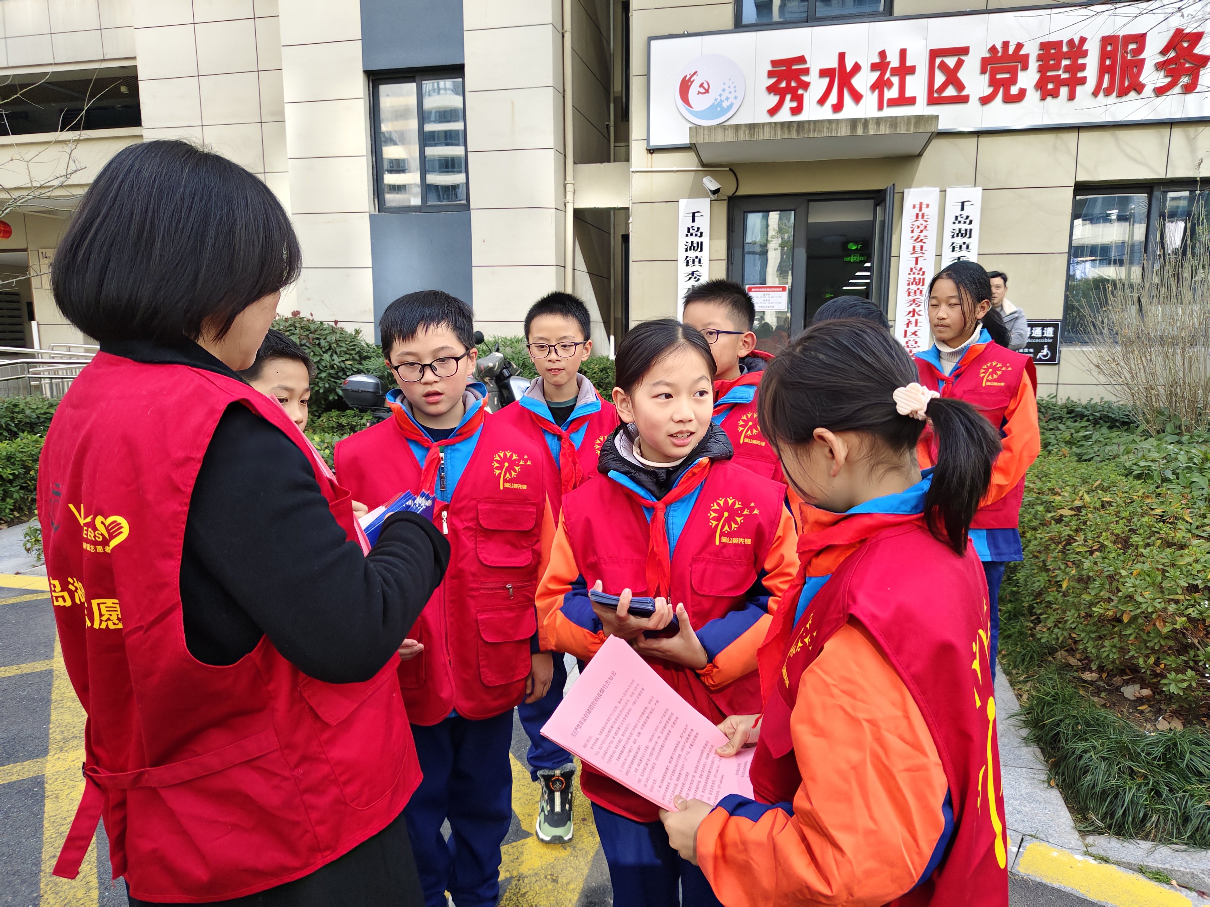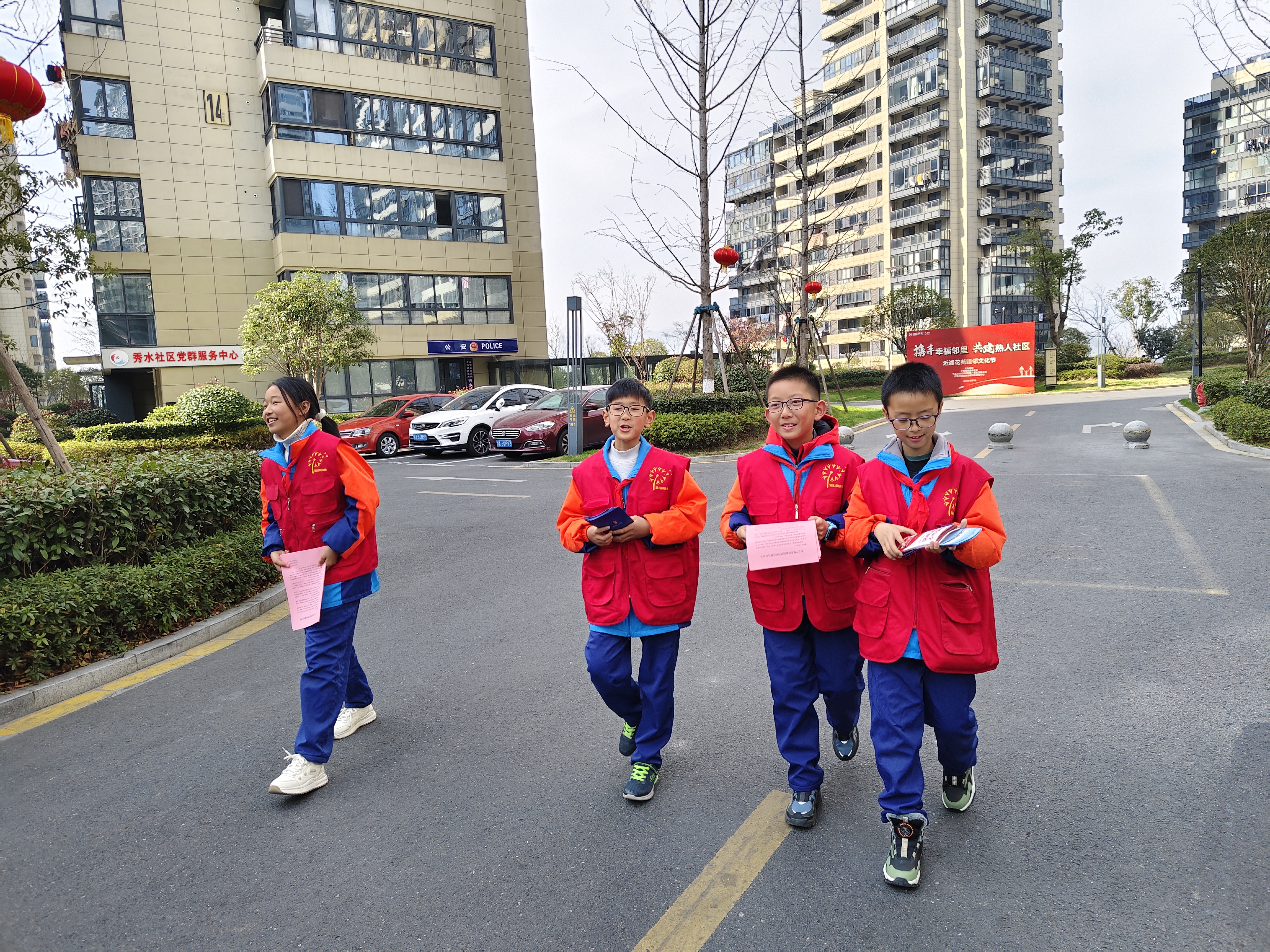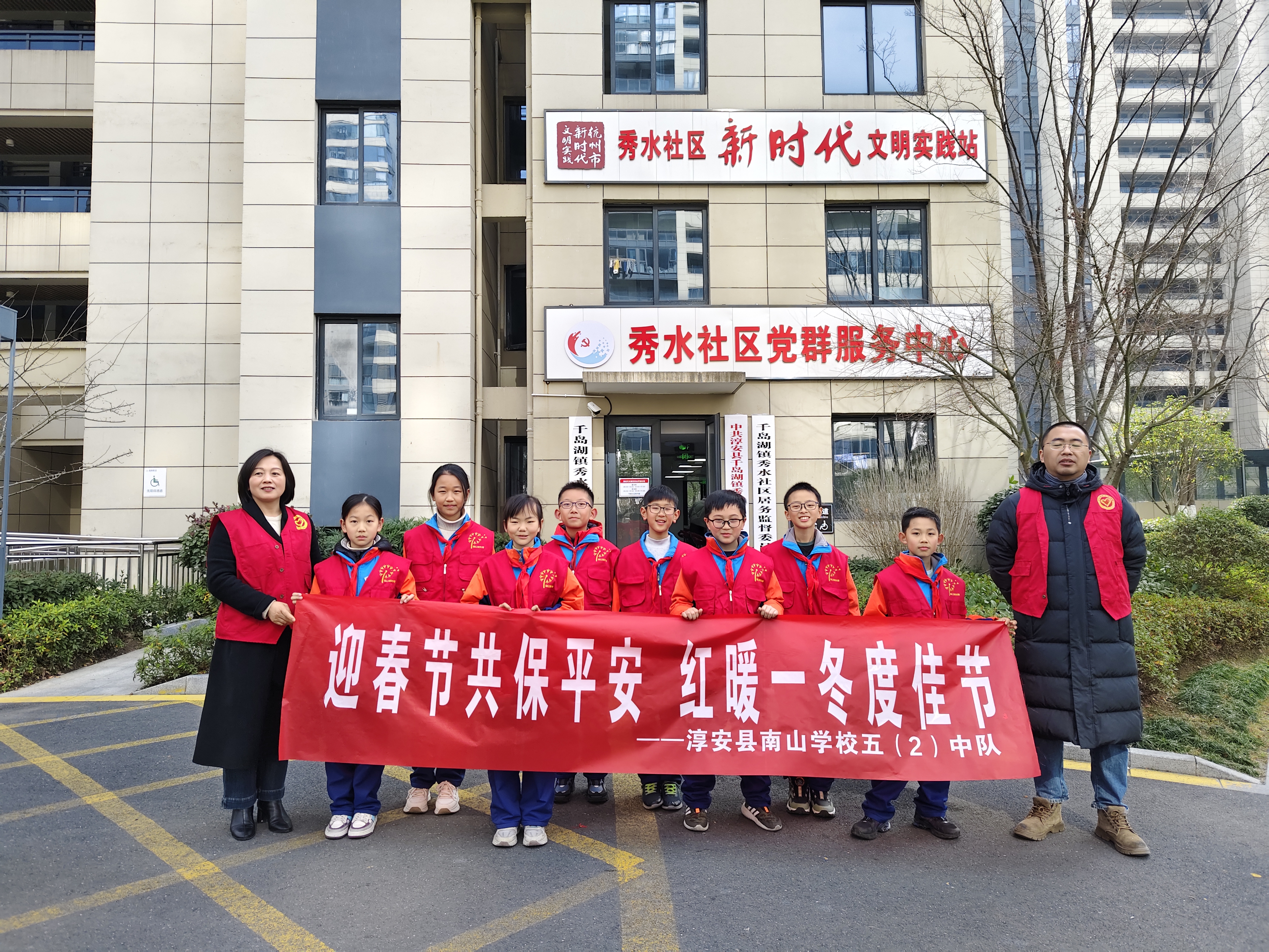 温暖冬日的志愿之光 通信员:徐睿晟 郑禾萍 寒冬的暖阳轻抚着千岛湖秀水社区的每一寸土地,街道两旁挂满了迎新的红灯笼与彩带,而我们五(2)中队这群佩戴着鲜艳红领巾的少先队员,怀揣着一颗参与社会、传递温暖的心,踏入了这次特别的社区实践之旅——“迎春节共保平安,红暖一冬度佳节”的志愿者活动。 我们踏入了社区那崭新的微型消防站,这里藏着守护平安的秘密。工作人员热情地接待了我们,他一边详细介绍着各式消防器材,一边示范如何正确使用。灭火器、消防头盔、防护服、消防水袋、防毒面具……每一样都显得那么沉重而重要,却又在工作人员的讲解下变得生动而易懂。最令我好奇的是那些看似普通却极具功能的防毒面具,它们在紧要关头能为消防员叔叔筑起一道生命的屏障。 紧接着,我们跟随社区工作人员,走进了秀水小区的商户之间。街道两旁挂满了红灯笼和彩带,处处洋溢着节日的喜庆,但我们的任务却是严肃而重要的——分发关于禁售烟花爆竹和消防安全知识的告知书。我们穿梭在人群中,微笑着递上每一份宣传单,用稚嫩却坚定的声音,提醒着商户们和过往的居民,在享受节日欢乐的同时,也要注意防火安全。有的商户连声道谢,有的小朋友好奇地围观,我们的每一次交流都像是一粒种子,在人们心中播下了安全的意识。 活动间隙,我观察到社区的环境,清新宜人,居民们和睦相处,共享着这份宁静与和谐。阳光透过茂密的树梢,斑驳地洒在小径上,远处是千岛湖那如碧玉般的湖水,波光粼粼,与这份平安的氛围相得益彰。社区工作者告诉我们,正是这份对生命的尊重与对安全的坚守,才让千岛湖的每一个冬天都能温暖而平安。 红领巾在胸前飘扬,不仅是荣誉的象征,更是责任的标志。我深知,作为新时代的少年,我们要用实际行动,为社区添彩,为社会贡献自己的一份力量。在这个特别的时刻,我预祝每一个家庭都能度过一个平安、温馨的新年。