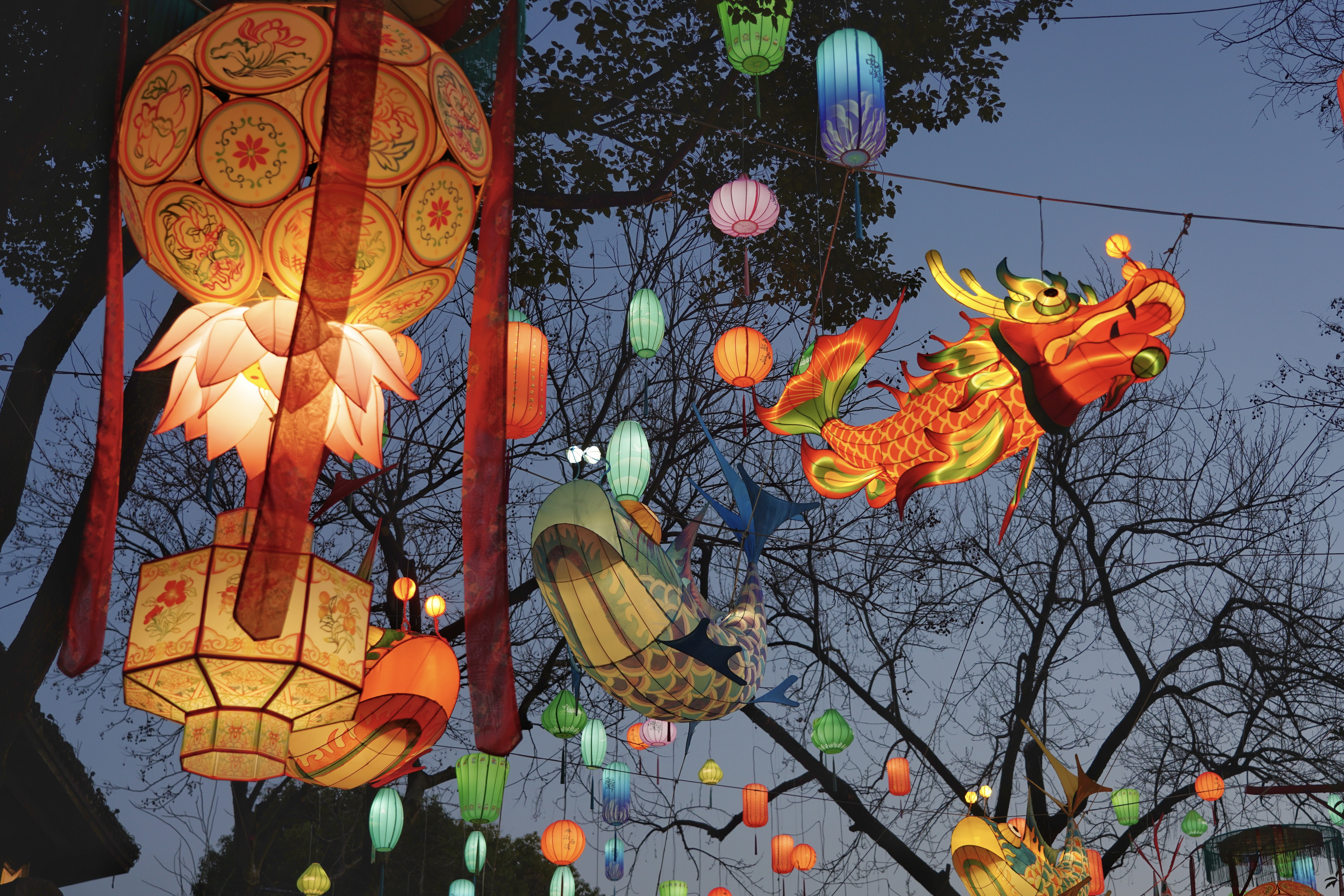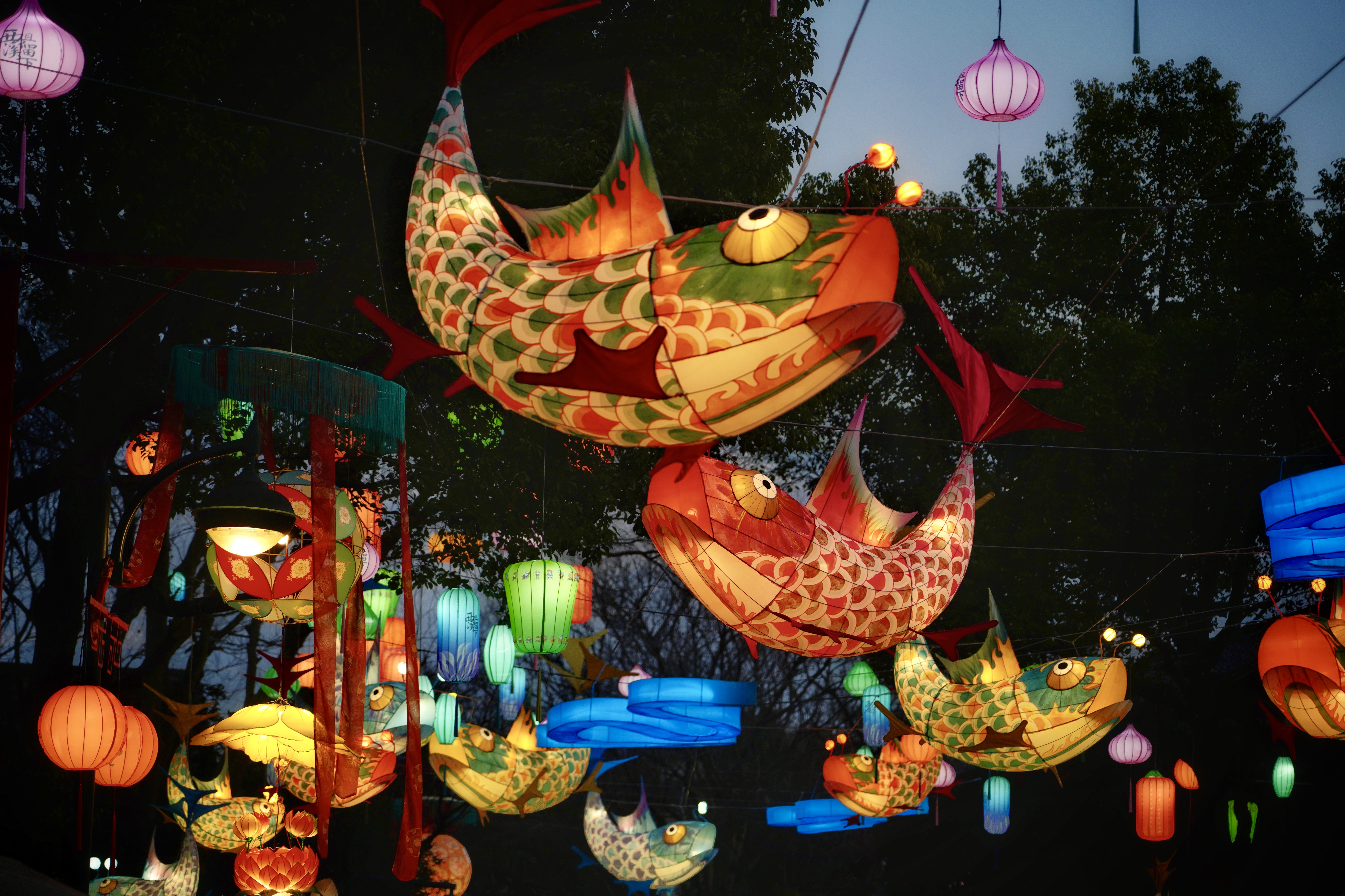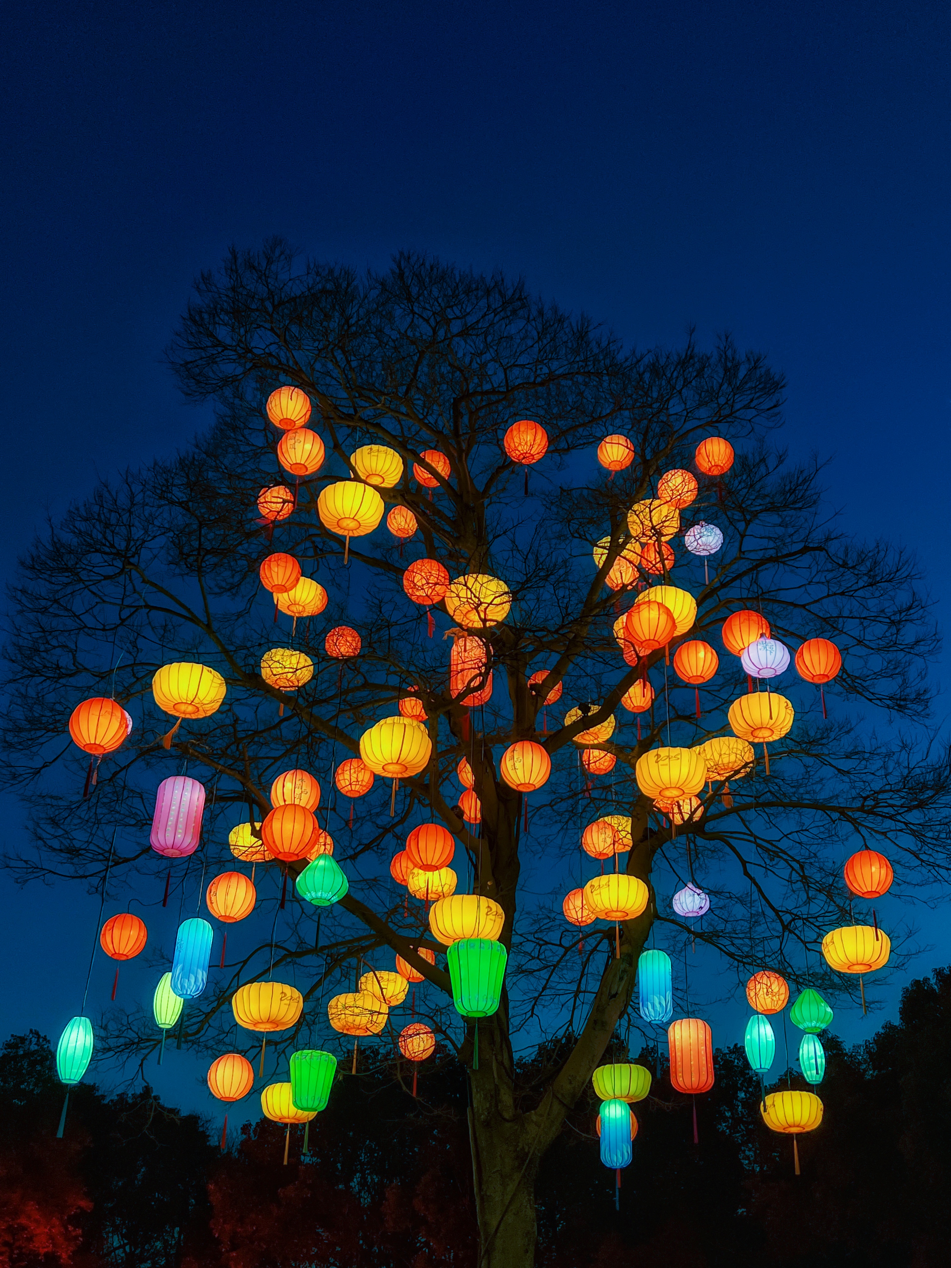 东风夜放花千树。杭州西溪湿地北门这棵灯笼树是大概是杭州最有年味的树了,蓝调时刻无敌,灯须随风摇曳,中式意境拉满。