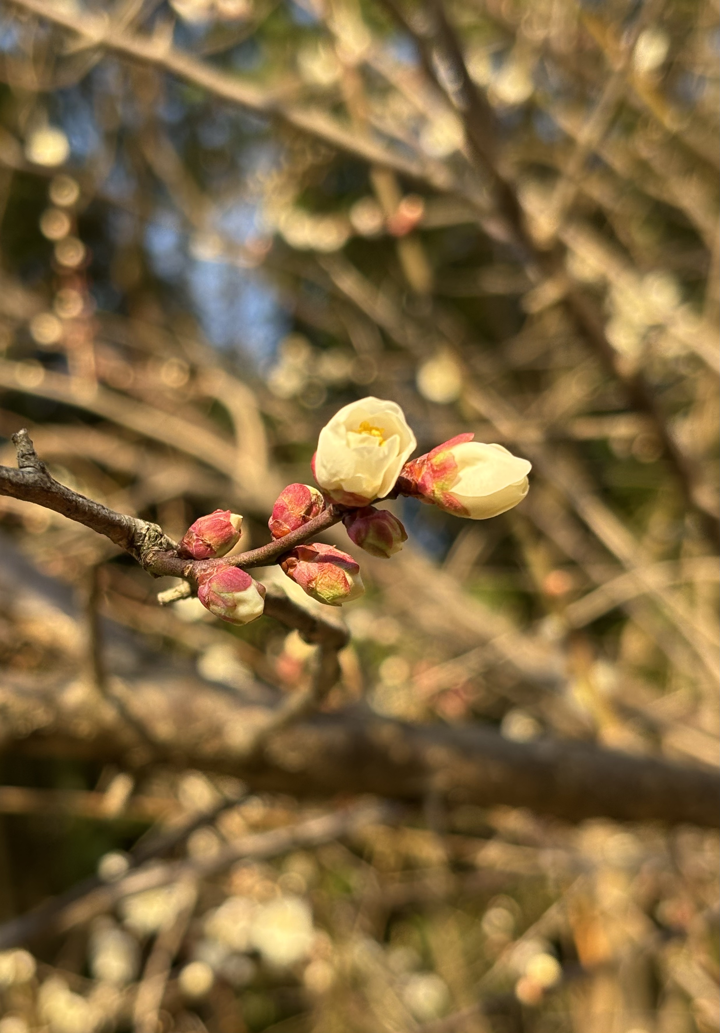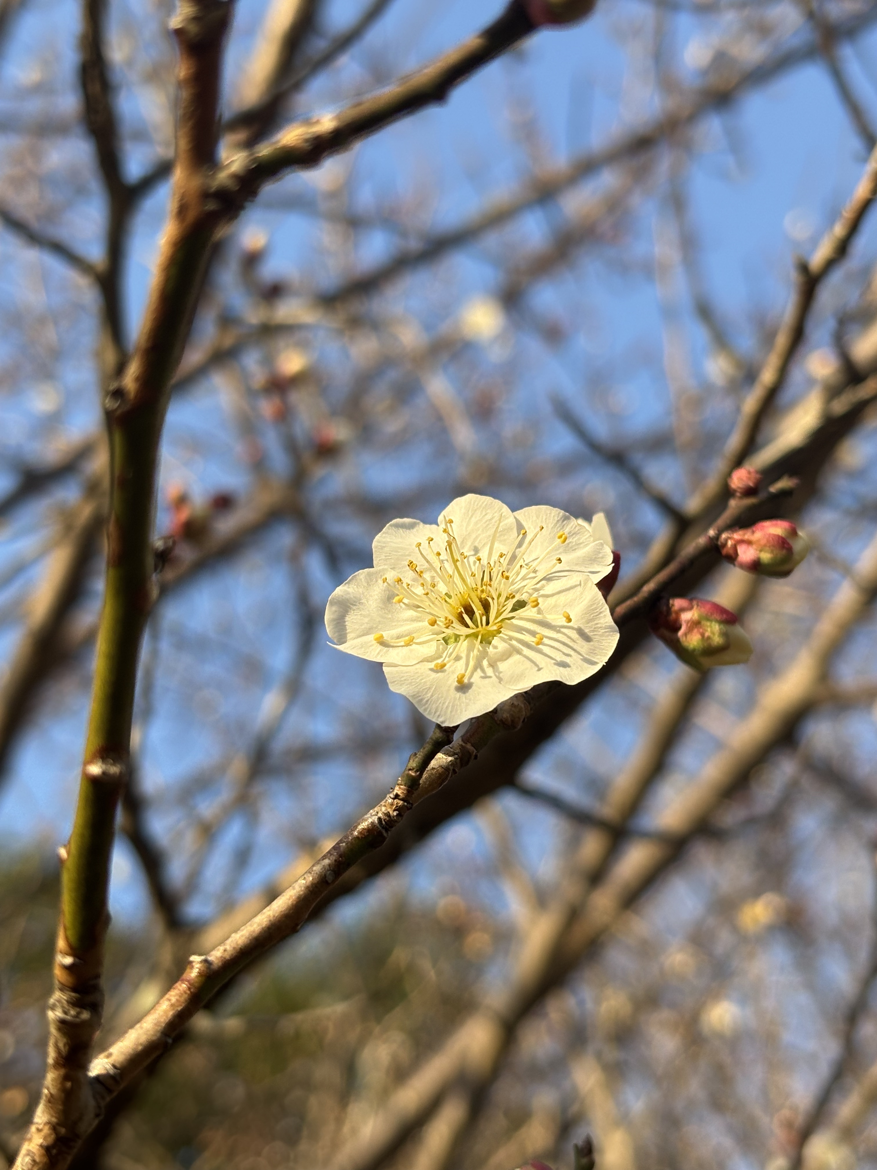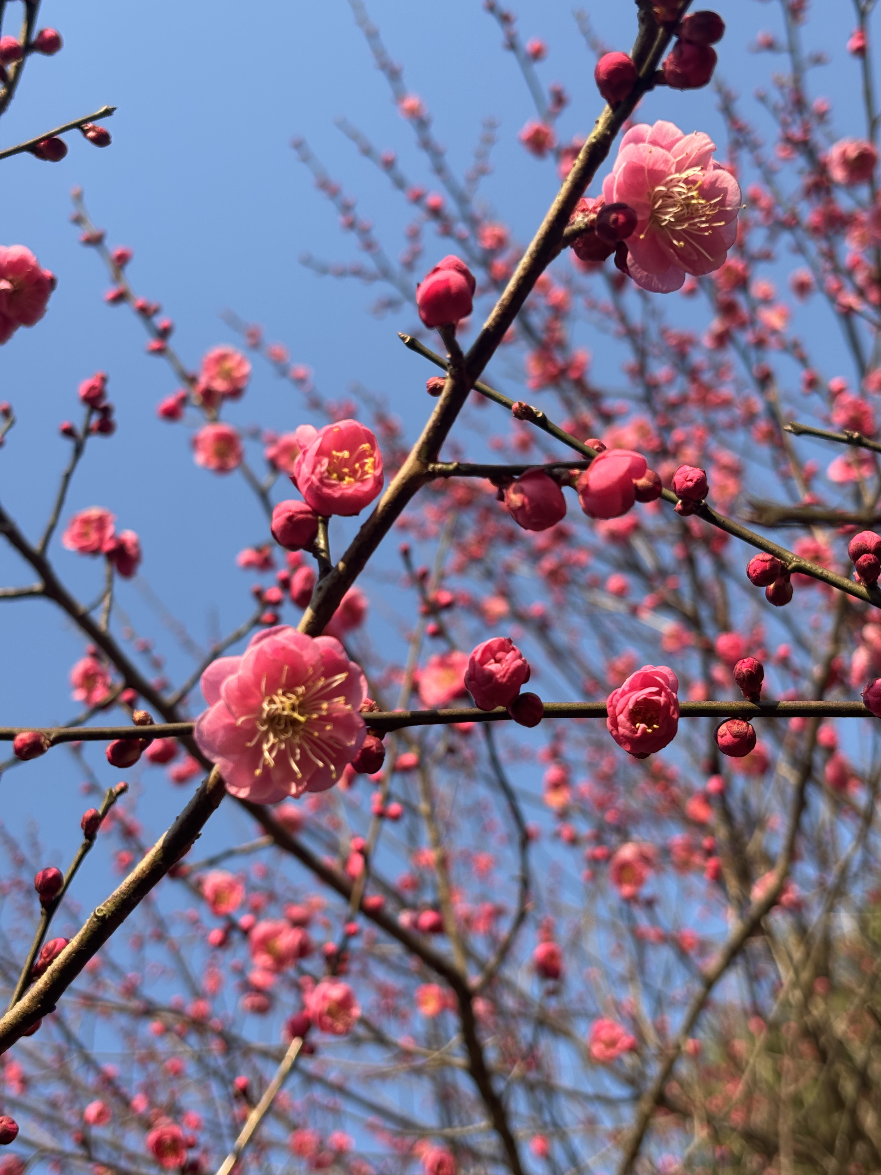 梅花是冬天的光明使者,也是春天的先锋力量。色调乏味的冬天需要梅花的点缀,梅花起承冬寒和春暖,零落成泥后唤醒大地春来。今日下午得闲,来到图书馆做志愿者,完成任务后,赴馆外散步,恰逢阳光灿烂,梅花正盛,一阵狂拍,心情欢喜,春天将来。