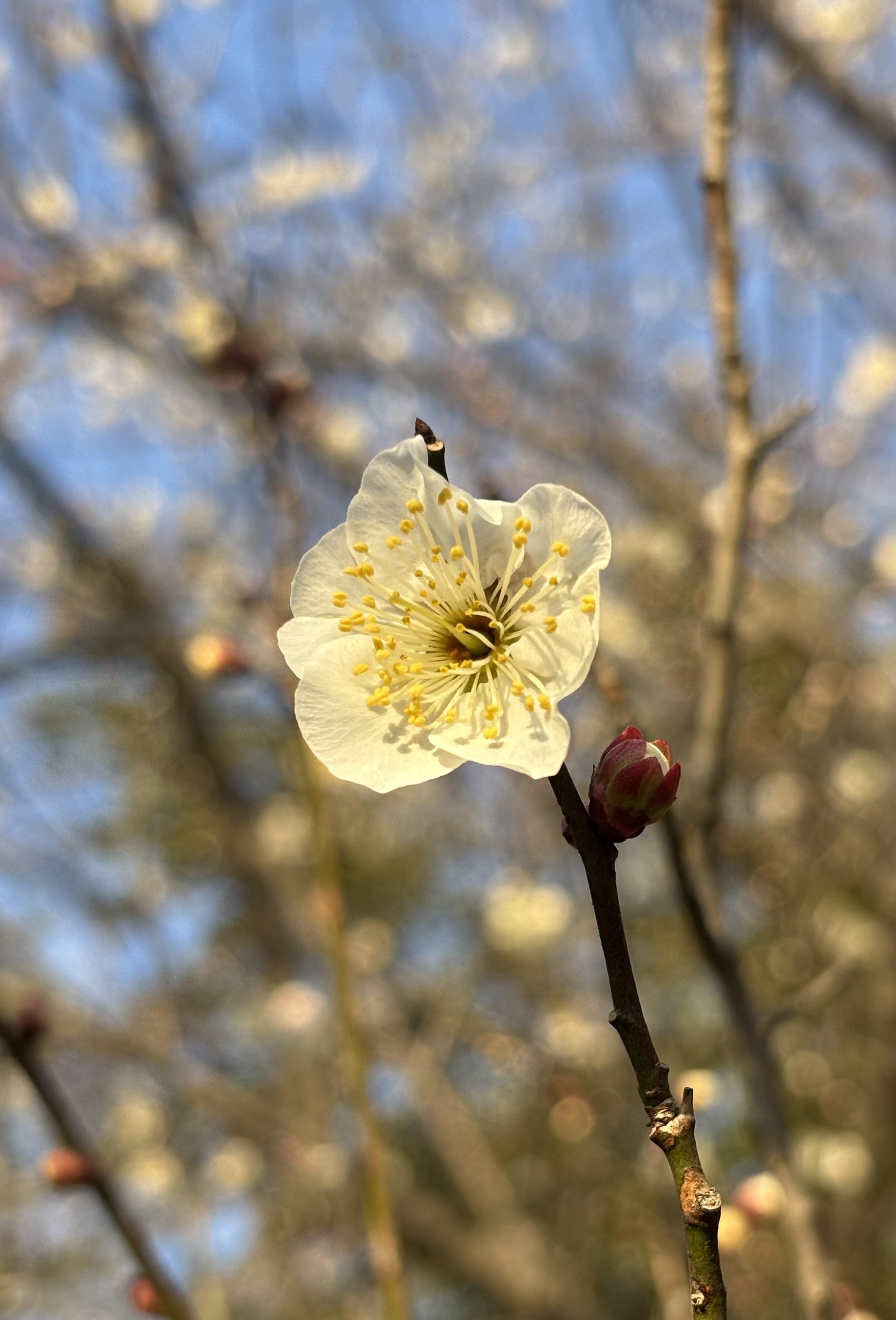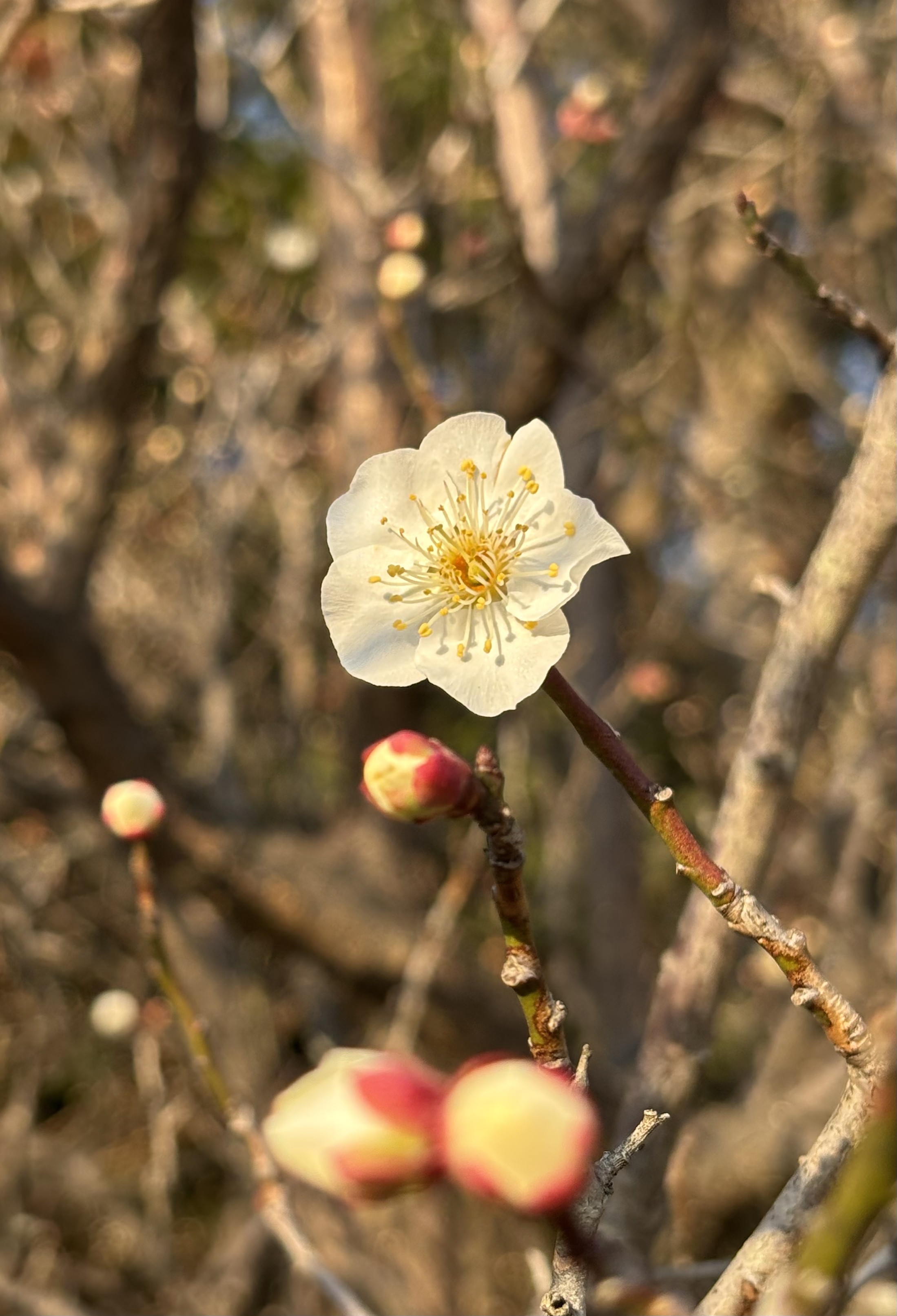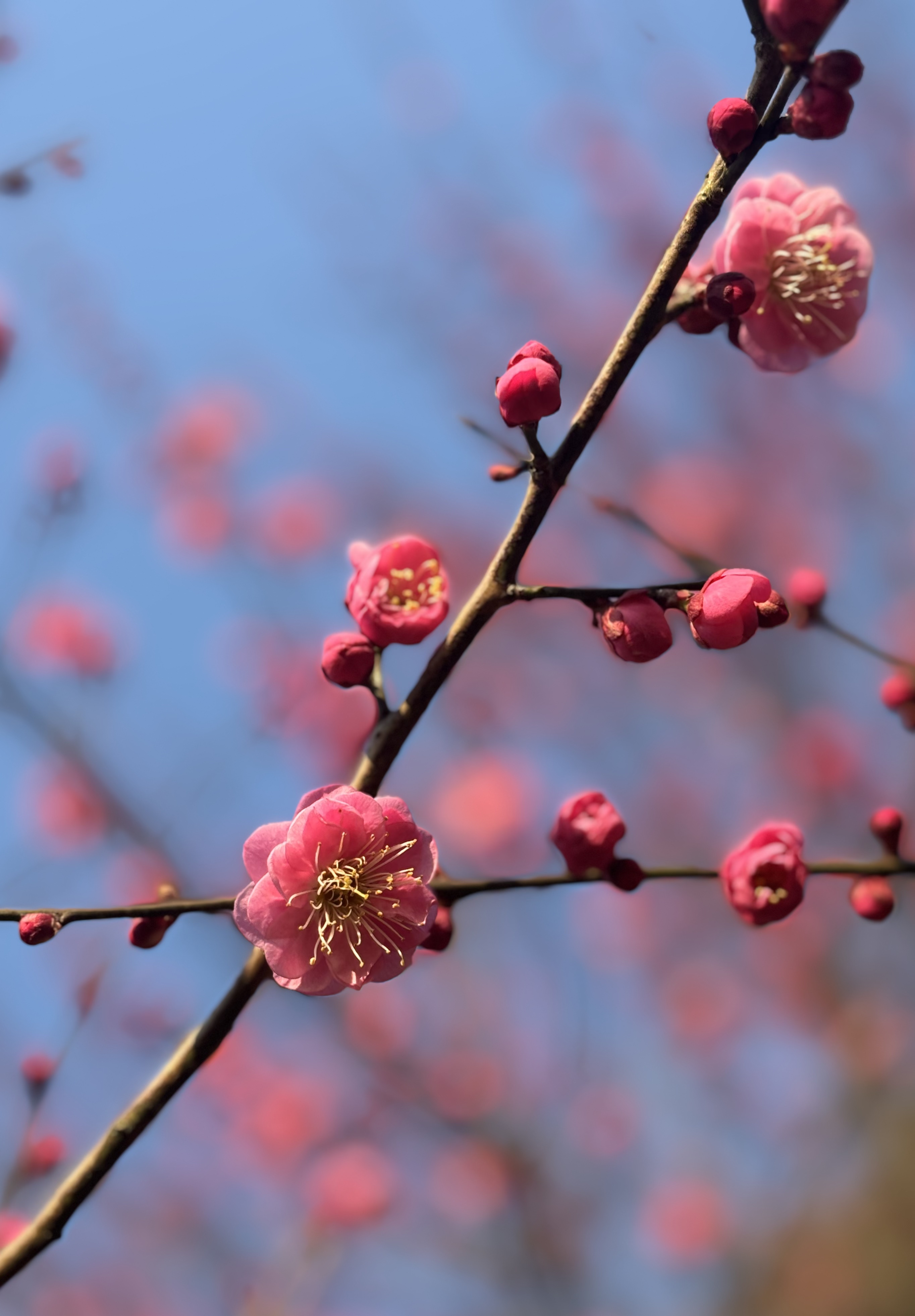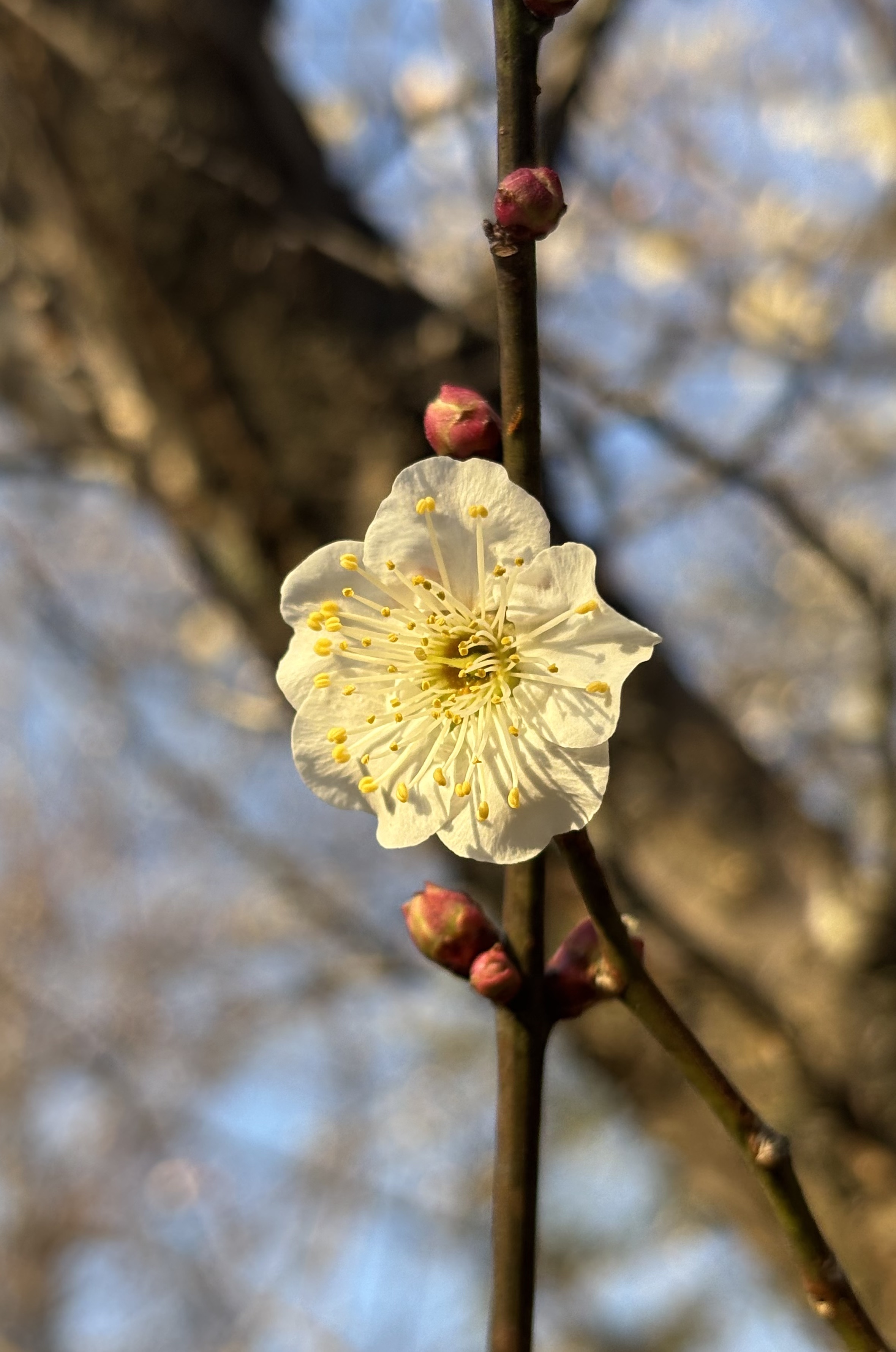 梅花是冬天的光明使者,也是春天的先锋力量。色调乏味的冬天需要梅花的点缀,梅花起承冬寒和春暖,零落成泥后唤醒大地春来。今日下午得闲,来到图书馆做志愿者,完成任务后,赴馆外散步,恰逢阳光灿烂,梅花正盛,一阵狂拍,心情欢喜,春天将来。