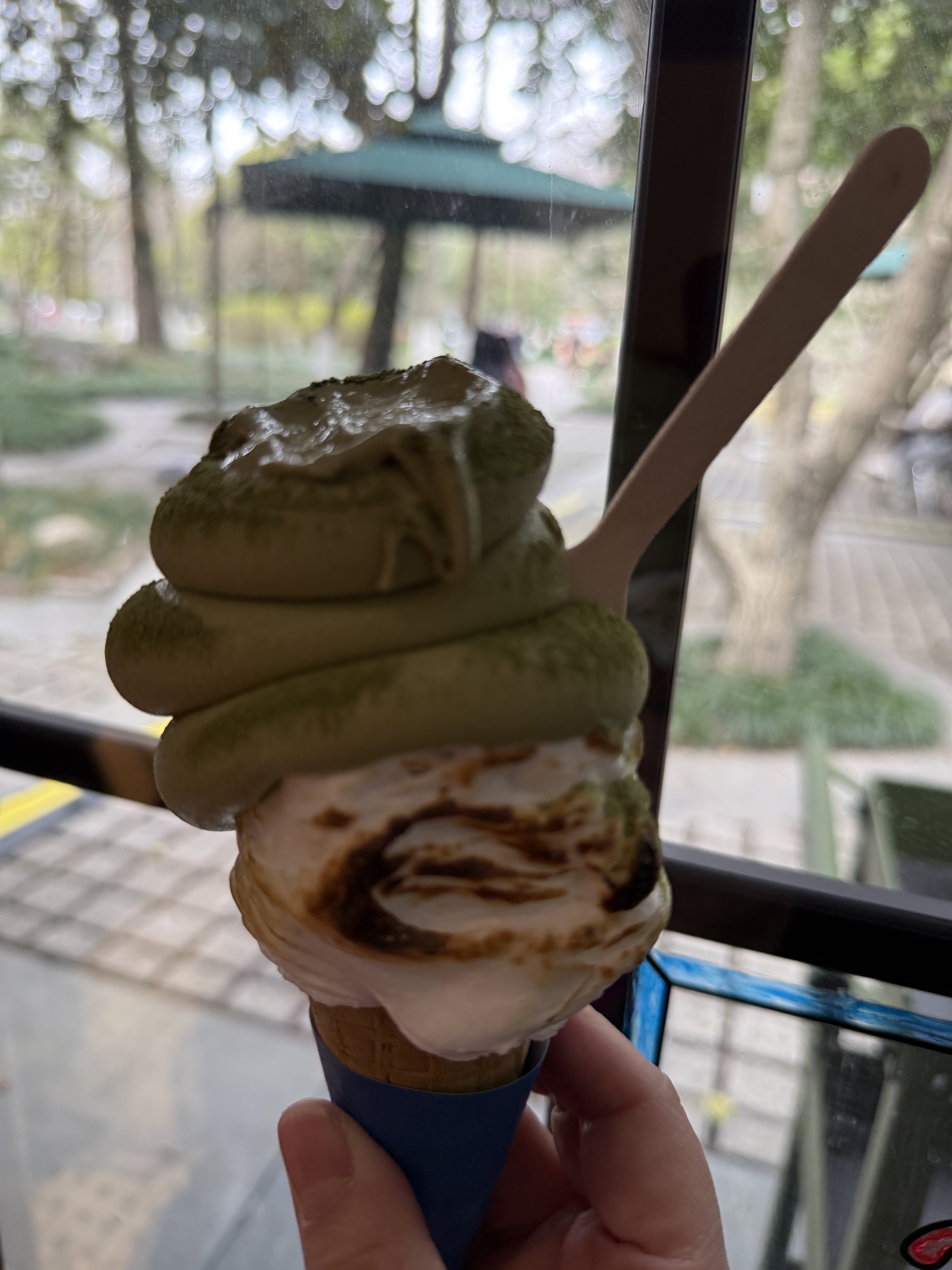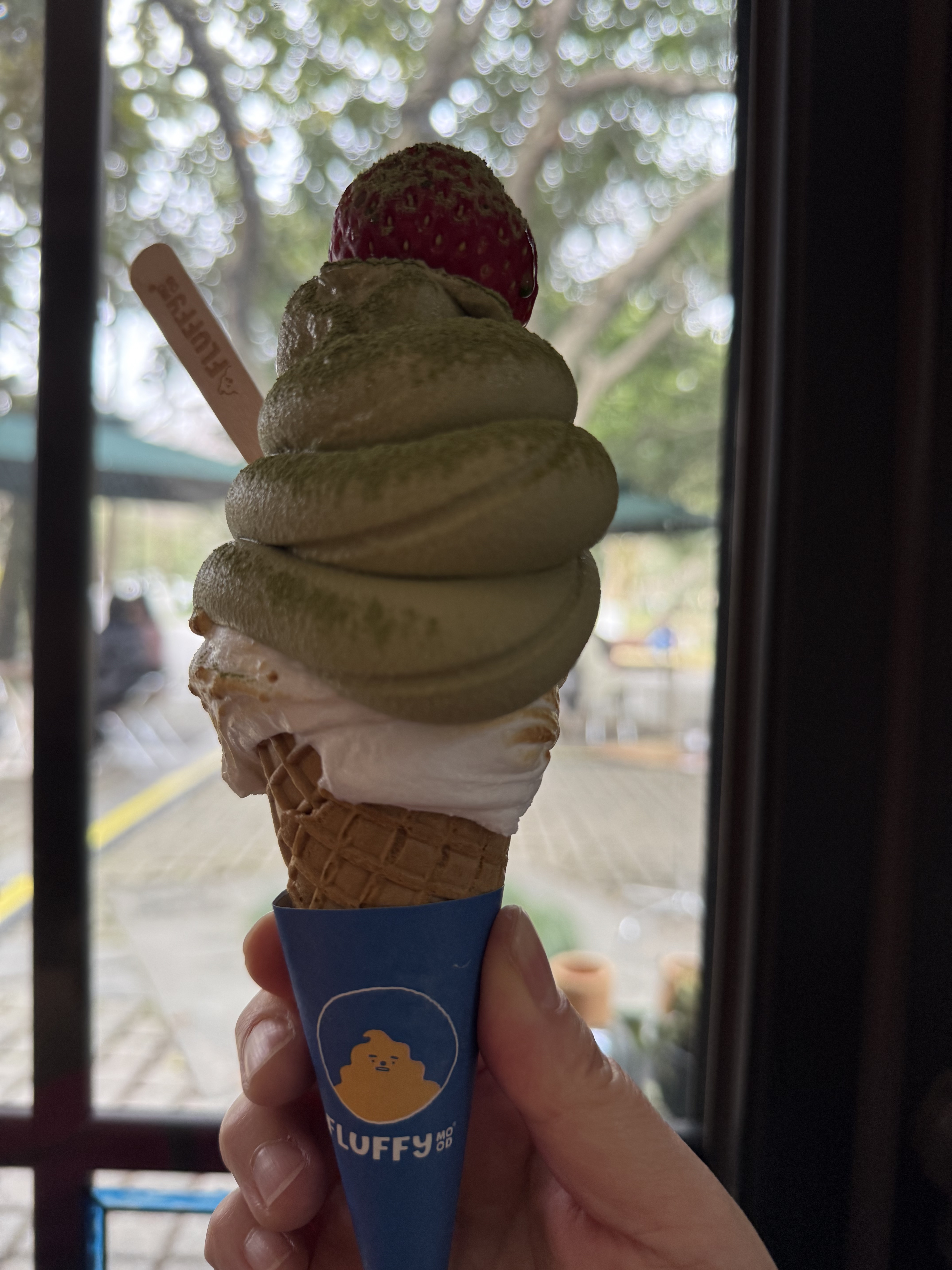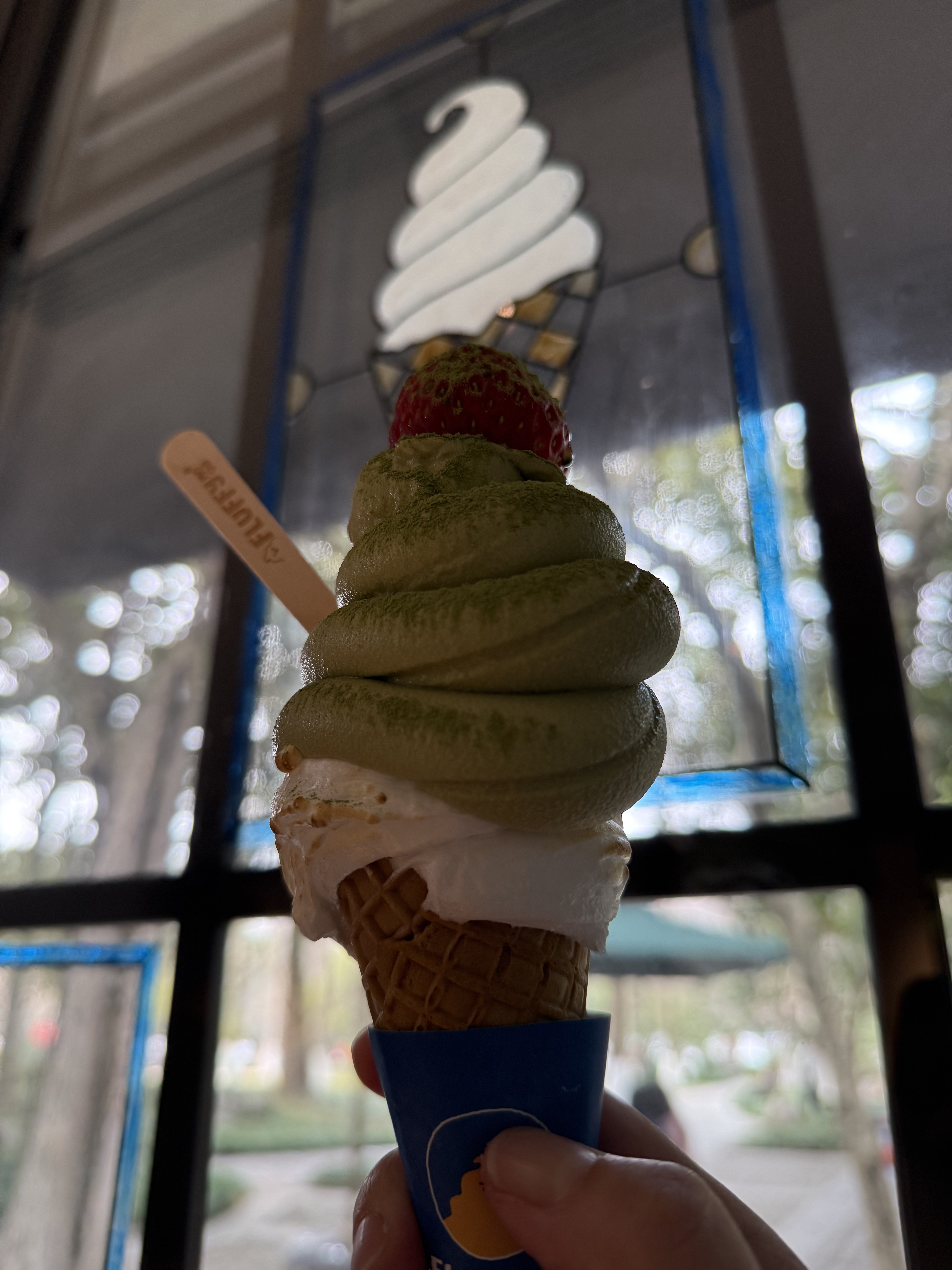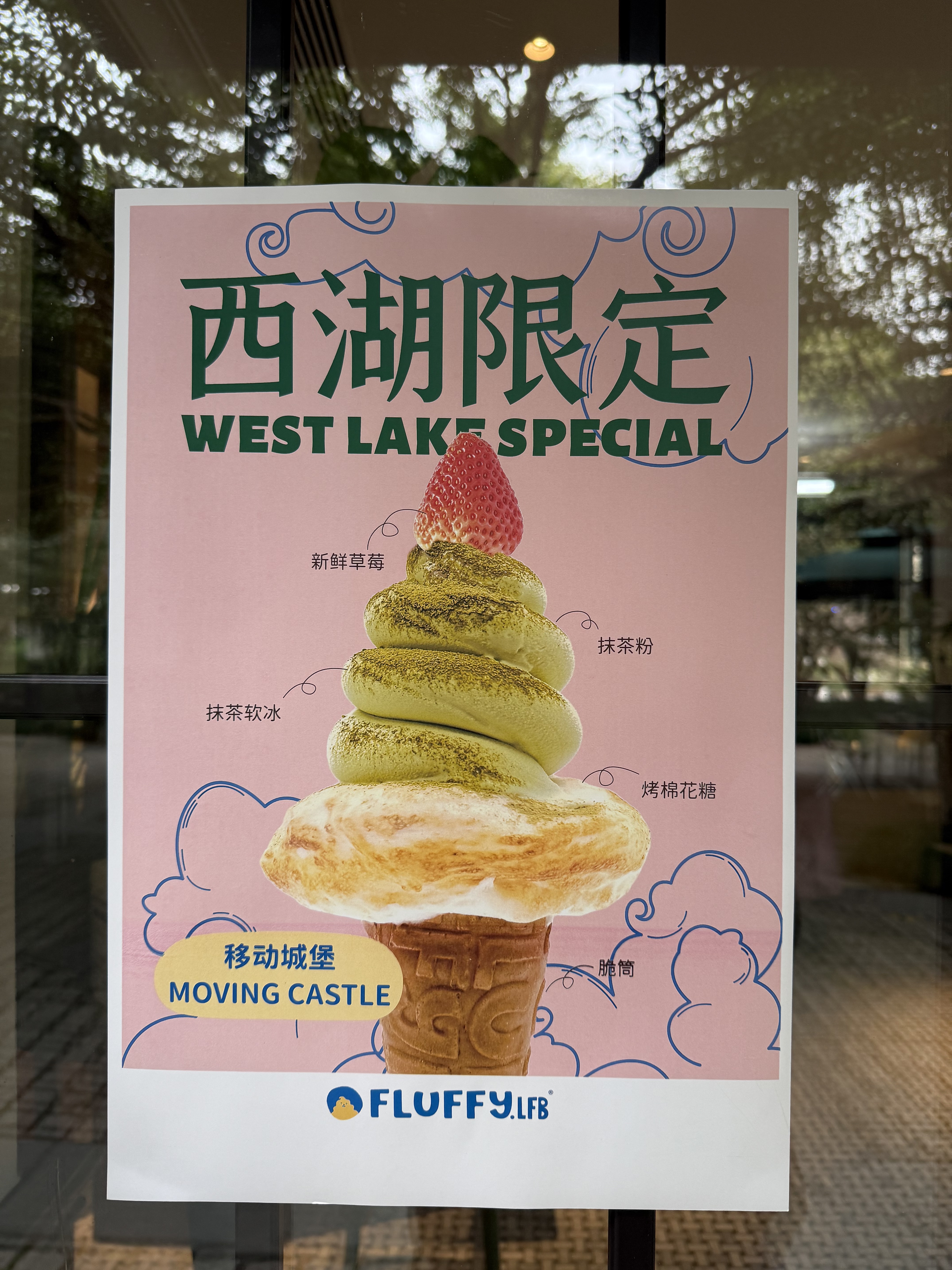 好看又好吃 西湖限定冰淇淋 (移动城堡🏰) 龙井的茶香 融入冰淇淋的丝滑奶香中 有烤棉花糖 一颗大大的丹东草莓 柠檬芝士酱 风味独特