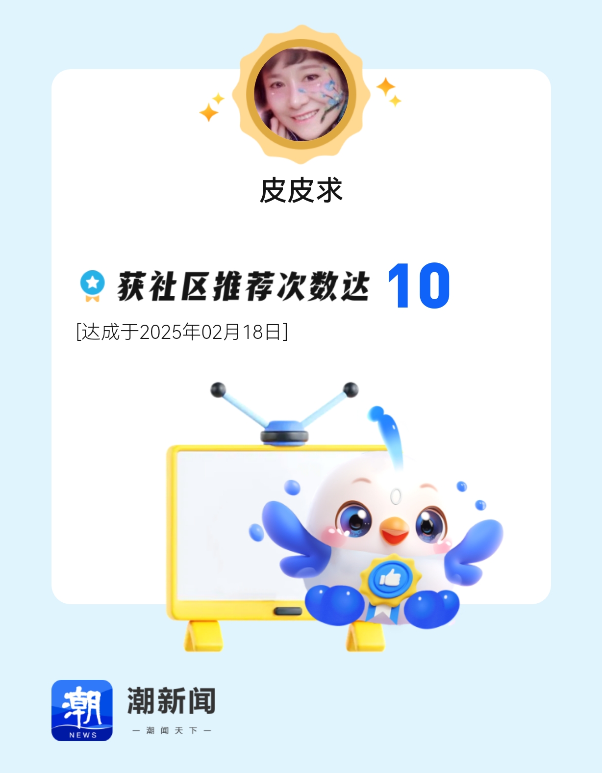 我的作品被潮新闻社区频道累计推荐10次,来我的主页看看吧!