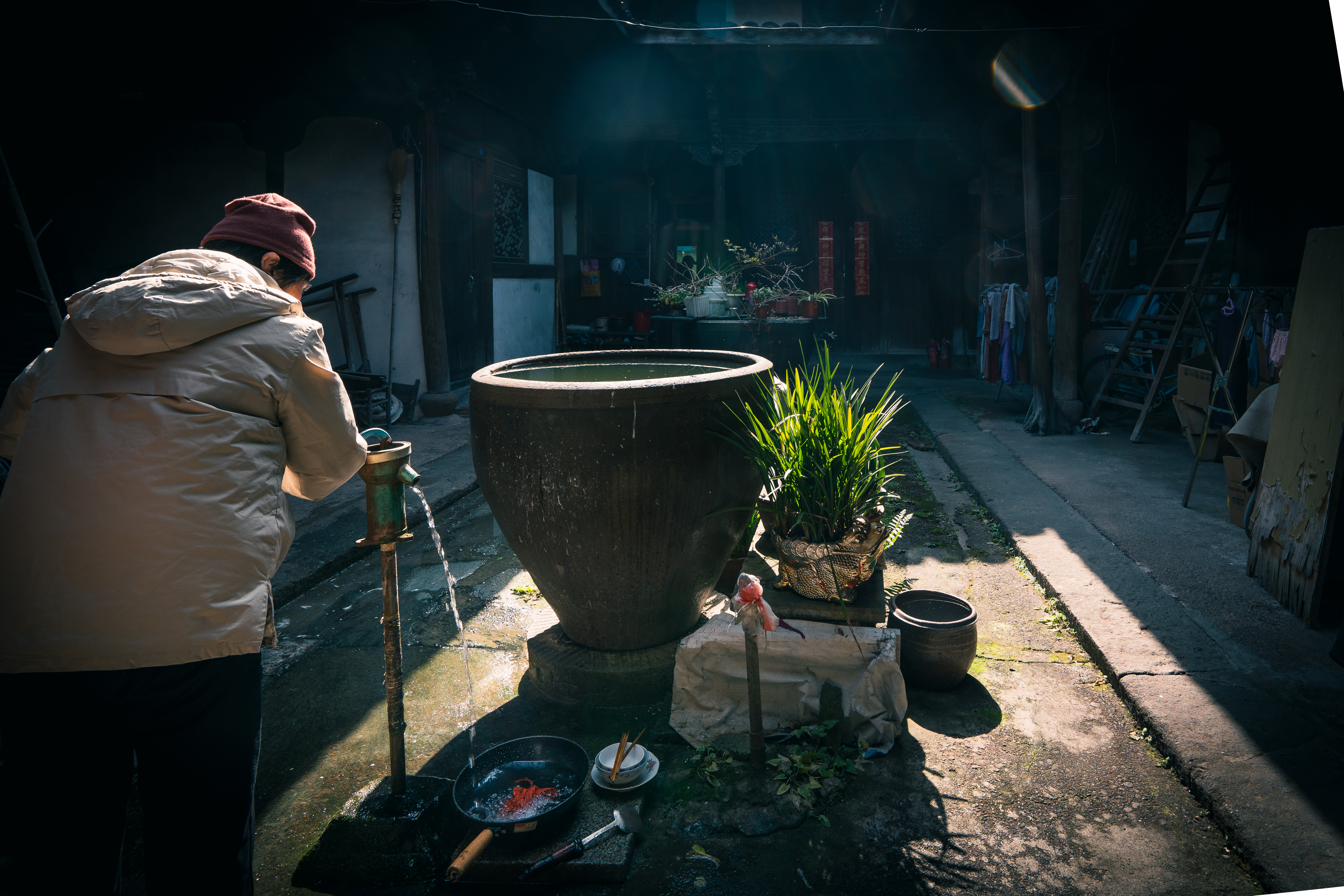 老街旧居 背街的小巷藏着义乌佛堂古镇历史的深邃,至今继续讲述着属于它们的故事。早晨阳光下,庭院显得格外和谐,展现出朴素的乡村氛围。每一处都是人文景观,每一步都是生活印记。锁,静静地守护着主人的居所,斑驳的招牌似乎还等着客人的到来。