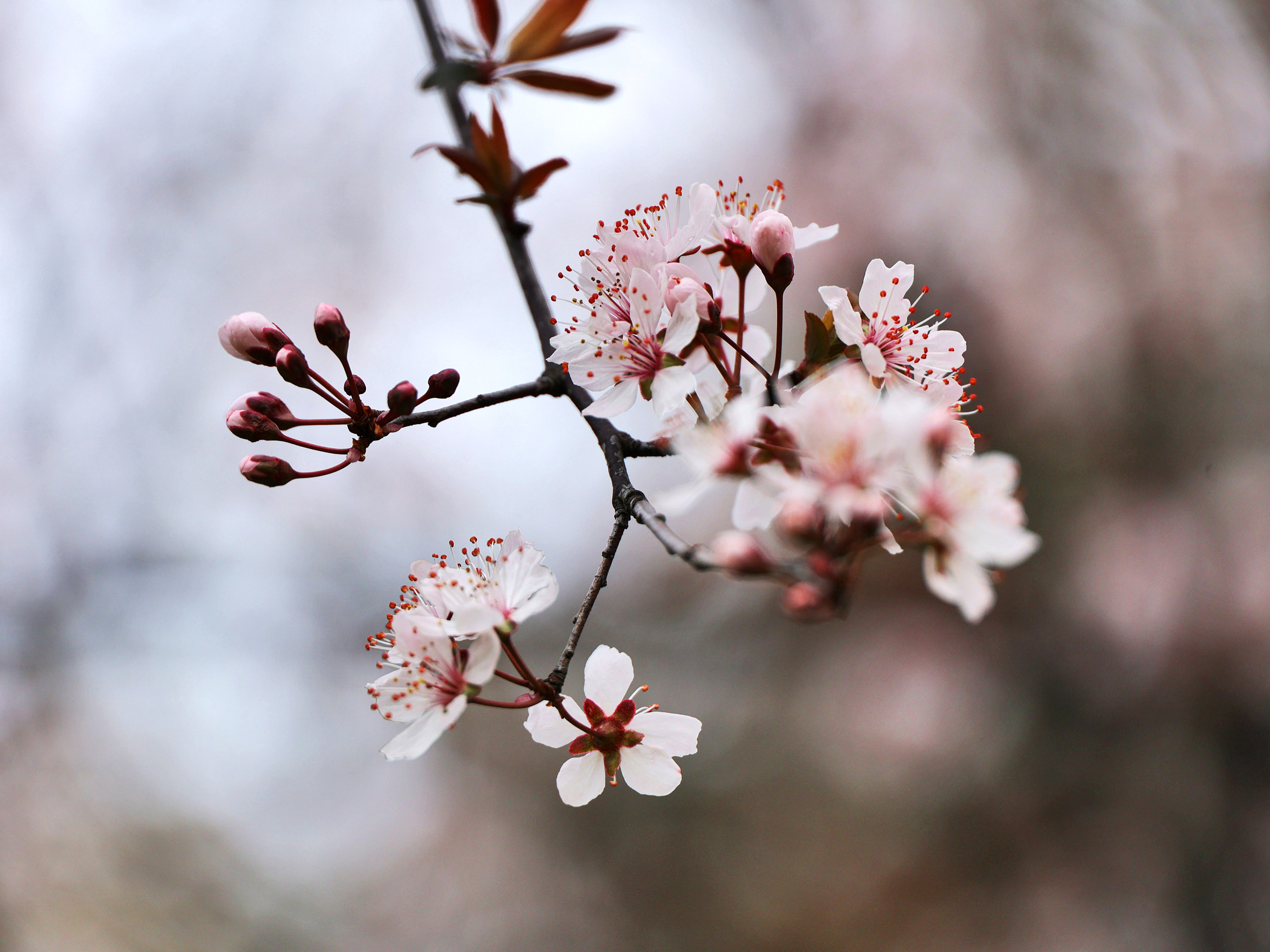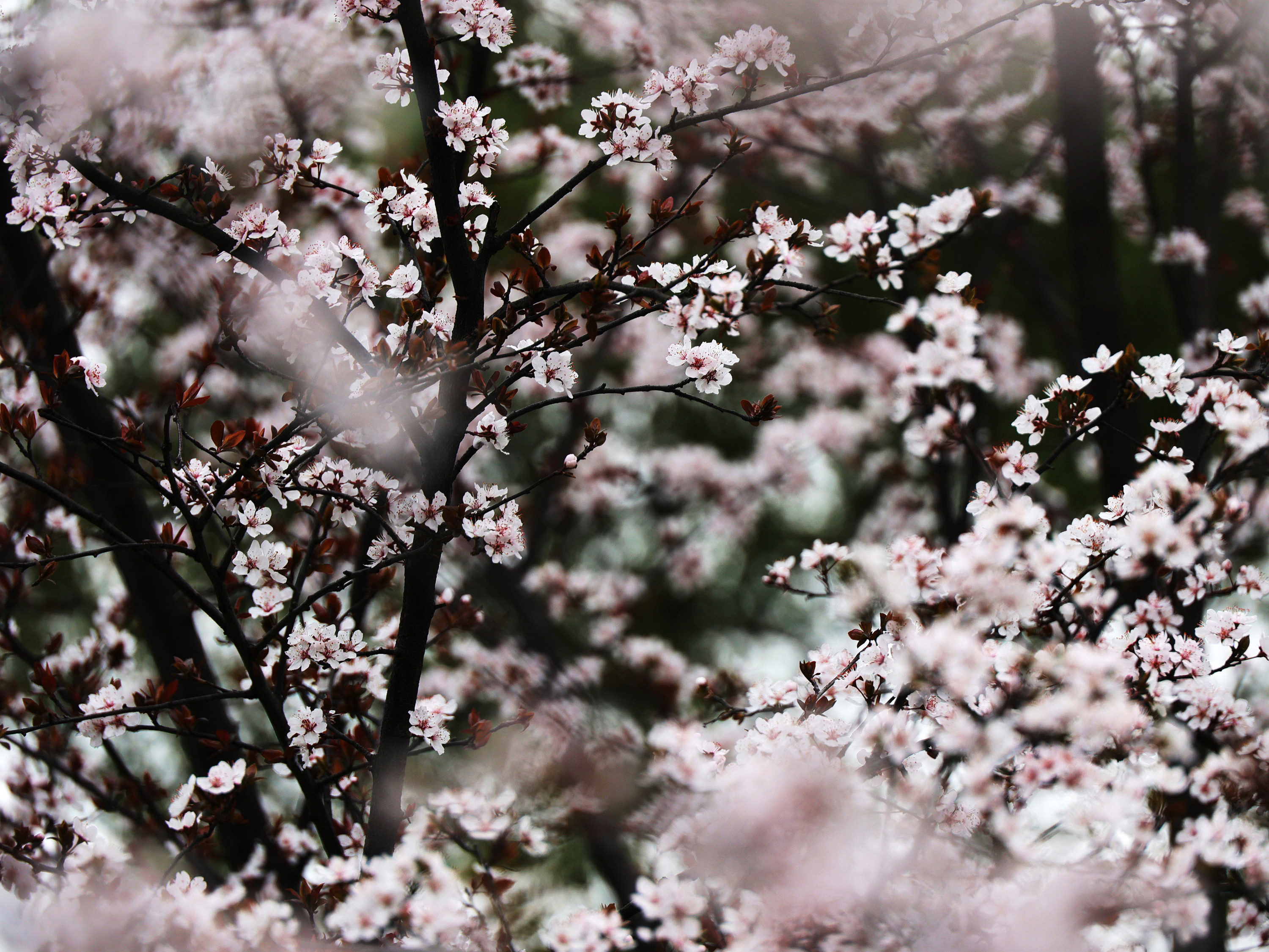 《紫叶李花粉白绽放》走进日湖公园探春,行行摄摄间,镜头里闪入繁花点点,一片雪白。以为樱花开了,快步靠近。原来是紫叶李花正开得热闹,粉白色的花朵点缀在纤弱的枝条和紫色叶子之上,给人温柔的质感,赏心悦目。