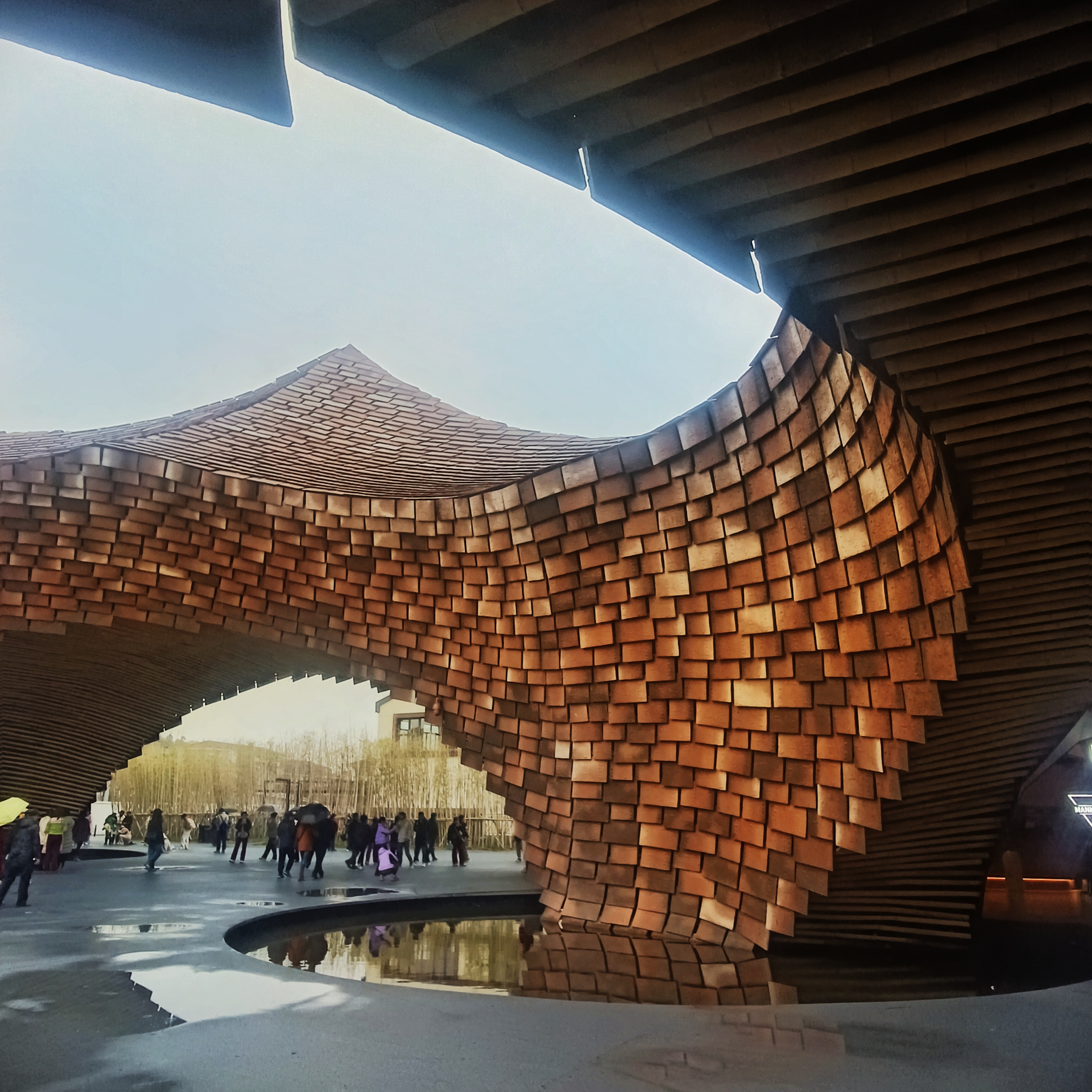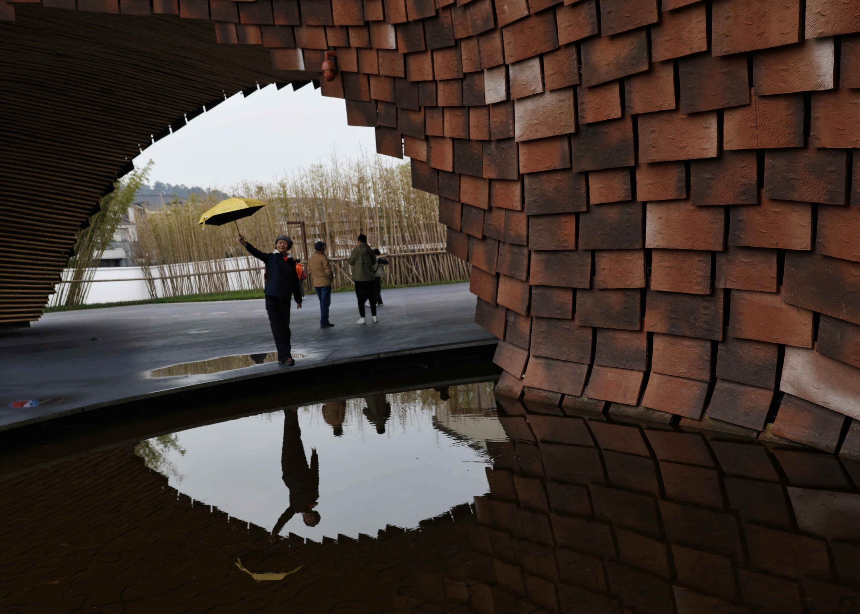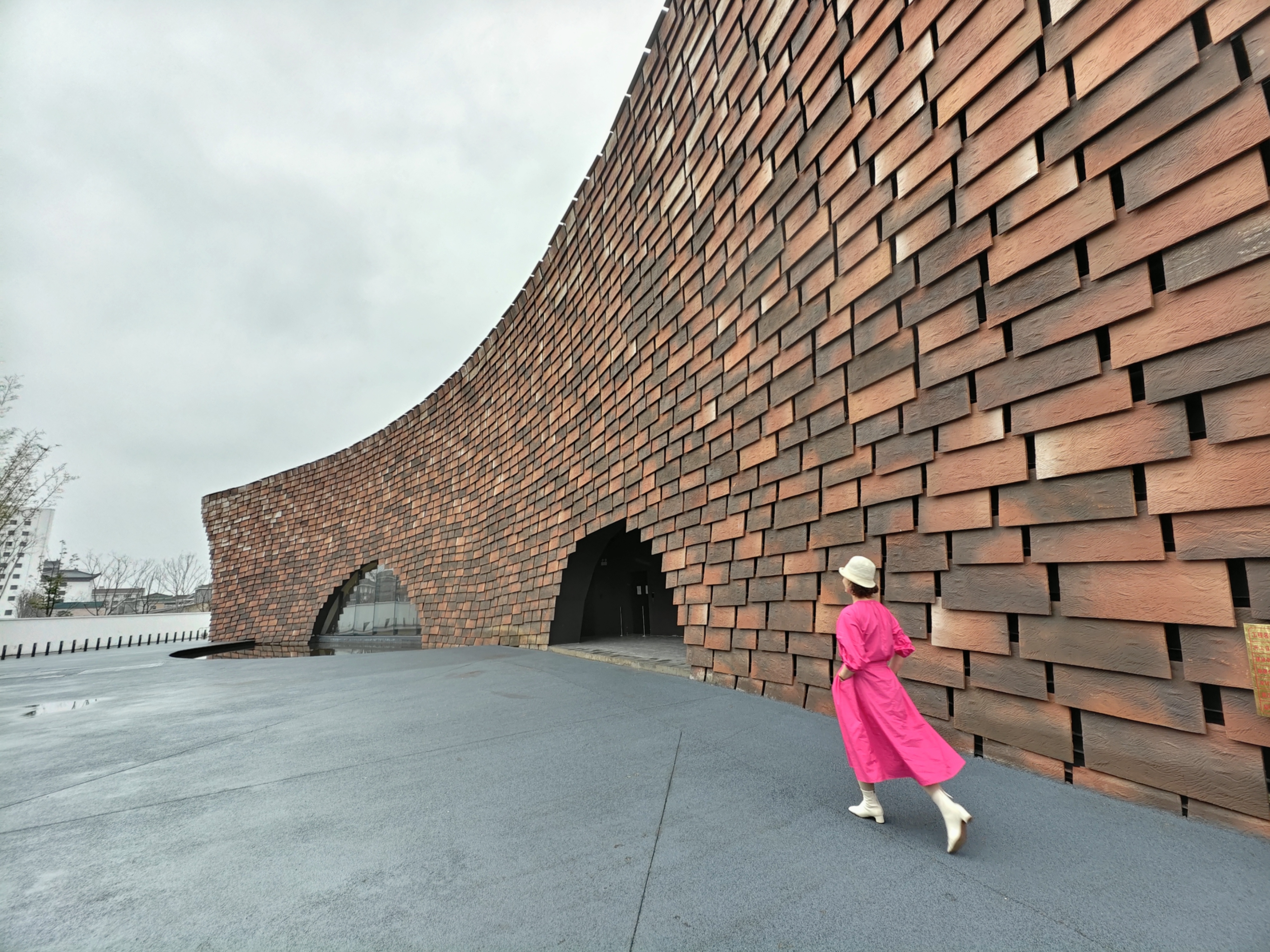 春寒料峭的昨日,在蒙蒙细雨中,与再同游的朋友们一起,坐着包车去了江苏省无锡市宜兴陶二厂与窑湖小镇。宜兴陶二厂是一个在废弃厂址上重新翻建,由日本建筑设计师隈研吾精心设计的巨大建筑,其中也保留了之前少许的建筑。这个巨大的以“陶土元素”为灵感,由曲面墙、光影隧道和陶片装置,与自然相融合的砖红色巨型建筑,真的超好看,在此拍照很出片的。真的挺佩服那些穿着靓丽的裙子,在建筑物前打卡拍照片的女人们,寒风中不会瑟瑟发抖,拍照时摆拍的姿态还挺美的。 宜兴的窑湖小镇也是个宝藏之地,面积有点大,游客中心建的很漂亮,里面的设施齐全还挺现代化的。 只是昨日的天空不作美,一直都下着小雨,撑着伞与朋友们在细雨中漫步,一边走一边拍照,欣赏与记录了烟雨中的江南风景,也挺有趣味的。
