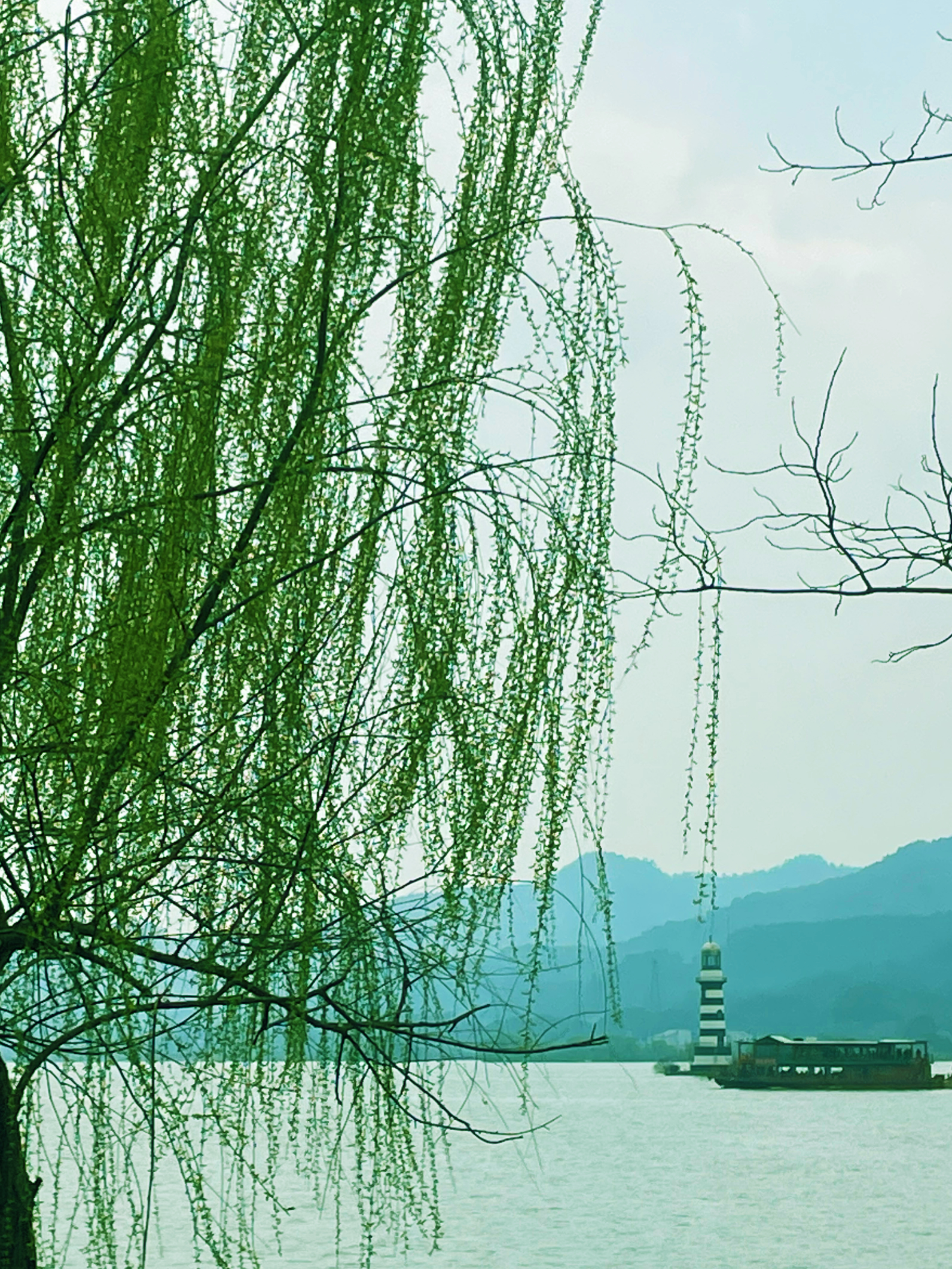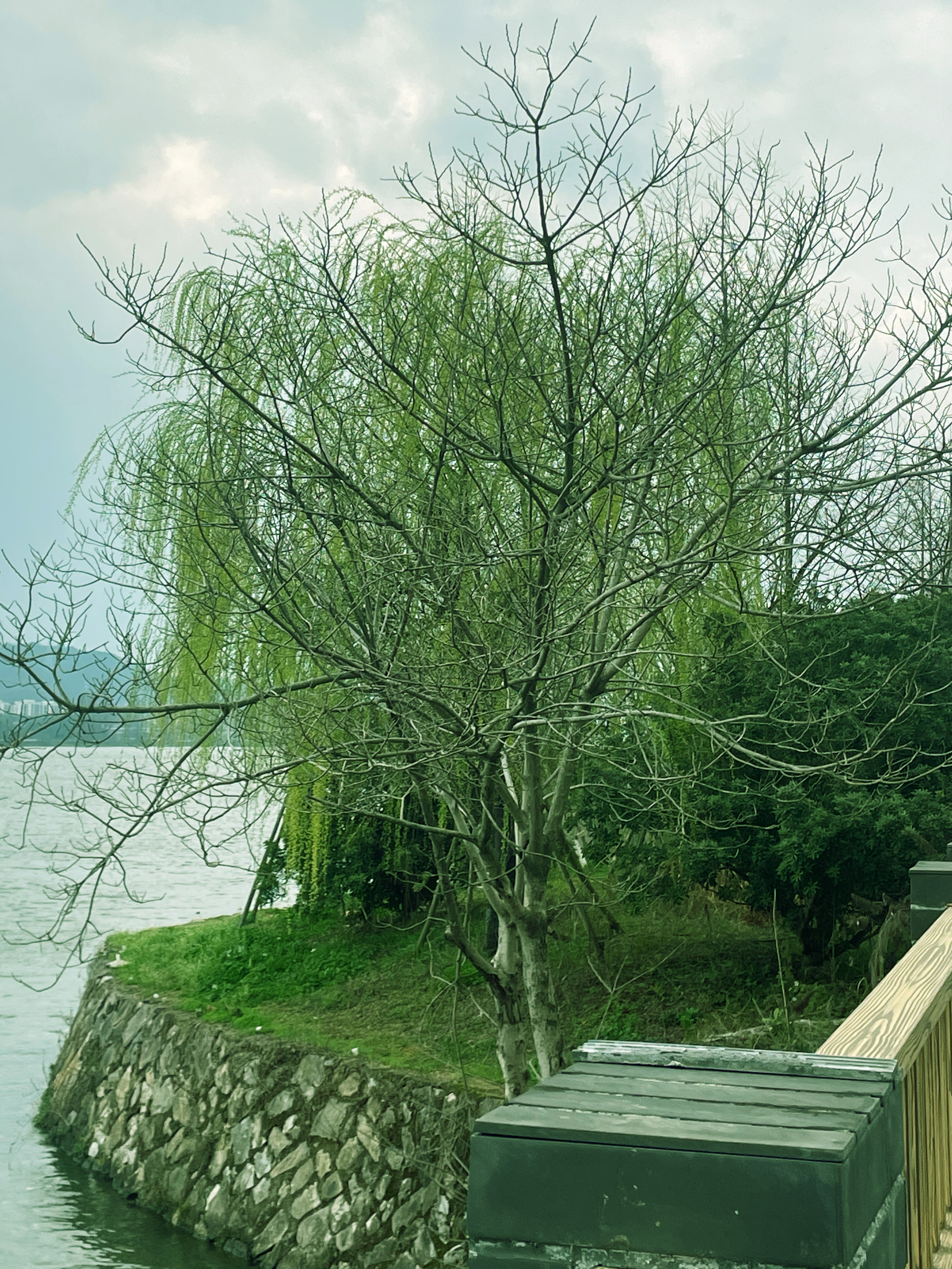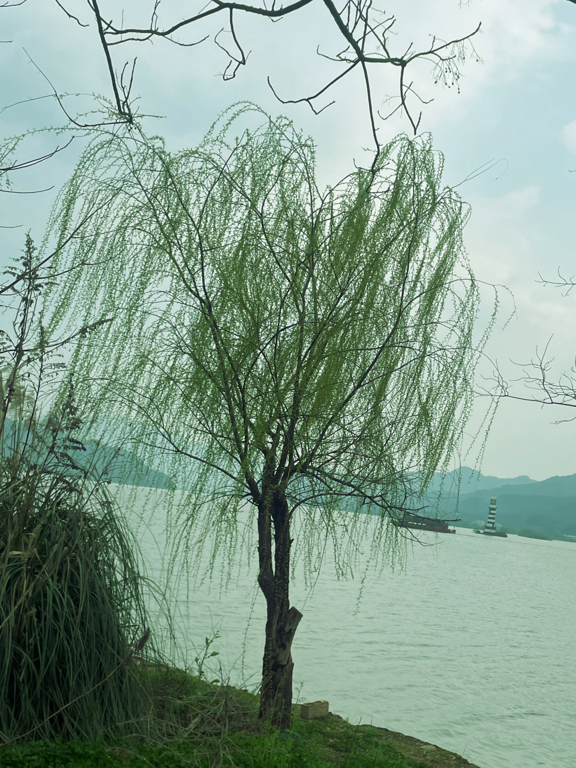 江边杨柳 江边杨柳迎春发,枝叶细柔长如丝, 婀娜多姿随风扭,轻歌曼舞展身姿。