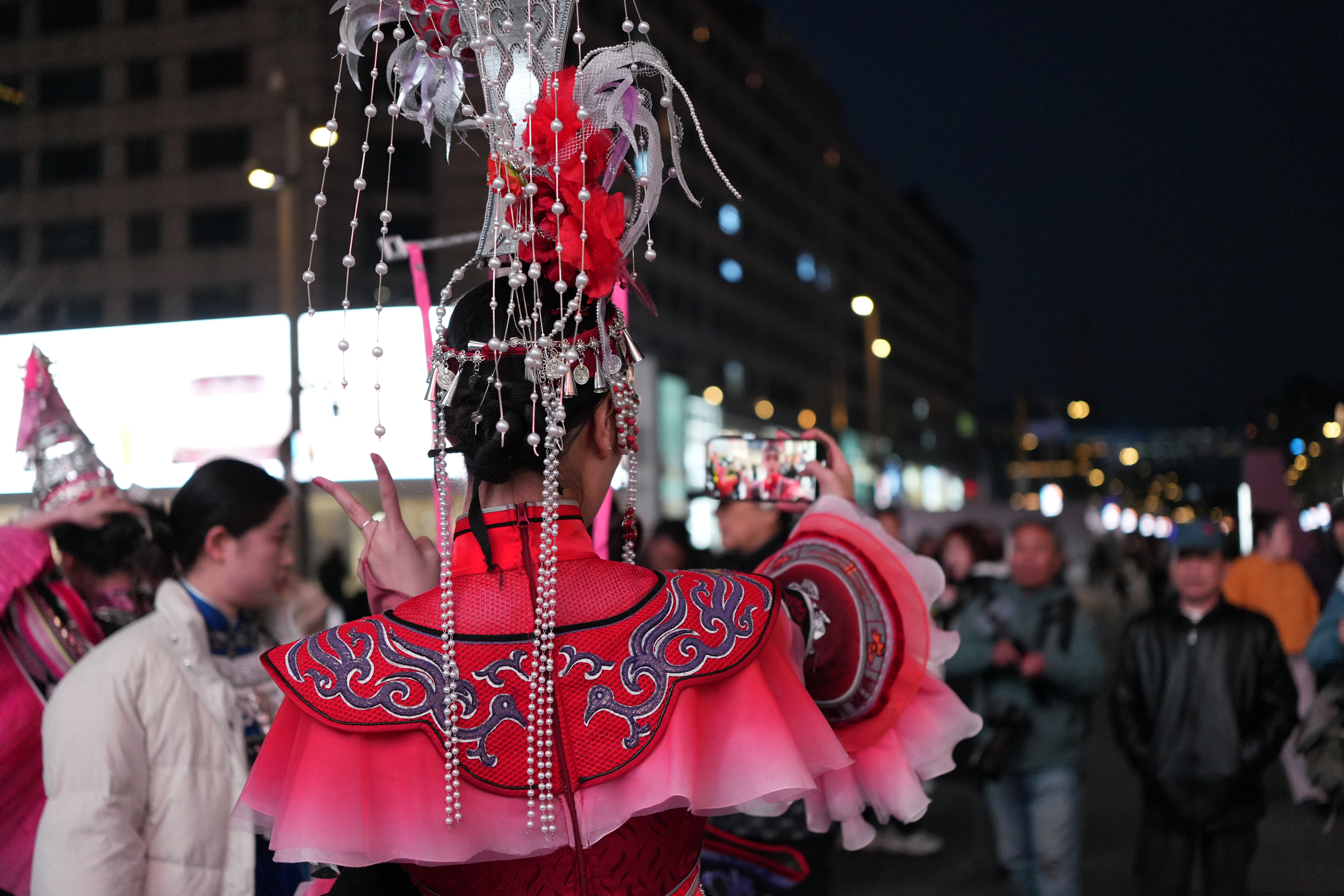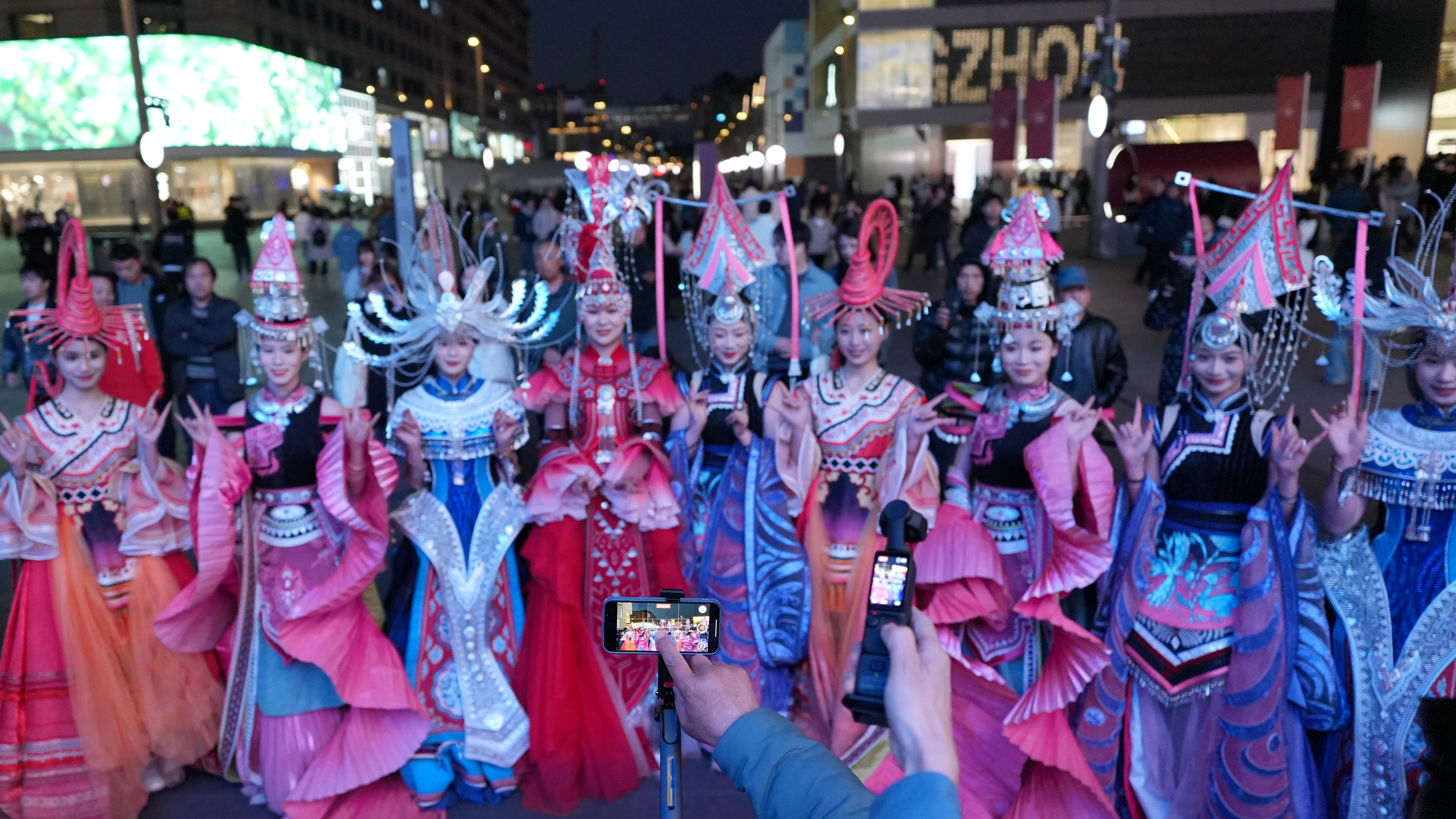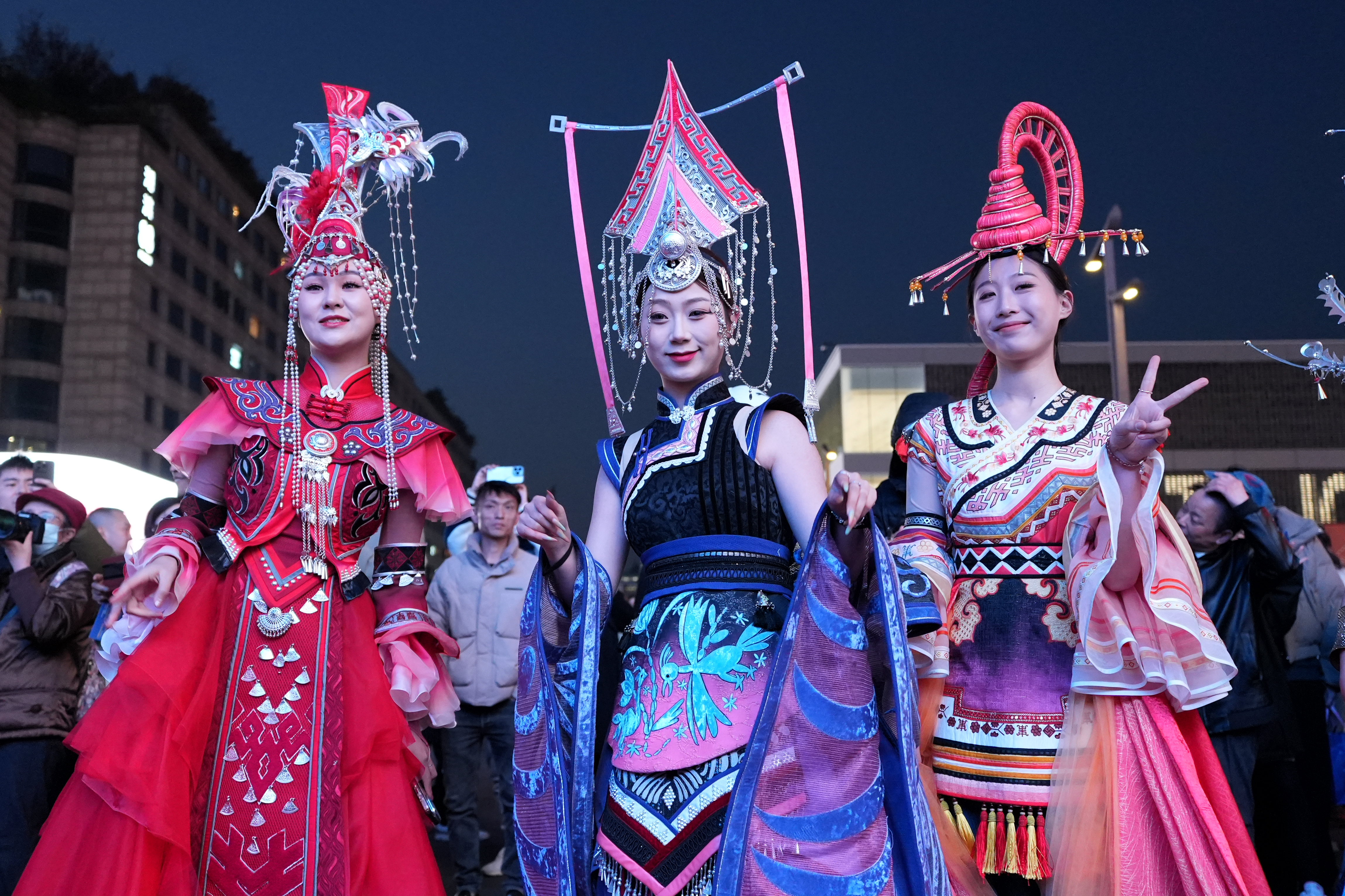 潮起三月三,浙江丽水畲乡景宁 在湖滨步行街,一场畲乡公主盛装快闪秀。