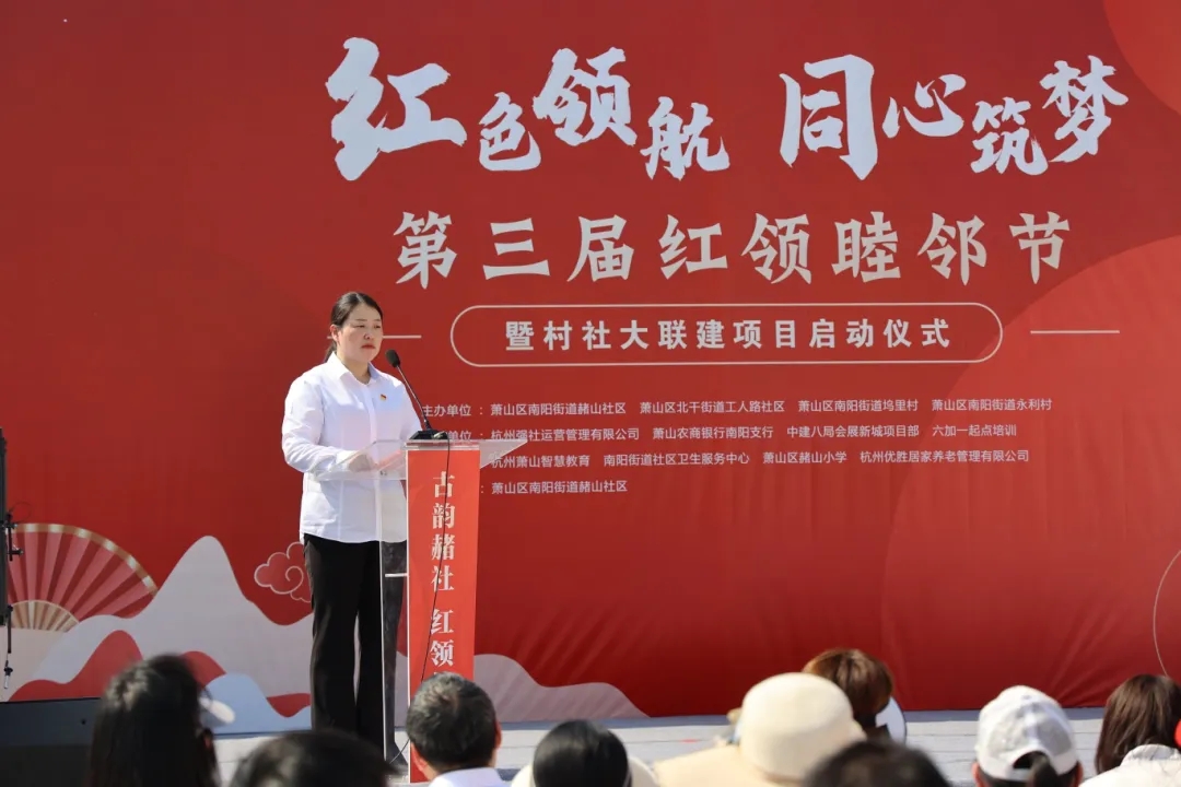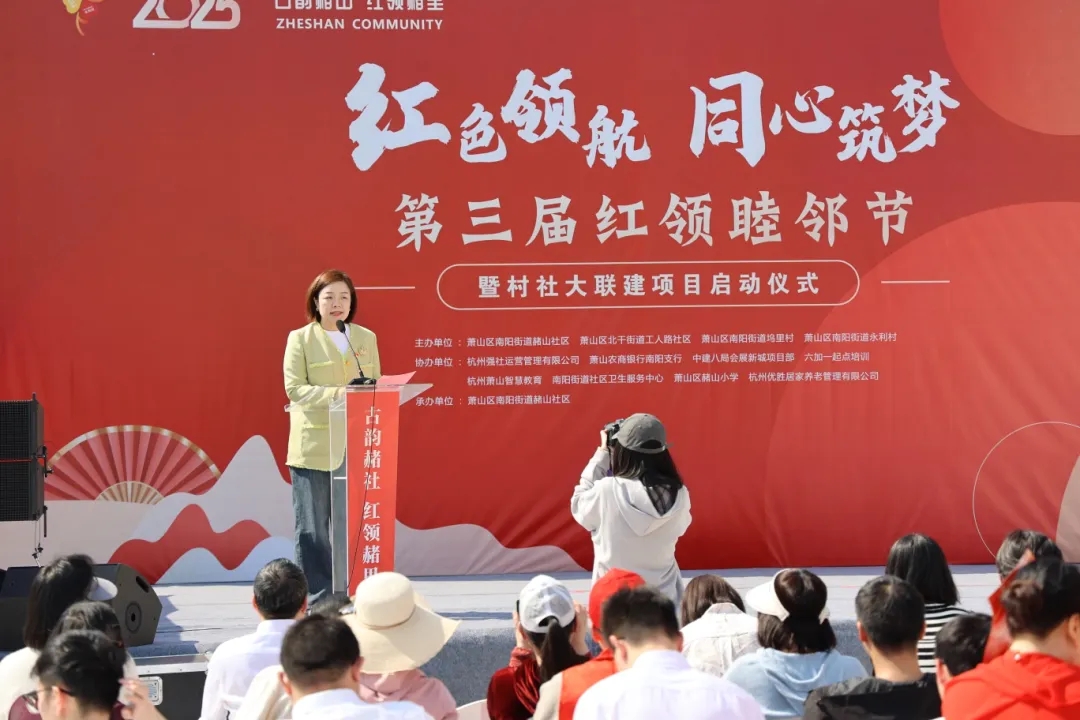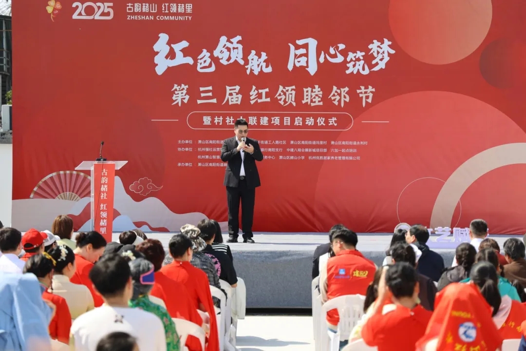 文化特派员视角|南阳街道赭山社区开展第三届红领睦邻节暨“红色领航 同心筑梦”村社大联建活动 为营造文明有礼的居住氛围,进一步推进共建共治共享的治理理念。3月22日,南阳街道赭山社区联合北干街道工人路社区、南阳街道永利村、坞里村在赭山社区党群服务中心广场开展了第三届红领睦邻节暨“红色领航 同心筑梦”村社大联建活动。南阳街道宣传委员杨健儿、组织委员楼春磊,联村干部、社区治理服务中心工作人员,北干街道工人路社区、南阳街道永利村、坞里村、赭山社区全体班子成员参加。 楼春磊代表南阳街道党工委、办事处,为活动的顺利举办送上最热烈的祝贺!他强调,赭山历史悠久,文化底蕴深厚,在会展新城蓬勃发展的时代浪潮中焕发出了新的生机与活力。“红色领航 同心筑梦”村社大联建活动让坞里村、永利村、赭山社区等周边村社形成紧密的合作联盟,凝聚一心,共同发展。他希望各联建单位以此次活动为新起点,充分发挥各自优势,加强沟通协作,实现资源共享、优势互补、共同发展。也希望广大居民朋友们积极参与社区建设,共同营造和谐美好的家园。 杨健儿为永利村、赭山社区、北干街道工人路社区和坞里村颁发“联建契约”。 永利村党委书记冯小飞、赭山社区党总支书记高迪燕、北干街道工人路社区党委书记顾芸、坞里村党总支书记冯乔共同为“红色领航 同心筑梦”大联建项目揭牌。这标志着四个村社正式携手,将在发展理念、治理模式和社会服务等方面深度融合,共同探索创新基层治理的新路径,为乡村振兴注入强大动力。 工人路社区书记顾芸介绍本次村社大联建活动情况。 赭山社区党总支书记高迪燕宣读《村社大联建章程》。 本次活动还精心策划了文艺演出环节,为活动增添了浓厚的文化氛围与独特魅力。 参加联建活动的各个村社都充分发挥自身的文化特色与创意,精心打造了独具匠心的节目,充分展现了当地的文化底蕴、民俗风情以及居民们的才艺风采。 这些节目形式多样,涵盖了歌舞、戏曲、小品等多种艺术形式,为现场观众带来了一场文化盛宴。 小北市集由北干街道工人路社区协同杭州强社运营管理有限公司一起开展,汇聚了经典小吃和地方特产摊位,从水果零食到时尚饰品,从儿童玩具到创意文具,应有尽有,琳琅满目的商品满足了群众的多样需求。 在社区的广场上还设置了便民服务摊位。中建八局电器维修摊位、赭山小学义卖摊位、免费理发护眼摊位等让居民们在家门口就能享受到贴心的便民服务。 同时,赭山社区还设置了移风易俗、垃圾分类、五水共治、扫黄打非、平安宣传等公益宣传摊位,吸引了不少周边群众参与,通过摊位签到打卡,还可免费兑换关东煮。 赭山社区自2023年精心打造“赭里红”品牌以来,始终以构建温暖共同体为目标,着力推进新型“熟人社区”建设。在过去的两年里,社区成功举办了两届红领睦邻节,每一届都吸引了众多居民的积极参与,使"推开单元门就是自家人"的社区文化蔚然成风。 今年,第三届红领睦邻节在前两届的基础上,迎来了新的发展和突破,新加入了北干街道工人路社区、南阳街道永利村、坞里村。他们和赭山社区一起,组成了本次活动的四家联建单位。在筹备过程中,四家联建单位紧密协作,共同商讨活动方案,整合各方资源,力求为居民们带来一场更加精彩、更有意义的睦邻节,进一步扩大“熟人社会”建设半径。 未来,南阳街道将继续发挥核心引领作用,携手各联建单位以及社会各界力量,不断深化“赭里红”品牌建设,持续推动“熟人社会”建设向纵深发展。以此次活动为新的起点,进一步拓展“熟人社会”建设的广度与深度,让“推开单元门就是自家人”的理念深入人心。