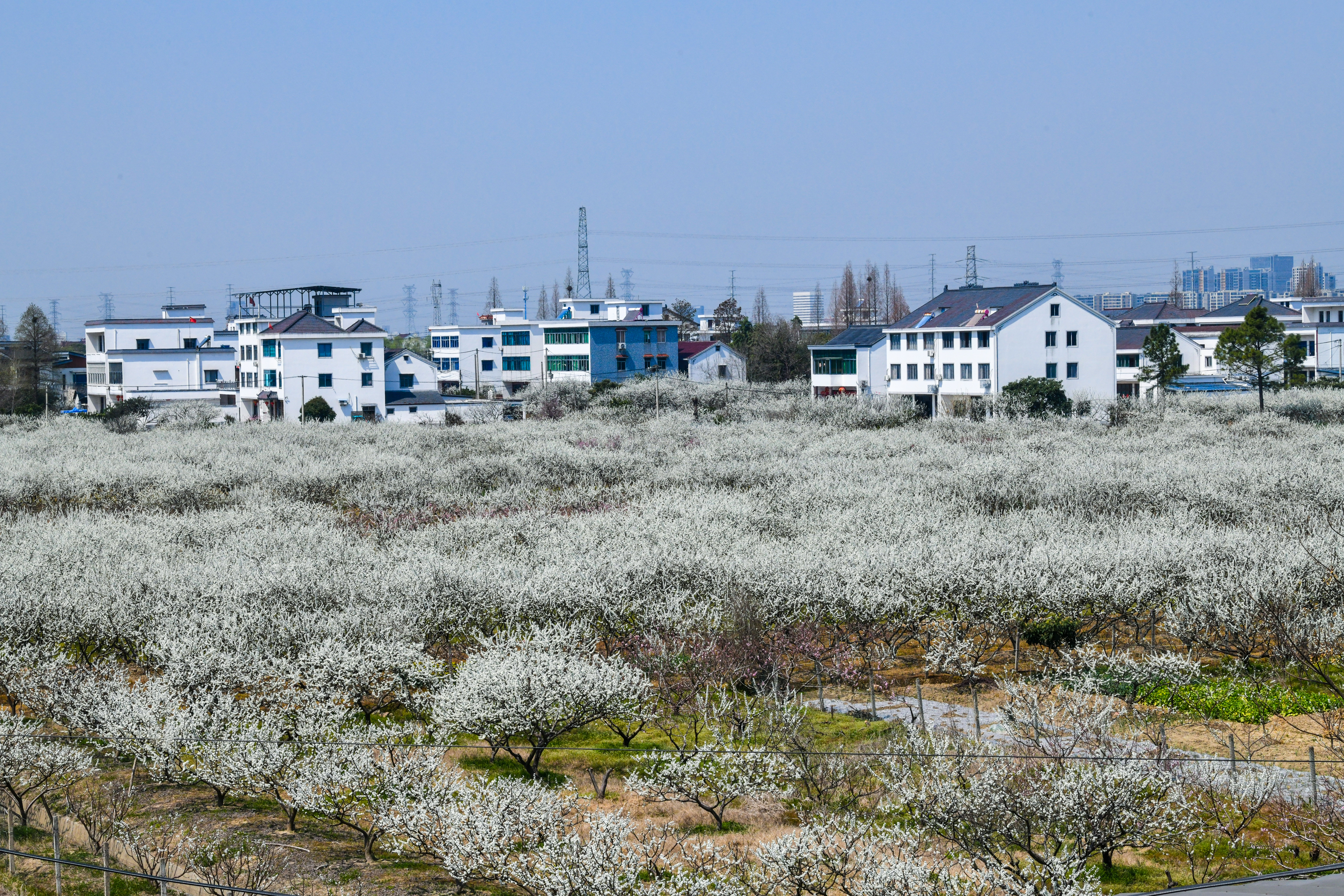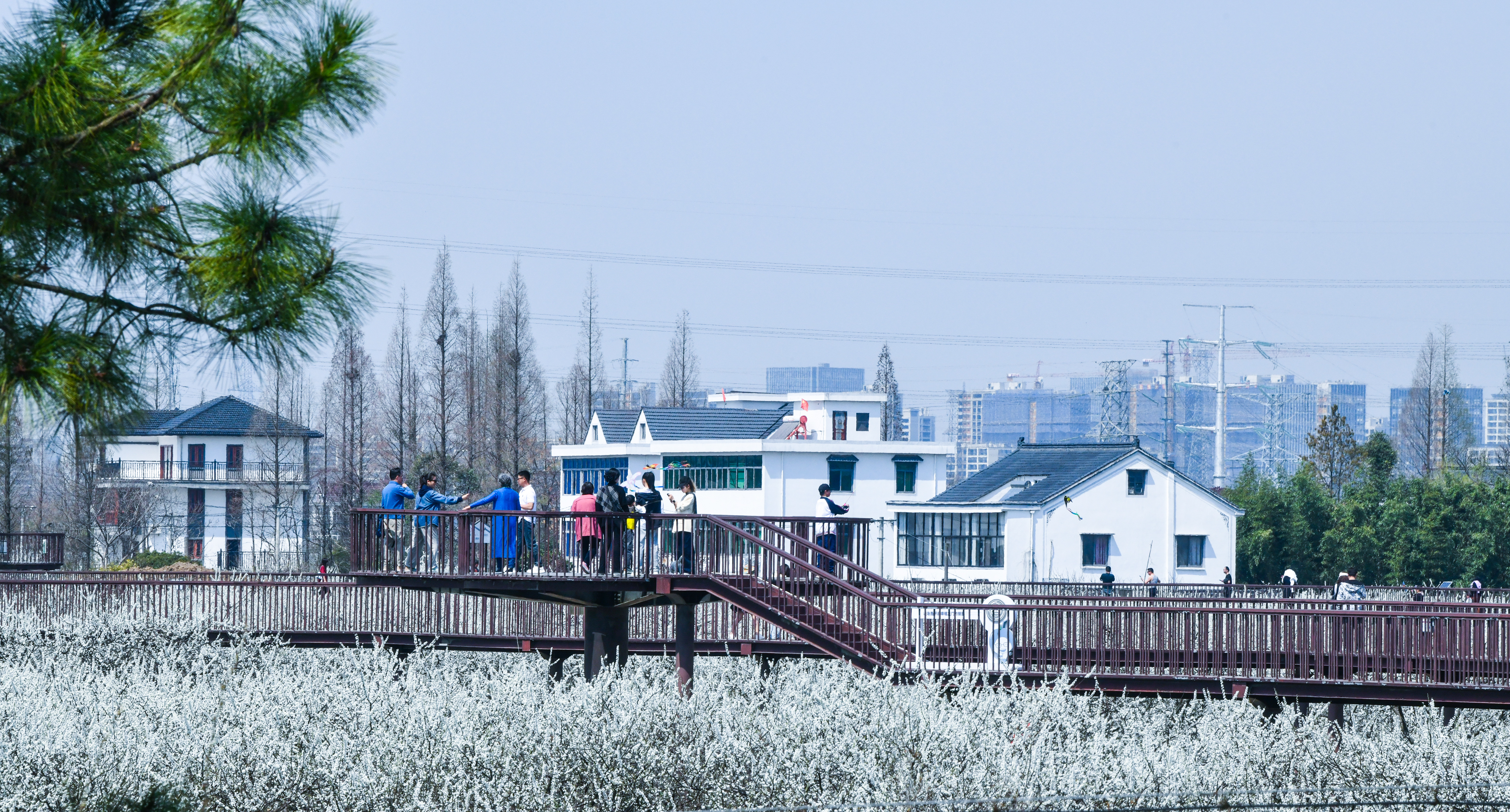 3月22日,阳春三月,天气晴好。桐乡市桃园村千亩槜李花竞相绽放,如雪似霞,绵延成海,蔚为壮观。作为当地特色农业景观,槜李花以其素雅清丽的花姿和沁人心脾的芬芳,吸引大批游客前来踏春赏