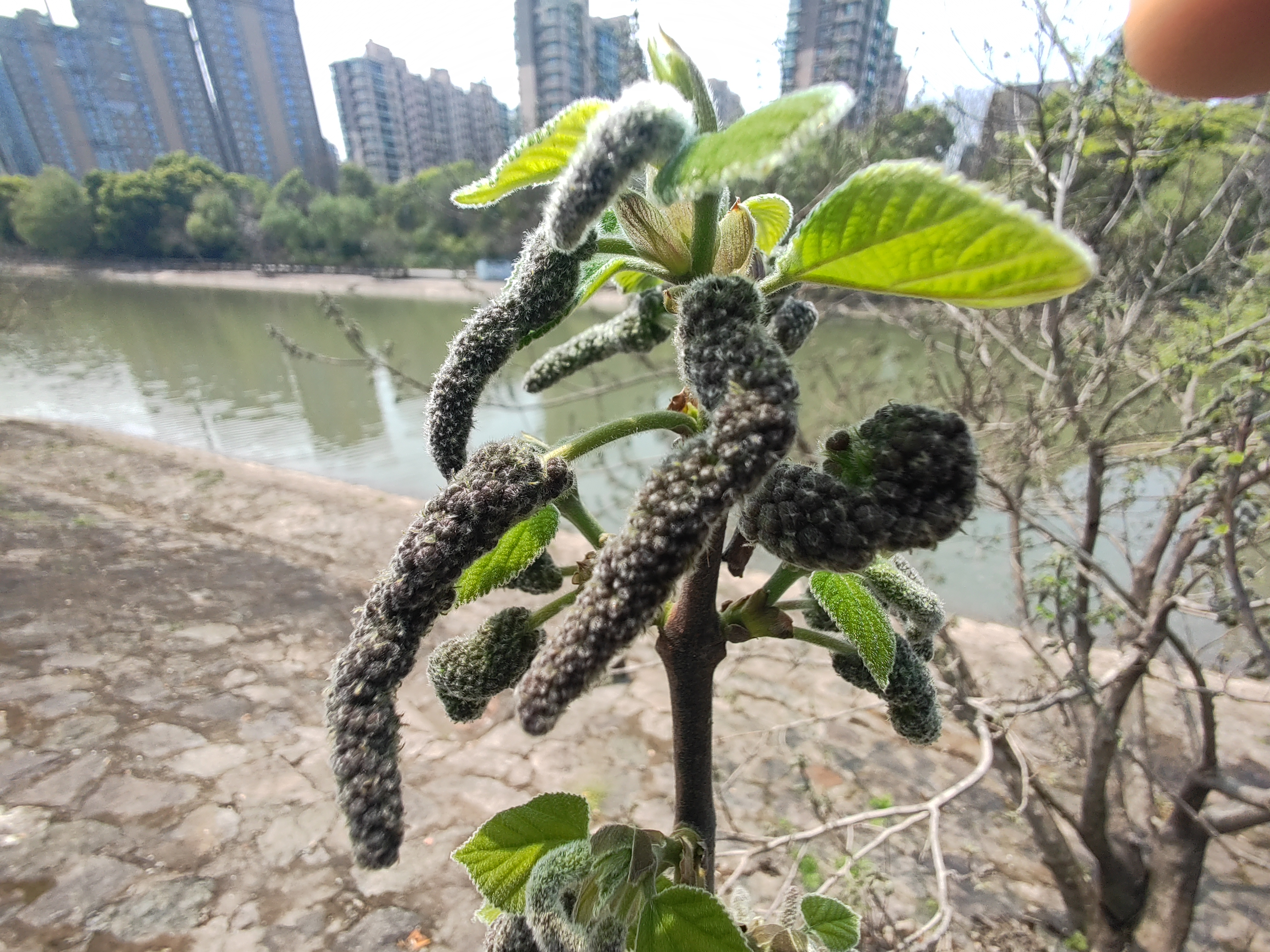 值。这种神奇的植物果实,暗绿色的雄性花序,可食用,可蒸可炒,回味无穷。 我想这枸树是最没用的树,在运河边被砌进石缝,后又因为太大,挡住了人行道,结果又遭砍了,但有一棵尽管弯弯的,象匍匐在地,但还是强劲地活着,仿佛在说“尽管命运坎坷,但也要低头活着,活着总有一天会被派上用场。”这不,现在终于可以为人类服务了! (图片摄于今日上午)