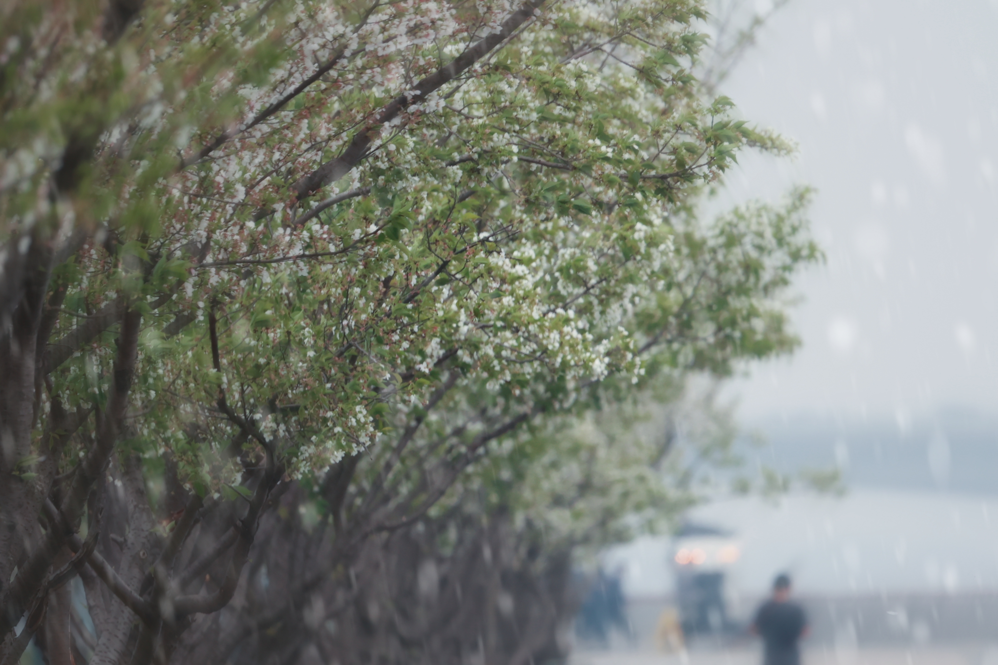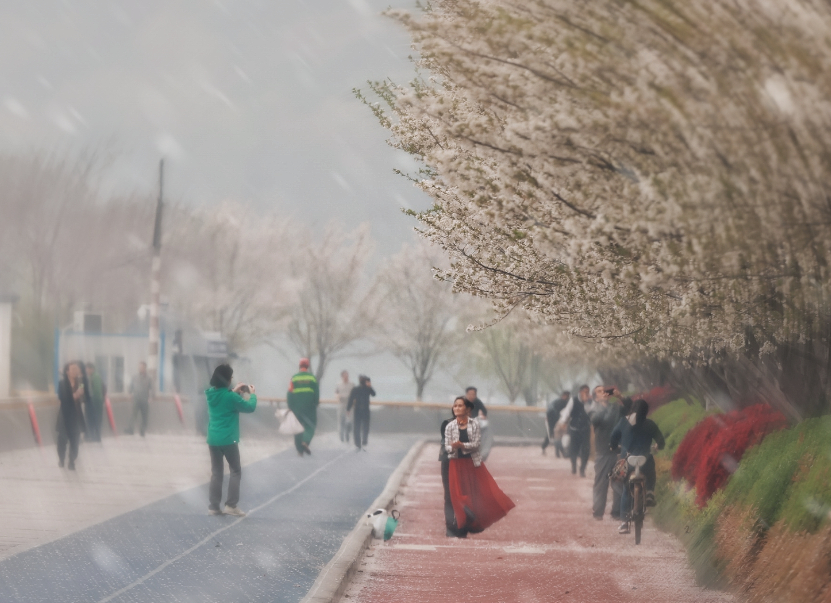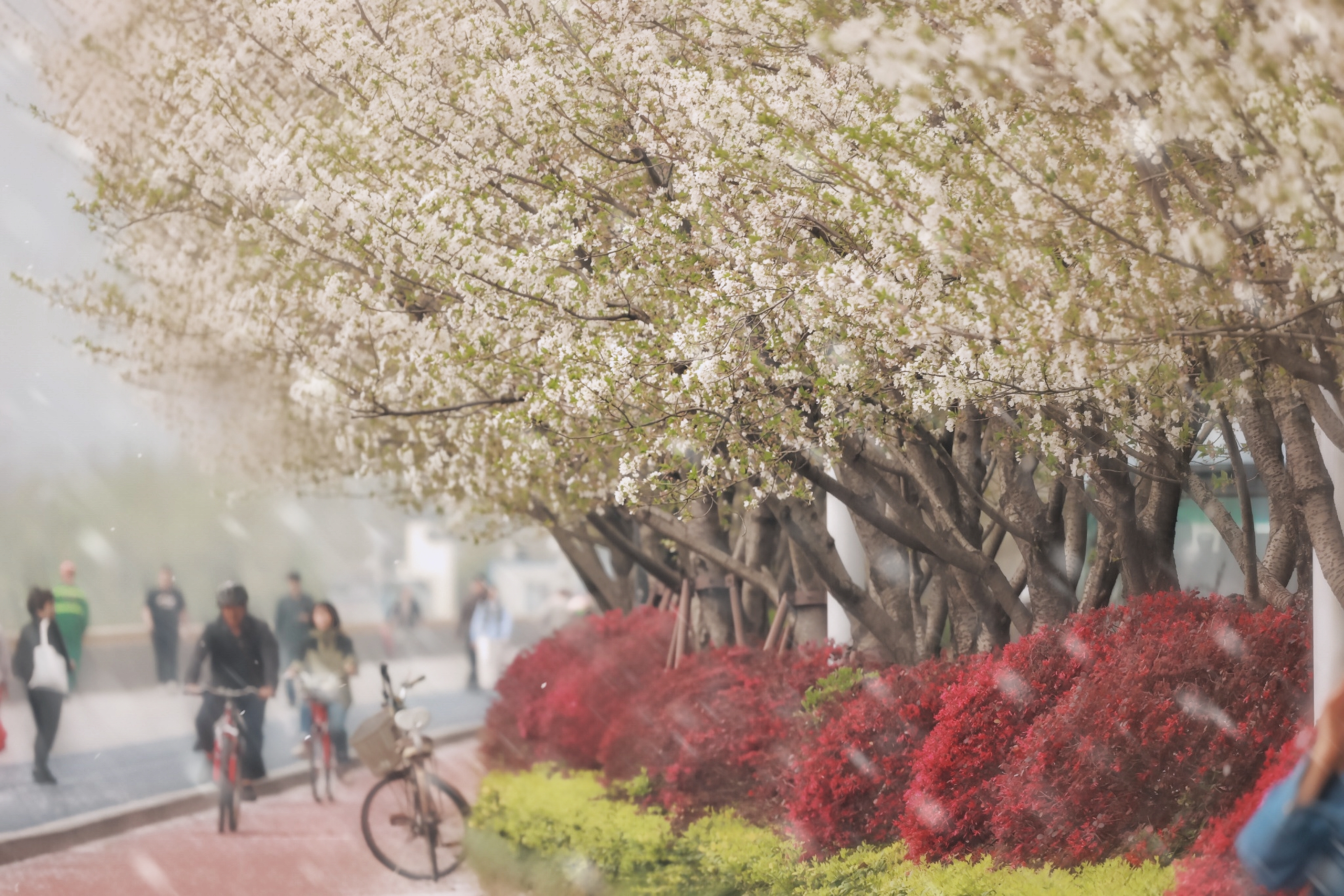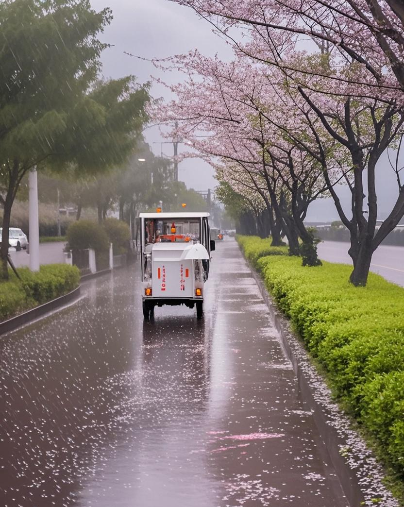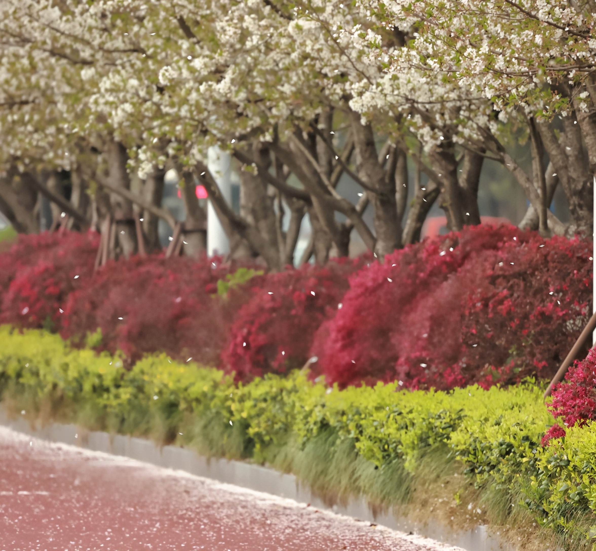 江边樱花大道那飘落的樱花,宛如洁白的雪花,在空中肆意飞舞。它们有的旋转着,像是在跳着一支优美的舞蹈;有的直直地落下,仿佛是迫不及待地想要投入大地的怀抱。每一片花瓣都带着一种决绝的美,即使离开了枝头,也依然绽放着最后的绚烂。