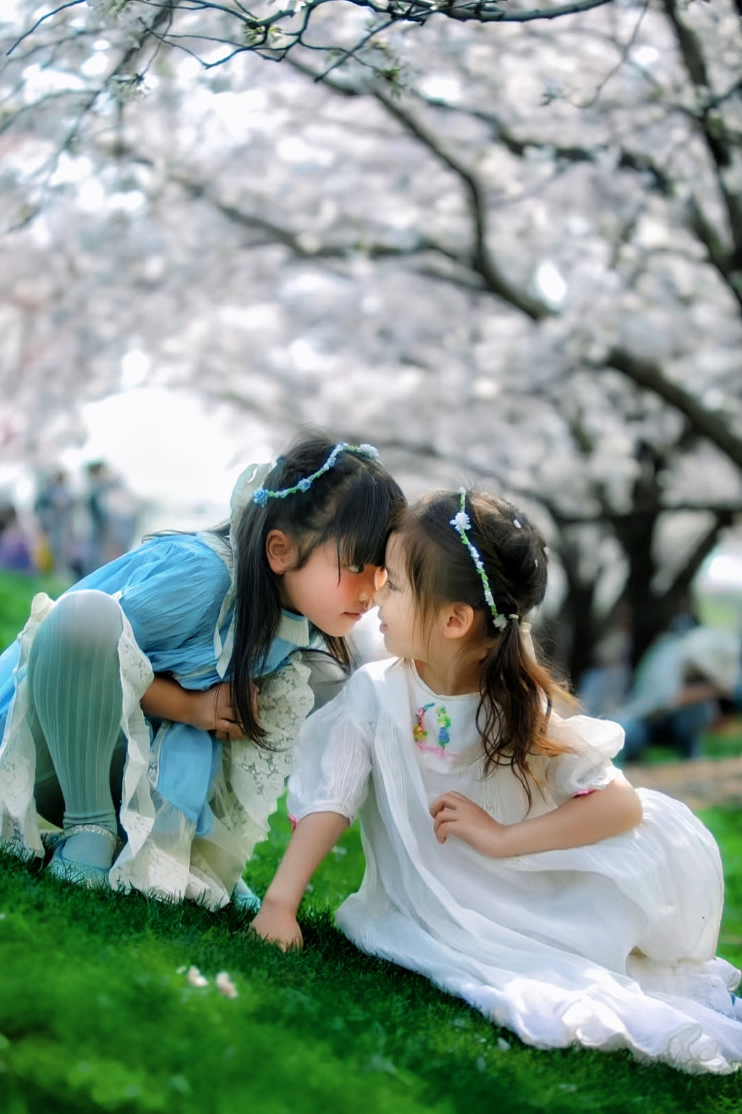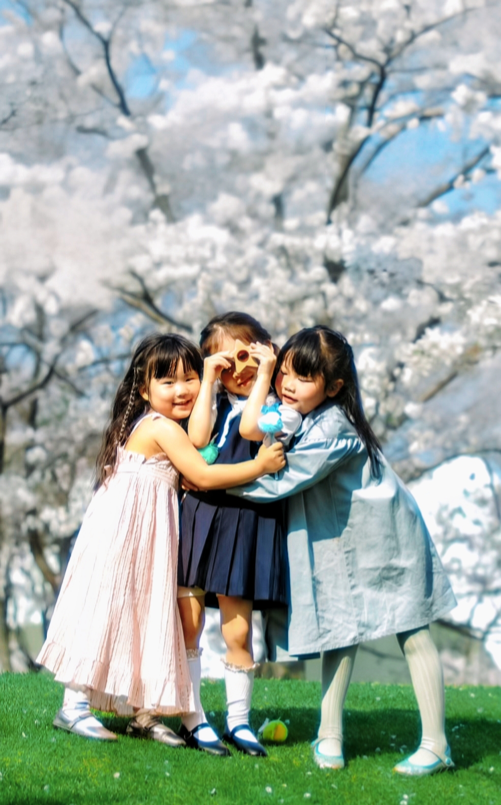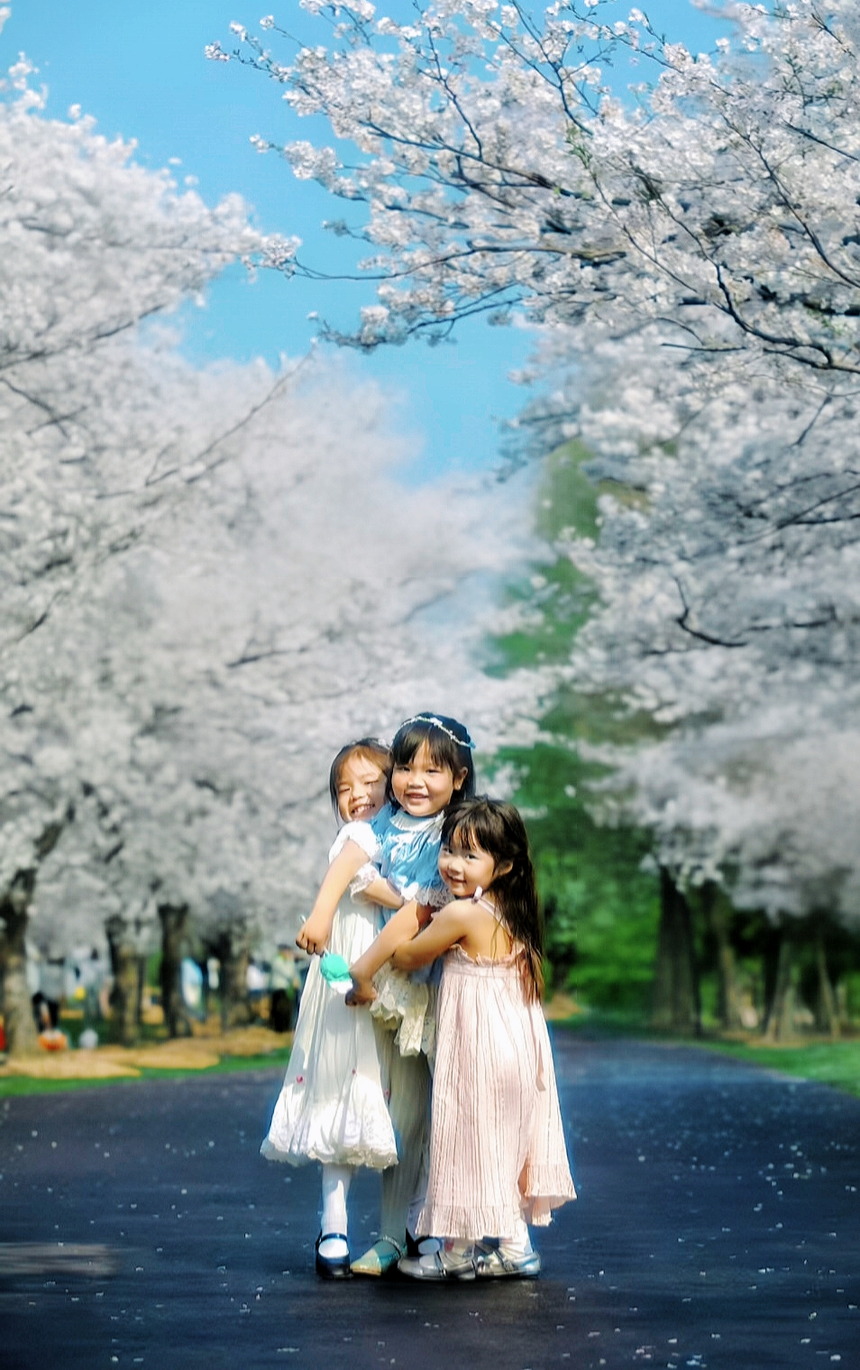 和樱花的最后时光。小朋友们在樱花树下嬉戏玩耍。樱花树下坐着小火车,拍了照片一定超美噢!记录下了她们开心又难忘的时刻呀。