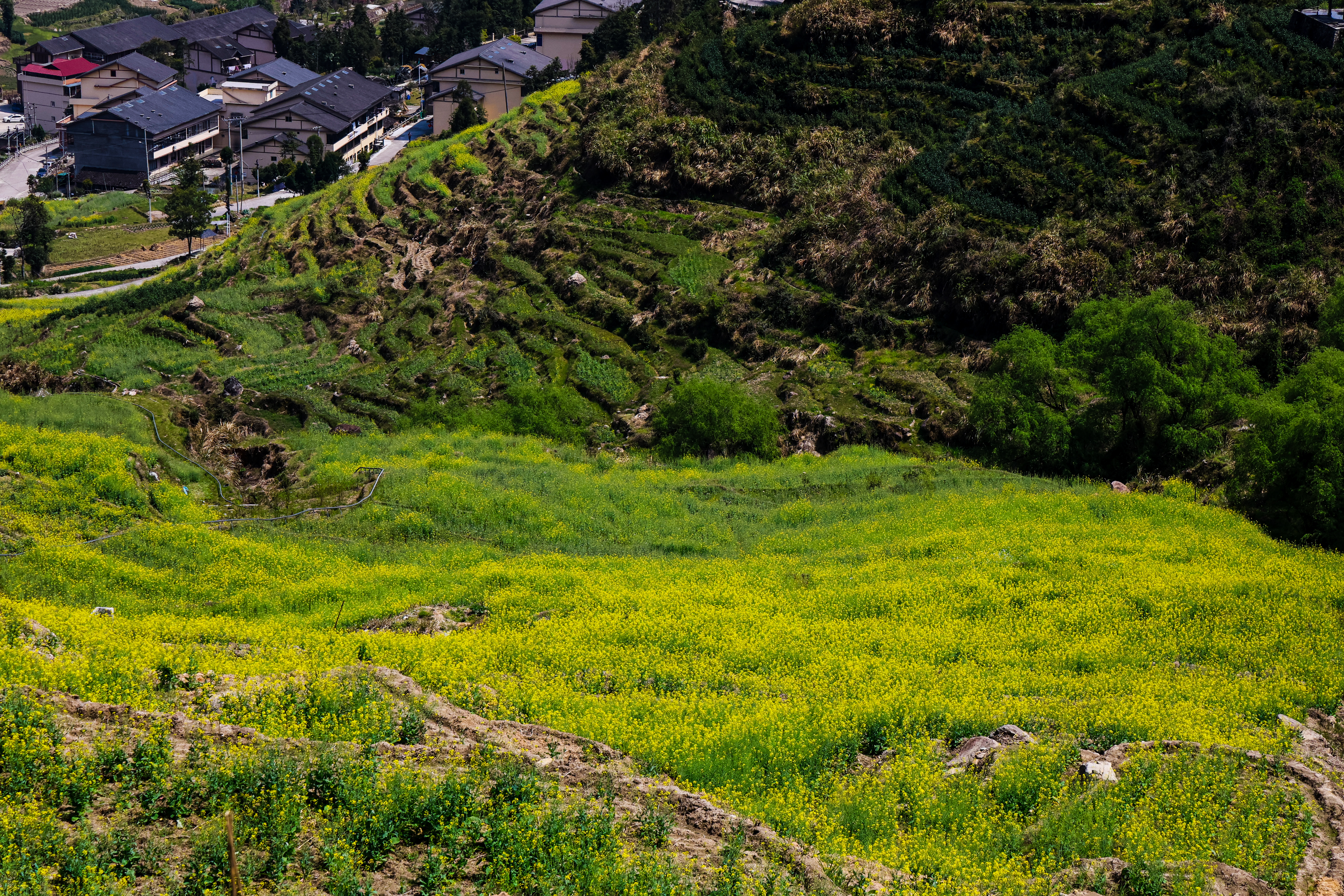 在浙江温州泰顺县严山村的梯田养鸡场,一位新农人为坡地的养鸡场铺上轨道,让小火车穿梭于山坡之间,为鸡群运送饲料,这一场景别具趣味。与此同时,他还巧妙地利用梯田和坡底的地形,种植了油菜花和有机稻田,将这片土地打造成了一个生态循环的田园综合体。