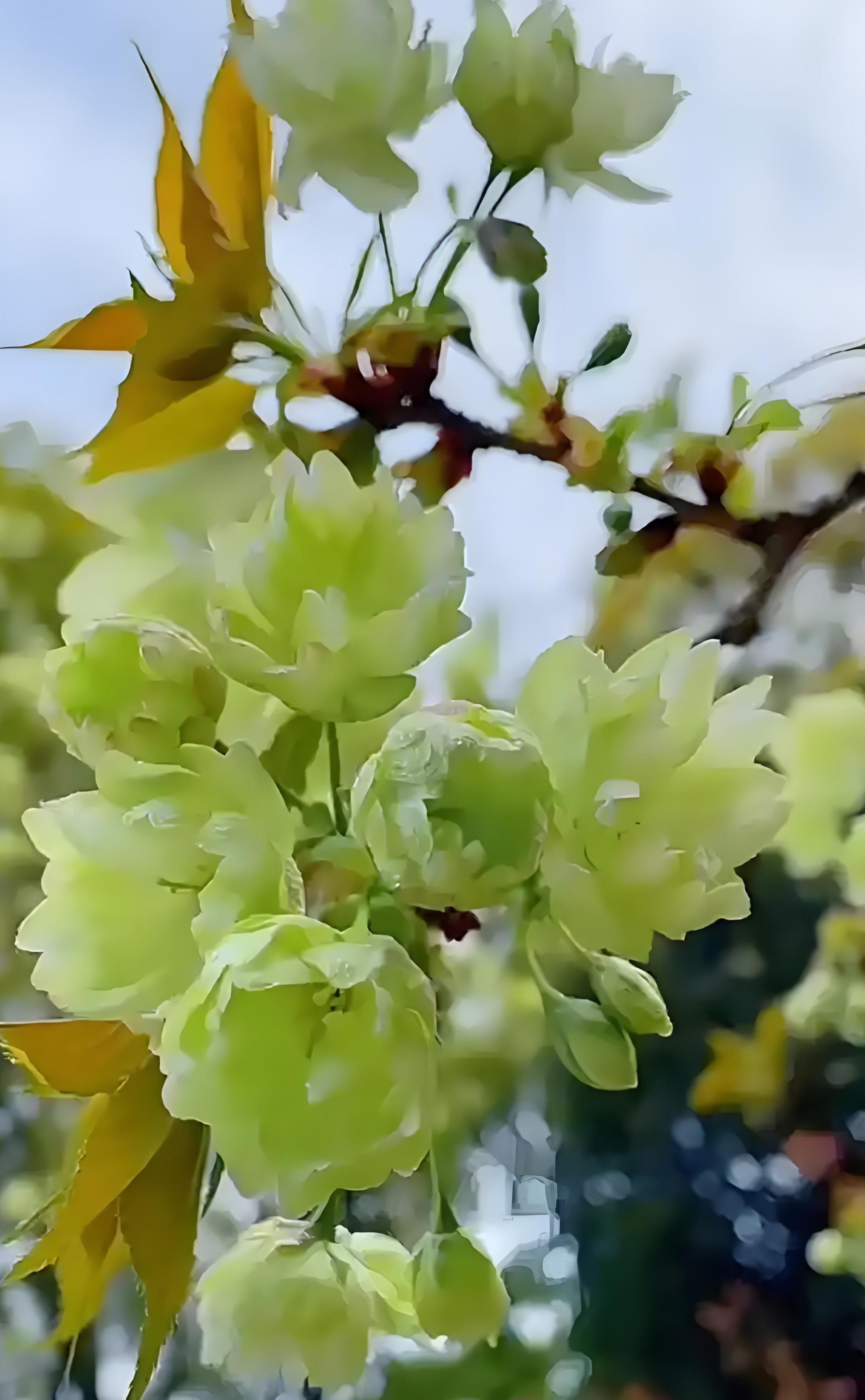 非常少见的绿色的樱花,紫荆花。