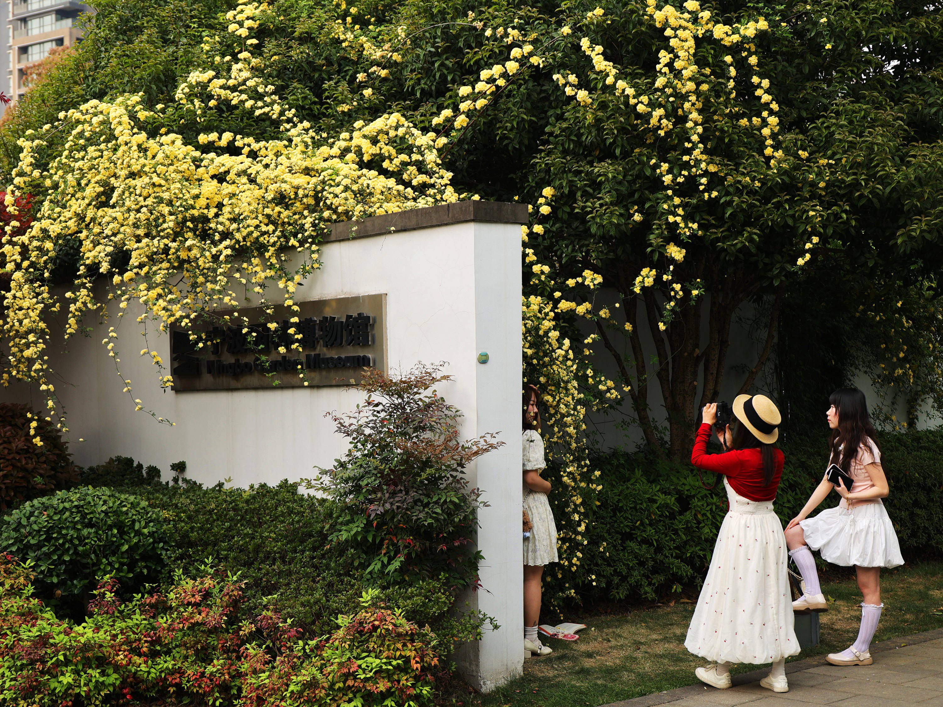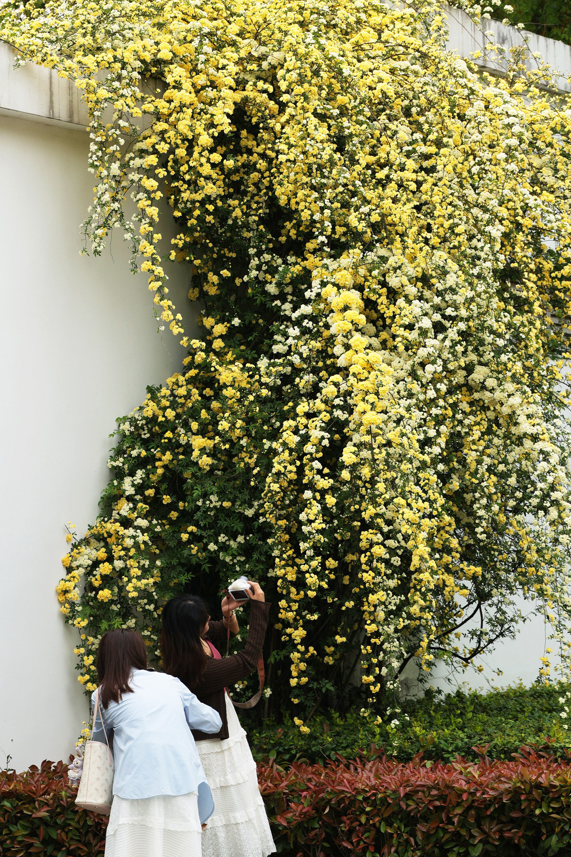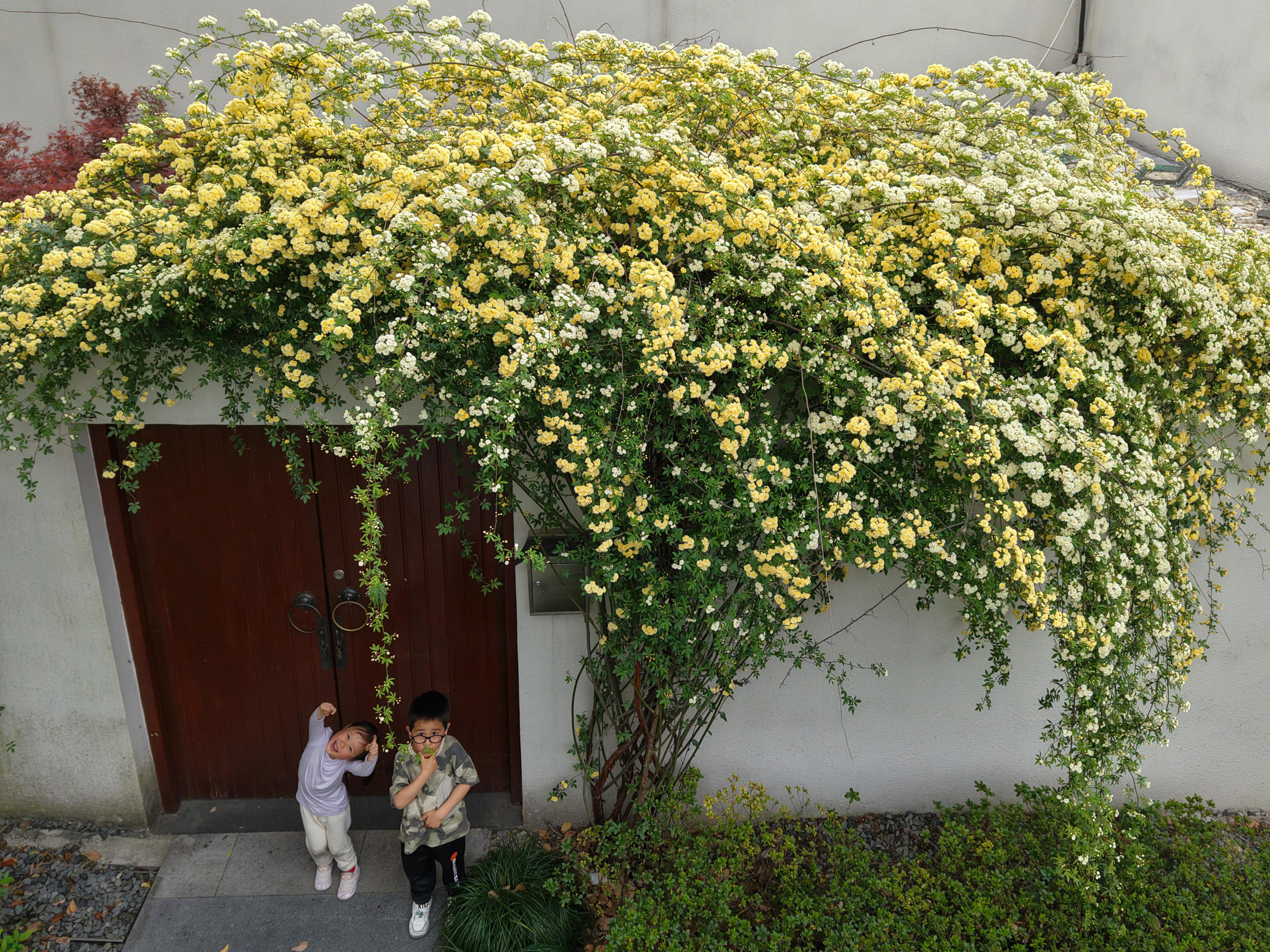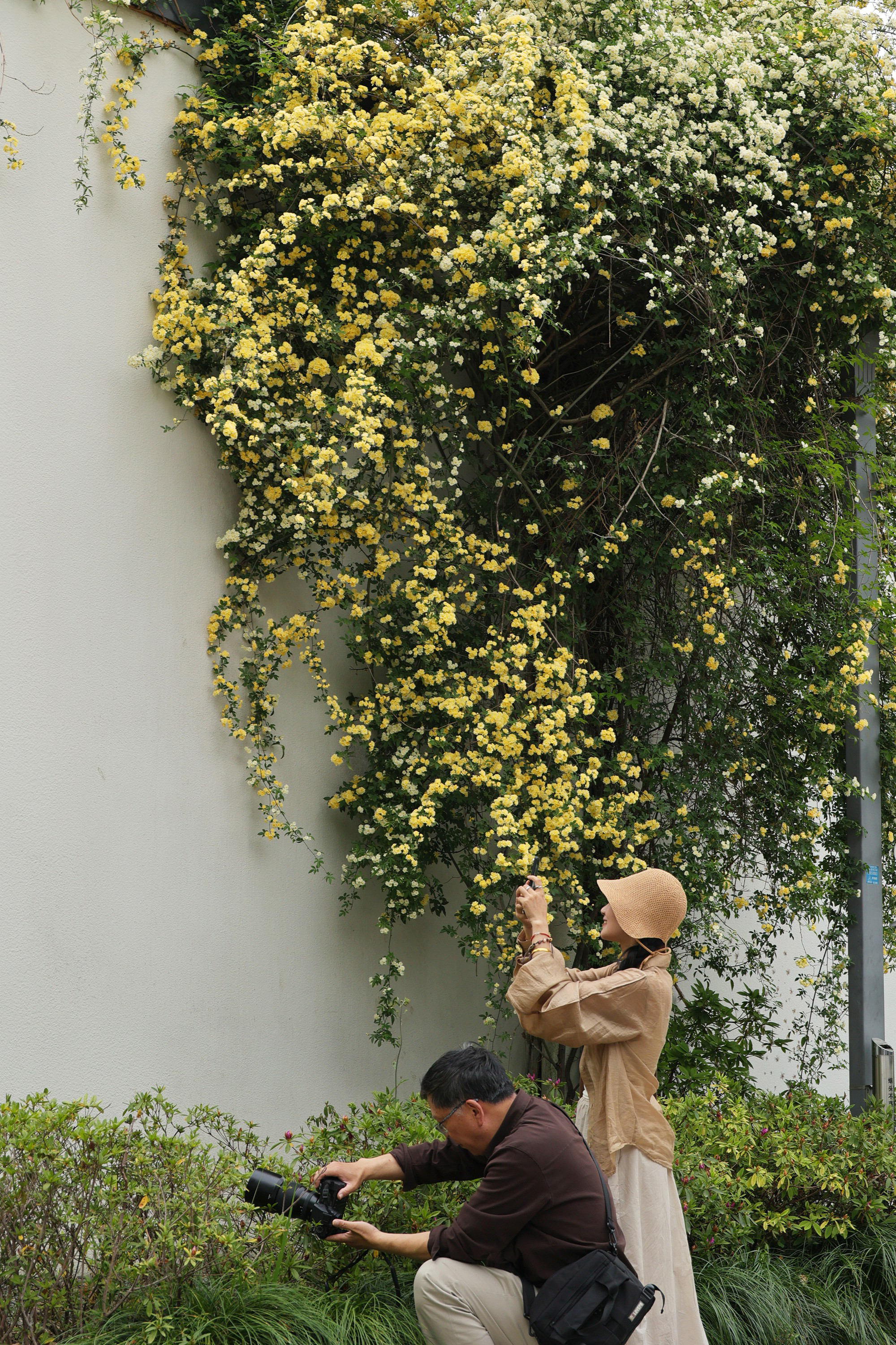 《园林博物馆外墙上木香花绽放,繁花如瀑》繁蕊倒垂帘瑟瑟,绿阴晴散雪纷纷。四月,又到木香花开的时节。近几天,位于绿岛公园的宁波园林博物馆,围墙上如瀑的木香花正热烈绽放,白如雪,黄似霞,繁花似锦,吸引大批观赏者拍照打卡。