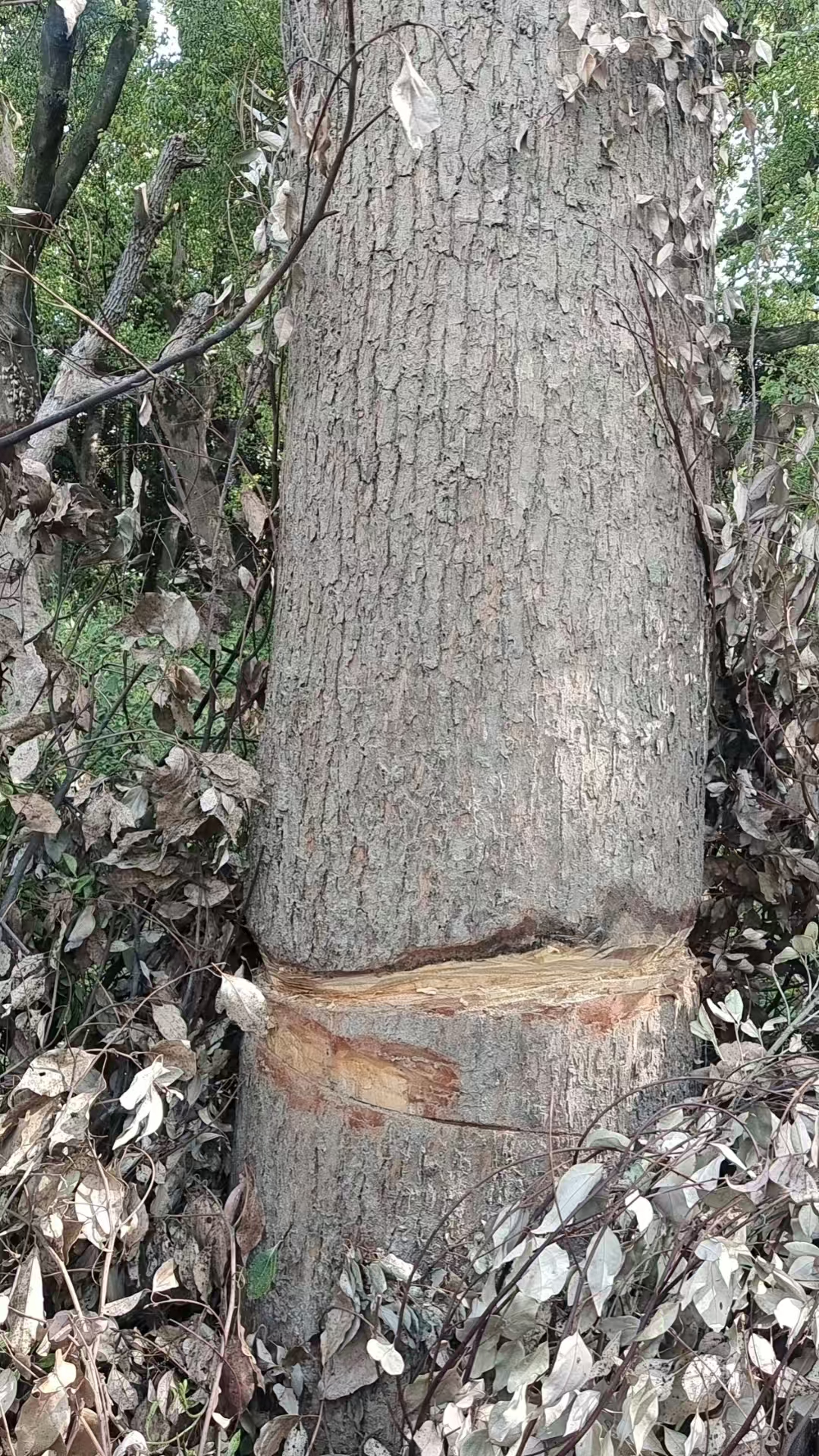 60多年树龄的古树被剥皮,可恶至极!保护古树,人人有责