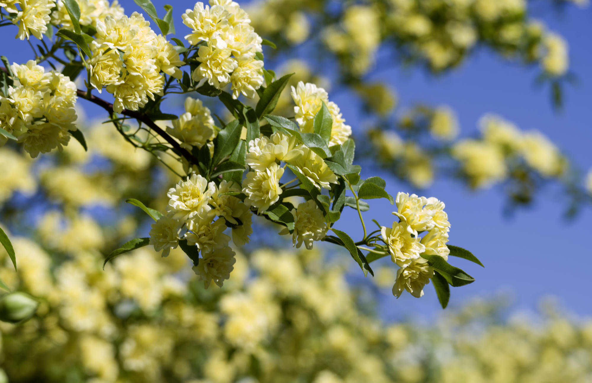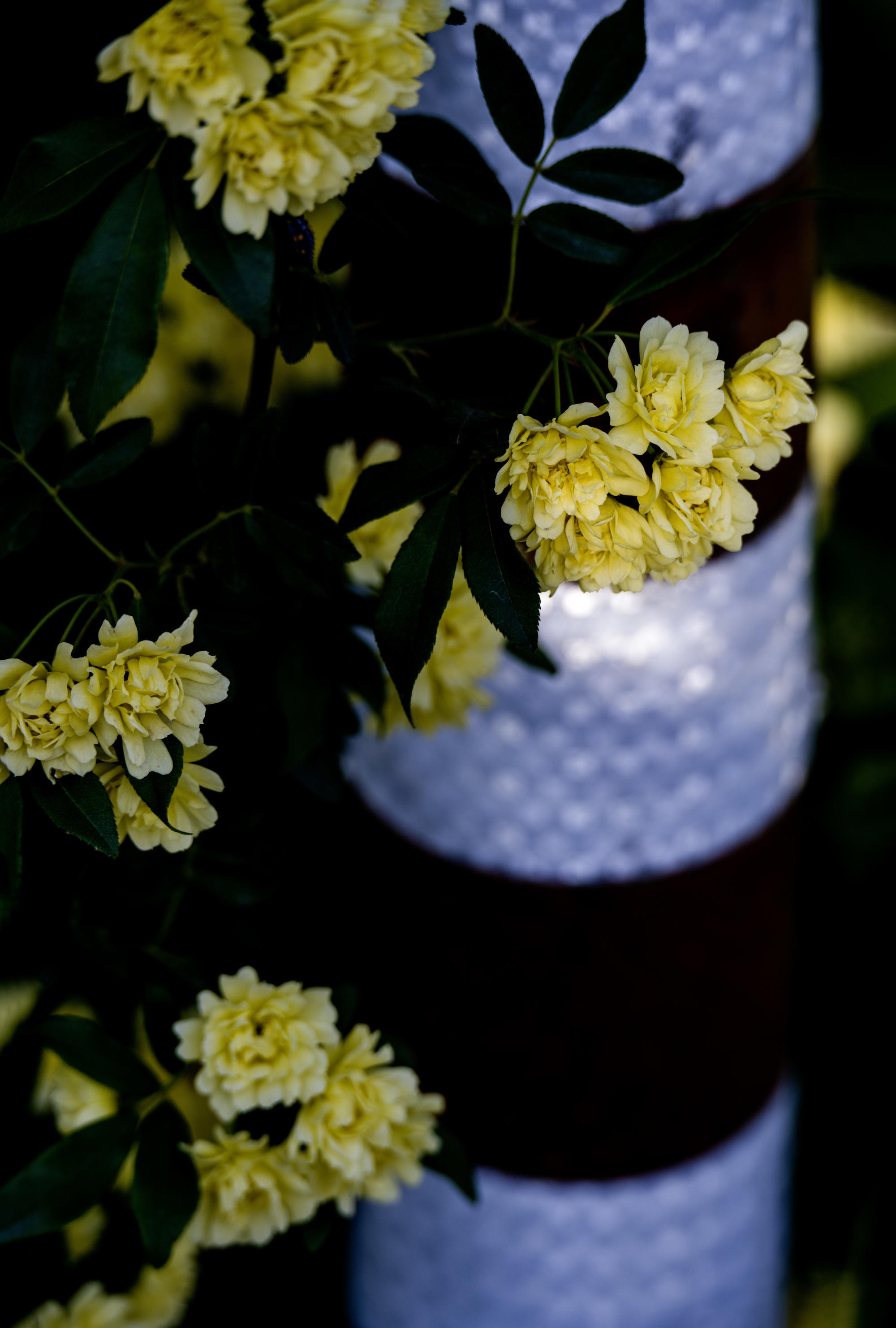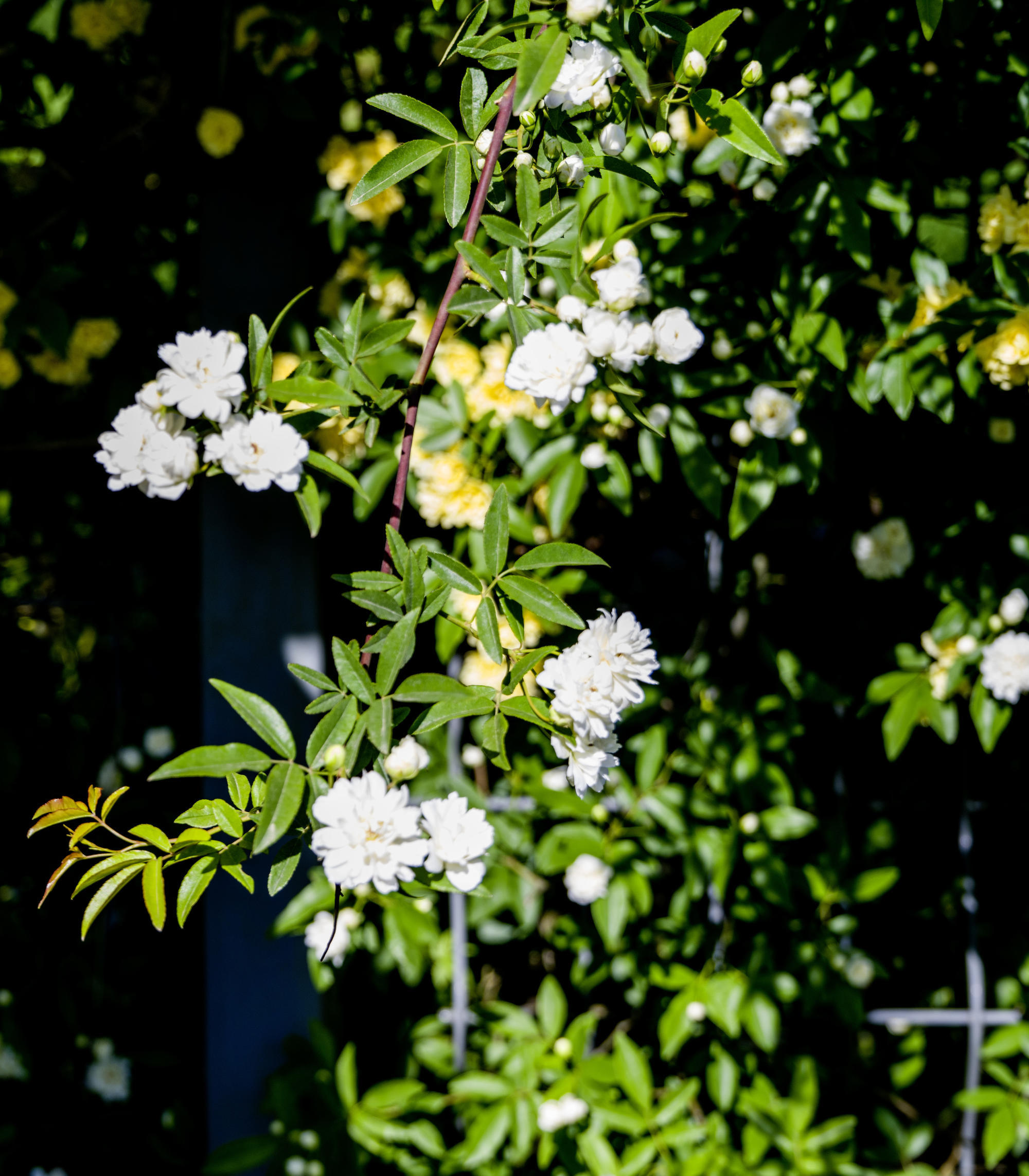 清晨踏上去上渚湖奇幻谷之路,到了门口,天色尚早,大门紧闭,我们便沿着入口缓缓踱步,不经意间被一抹耀眼的金黄与纯白吸引。原来,大门两侧盛开着大片木香花,它们在春日暖阳下熠熠生辉,犹如繁星洒落人间,散发出阵阵令人心醉的幽香。木香花以“我是你的俘虏”为经典花语,象征着对爱情、亲情或友情