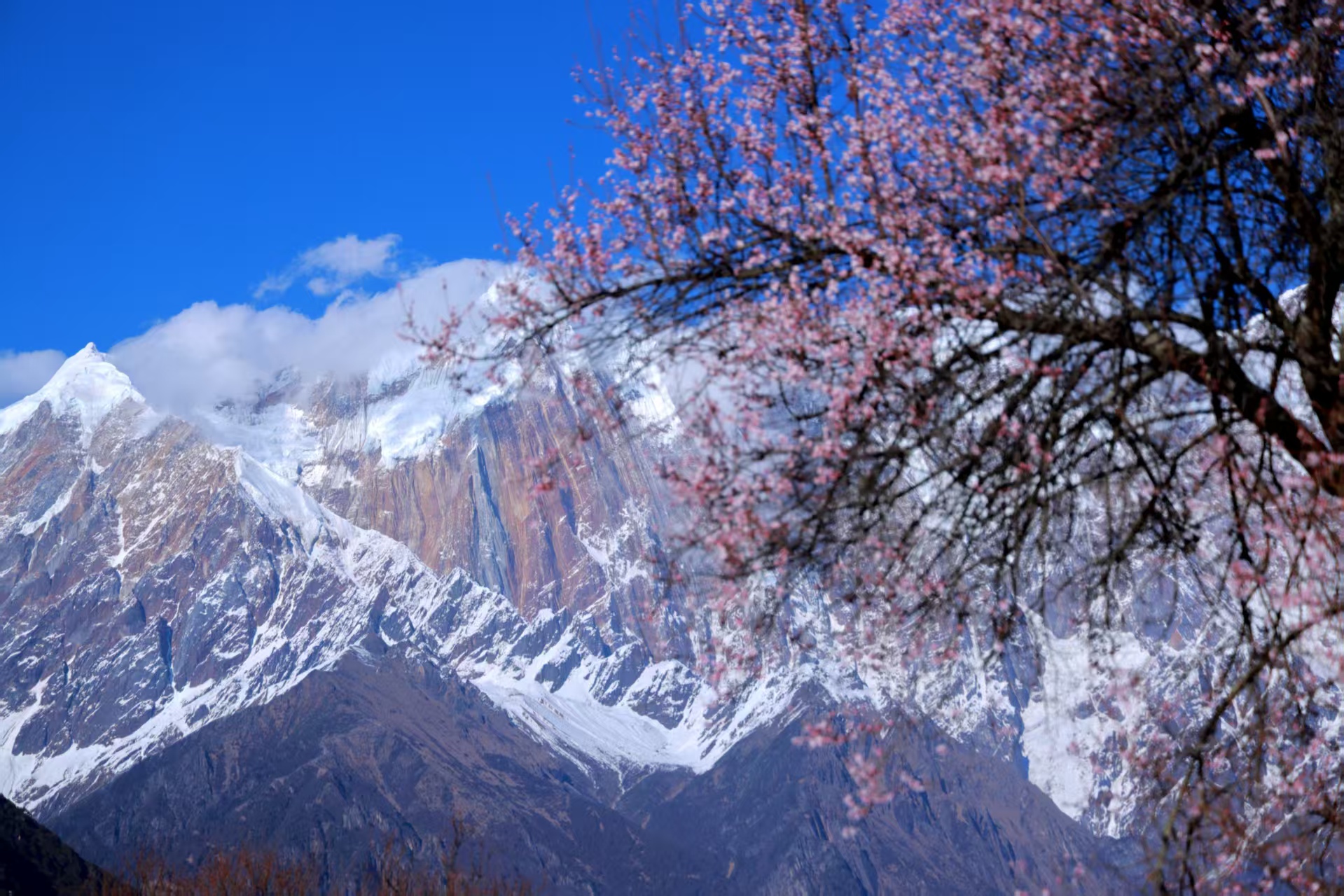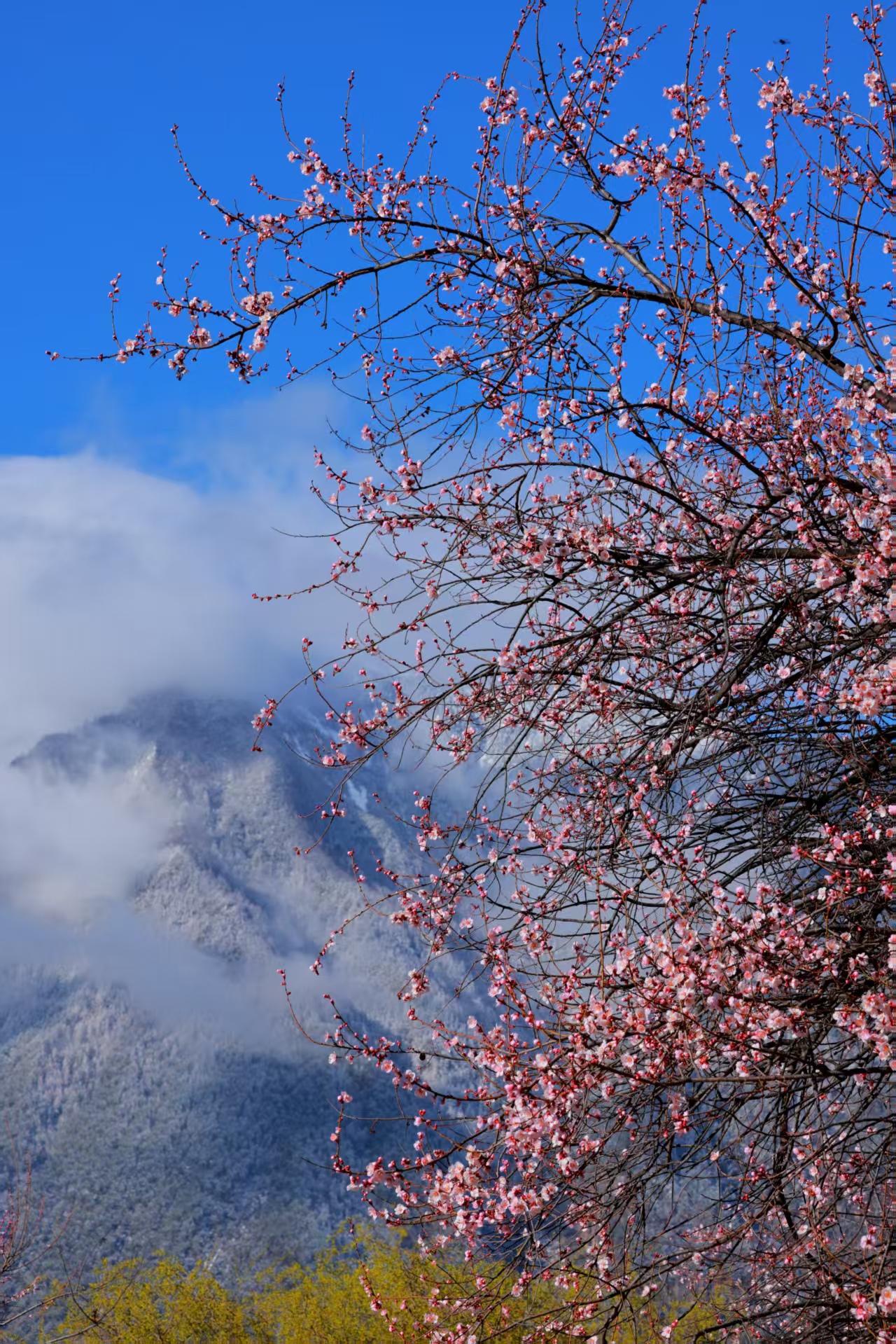 说好桃花开 到拉萨的第二天晚上,藏东一场大雪把一切都改变了,说好看桃花,意外冰雪和桃花同框。嘎啦桃花村雪线很低,索松雄伟壮观的雪山,雅鲁藏布江峡谷成片桃花开。