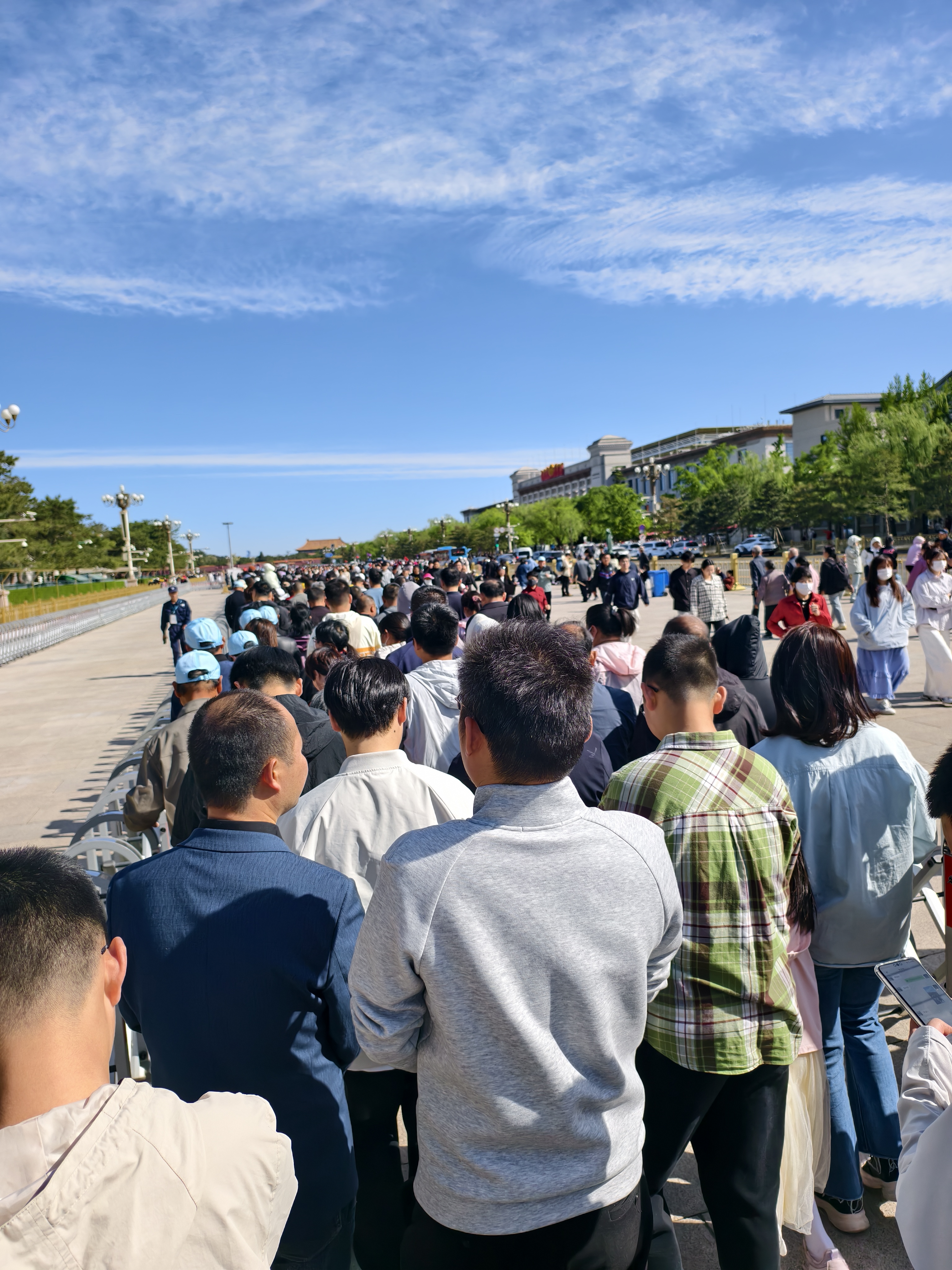 ①早上7点多,我们乘坐绿皮火车抵达北京站,随后直接乘坐地铁前往崇文门的酒店。放下行李后,我们迫不及待地前往天安门广场。 ②北京的天气格外晴朗,天空湛蓝如洗,澄澈透明,只是阳光有些炽烈,防晒和遮阳工具是必不可少的。空气中满是柳絮飞扬,宛如雪花翩翩起舞,原来四月的北京正是柳絮飘飞的季节。气温比杭州略低,风也大一些。 ③8:03,我们从地铁前门大街站出站,却犯了一个小错误:我们从毛主席纪念堂的西门入口进入,而实际上西门是团体检票口,散客个人应该从东门进入。最好的方式从地铁出口穿过地道,经过天安门广场的安检到达东门检票口。 ④在路边便利店买了瓶水后,我们开始了天安门广场的游览。进入广场需要经过三道安检核验,直到8:31才完成全部安检。由于毛主席纪念堂的预约时间是9:30,我们先在广场上拍照打卡,留下美好的纪念,然后慢慢走向毛主席纪念堂的东检票口。9点开始排队检票,人群熙熙攘攘,队伍蜿蜒曲折。进入纪念堂前又经过了三道安检核验。终于进入纪念馆,看到有四个花摊在不同位置售卖菊花。其实不用一开始着急买鲜花,可以在排队时慢慢选购,价格3R。 ⑤9:44,随着人流我们走进庄严肃穆的纪念堂,庄重地脱下帽子,怀着崇敬的心情瞻仰毛主席的遗容。 ⑥当主席的遗体就这样庄严肃穆地呈现在水晶玻璃柜中时,我心中涌起一股难以言喻的敬意与感慨。四周一片寂静,只能听到人们轻轻的脚步声和偶尔压抑的抽泣声。每个人都在用最虔诚的目光凝视着,仿佛时间在这一刻凝固,所有的喧嚣和纷扰都被隔绝在外。 ⑦他的生命虽然已经远去,但他的精神和贡献却永远铭刻在每一个中国人心中。正是他带领中国人民走出黑暗,走向光明,开创了一个崭新的时代 ⑧9:49结束瞻仰。 🛎🛎🛎注意事项:门票需要提前六天预约,每天12:30放票,错过第一次预约,还有12:38,12:50二个时间段。 ⏰⏰⏰没有抢到理想的时间,先抢后面的日期,到时改签就可以,这个很重要。我们也是通过这种方式抢到门票, ☎️☎️☎️另外一次不要填太多联系人,之前我抢四人票总是提醒余票不足,后来改成一次 3张,一次1张,顺利抢到门票,也改签到理想的日期。
