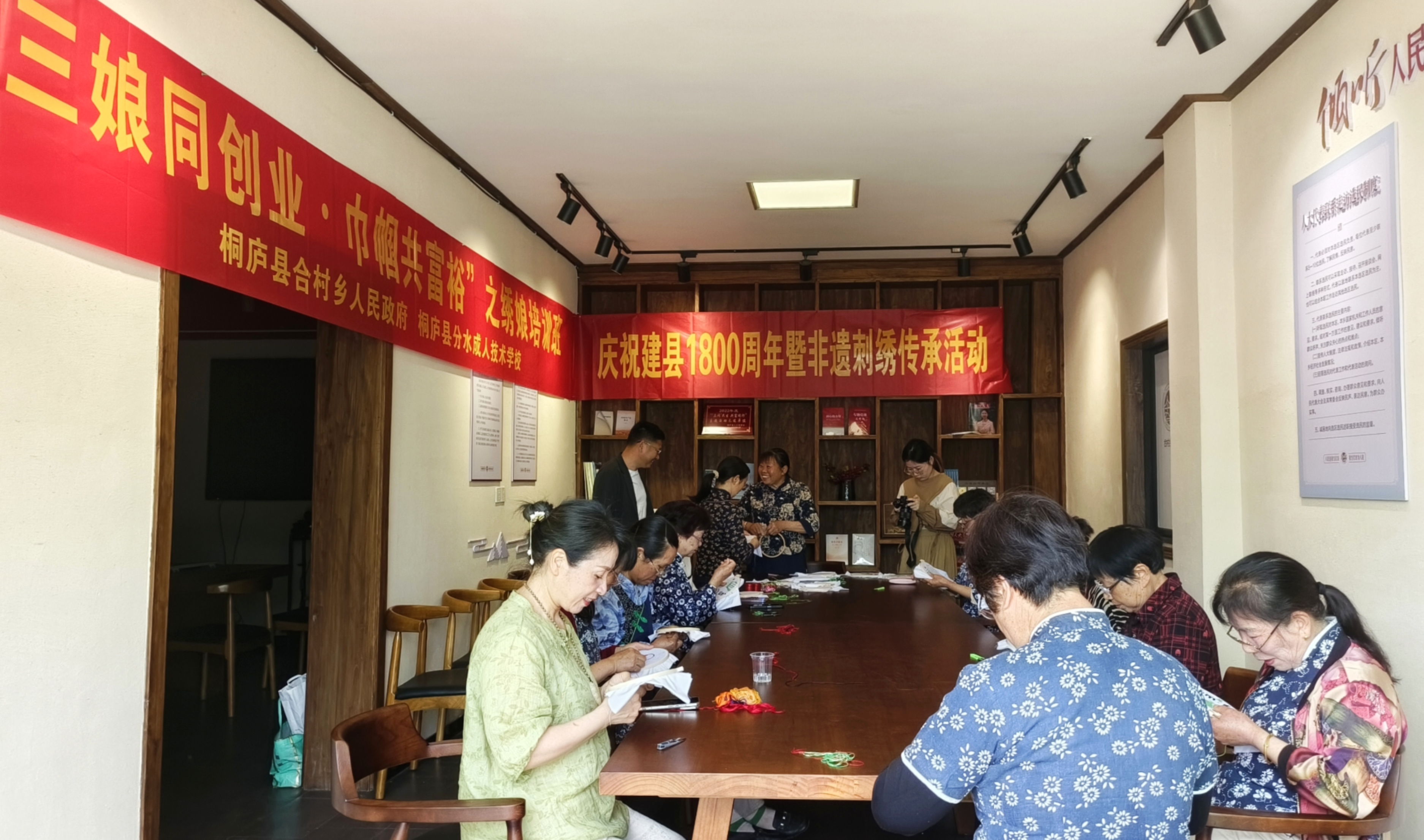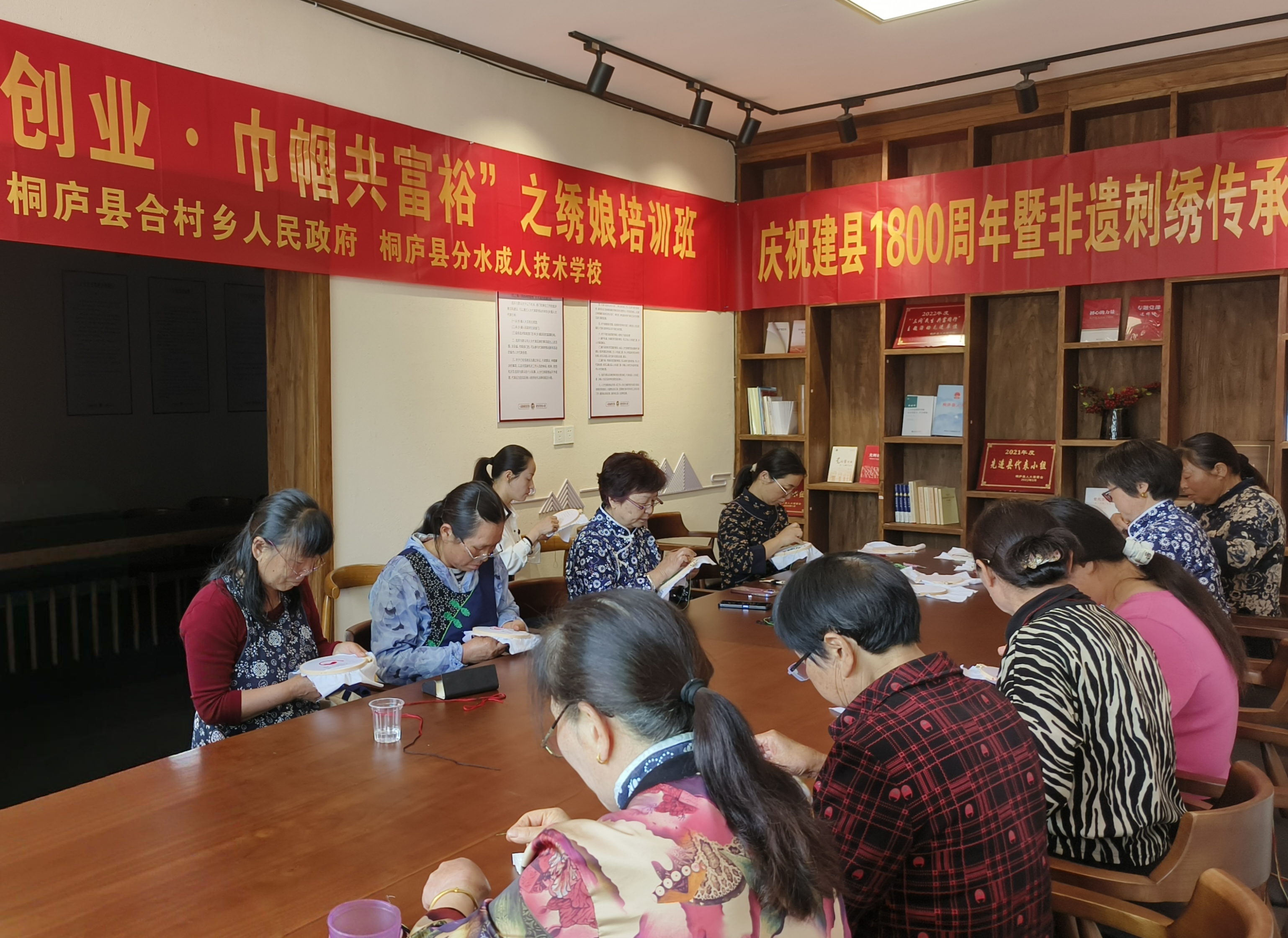 #潮闻小记者# 桐庐合村:“三娘同创业 巾帼共富裕”之绣娘培训,献礼桐庐建县1800年暨非遗传承活动。(分水成人文化技术学校承办)