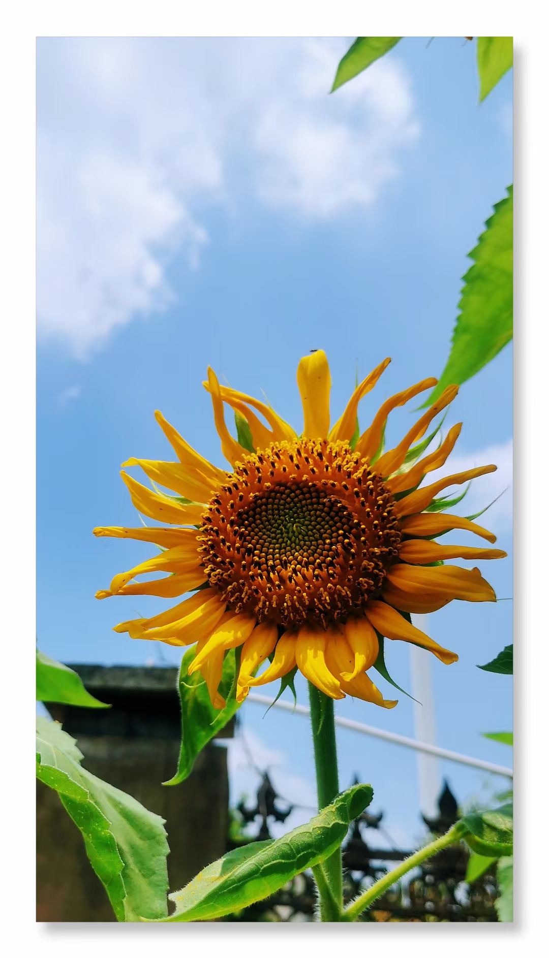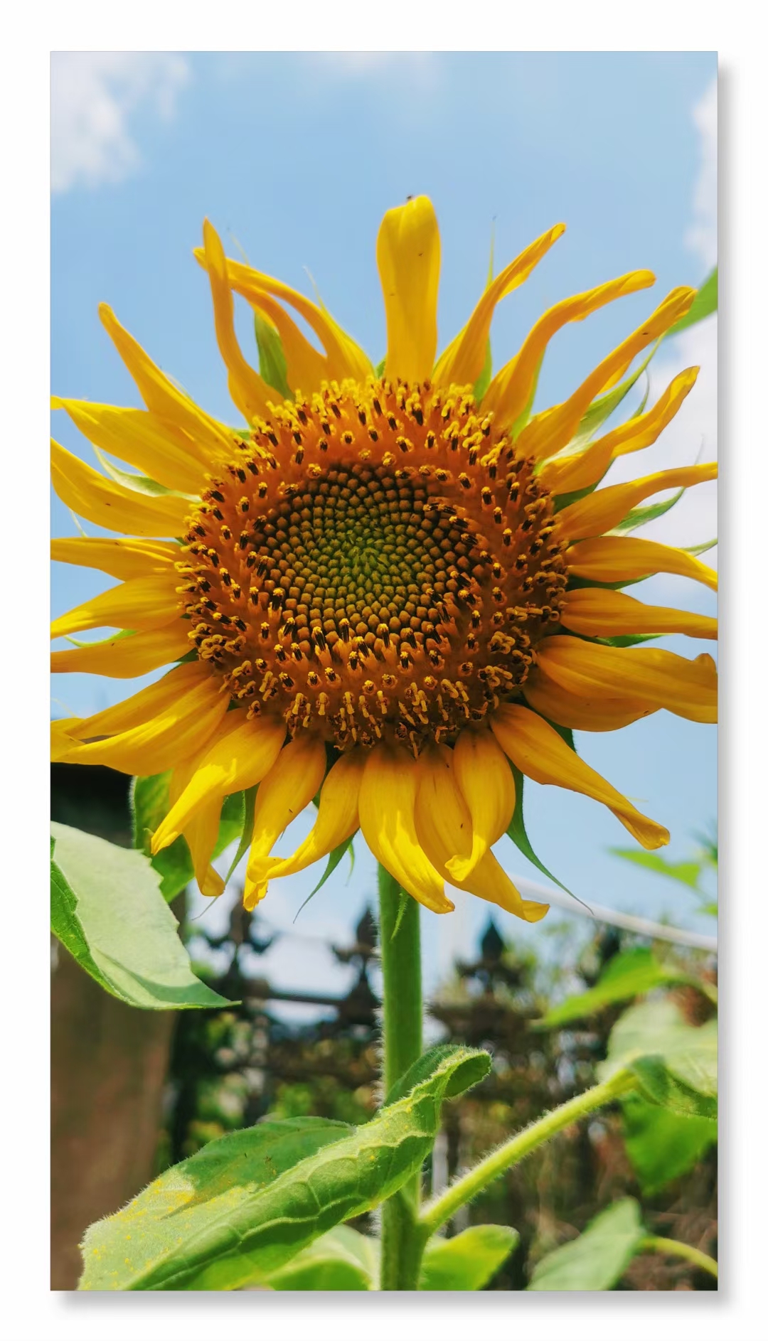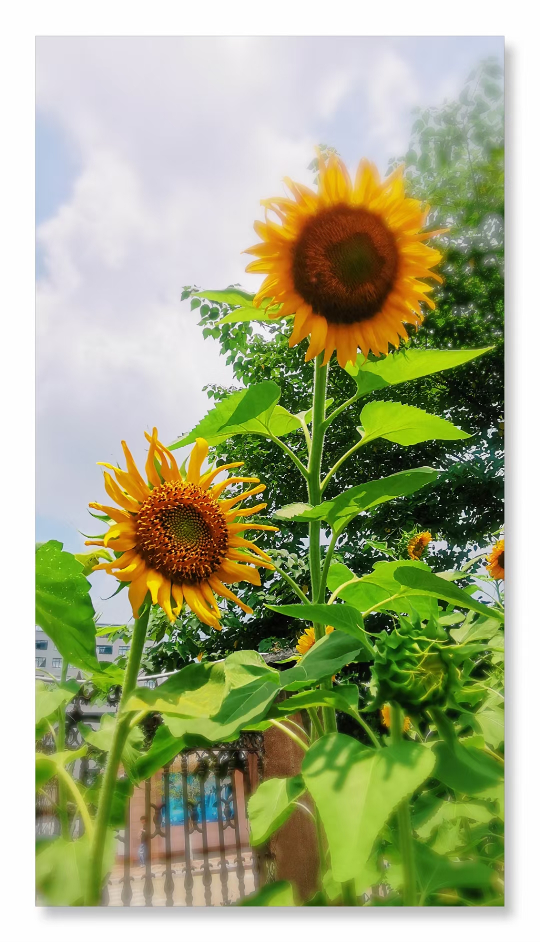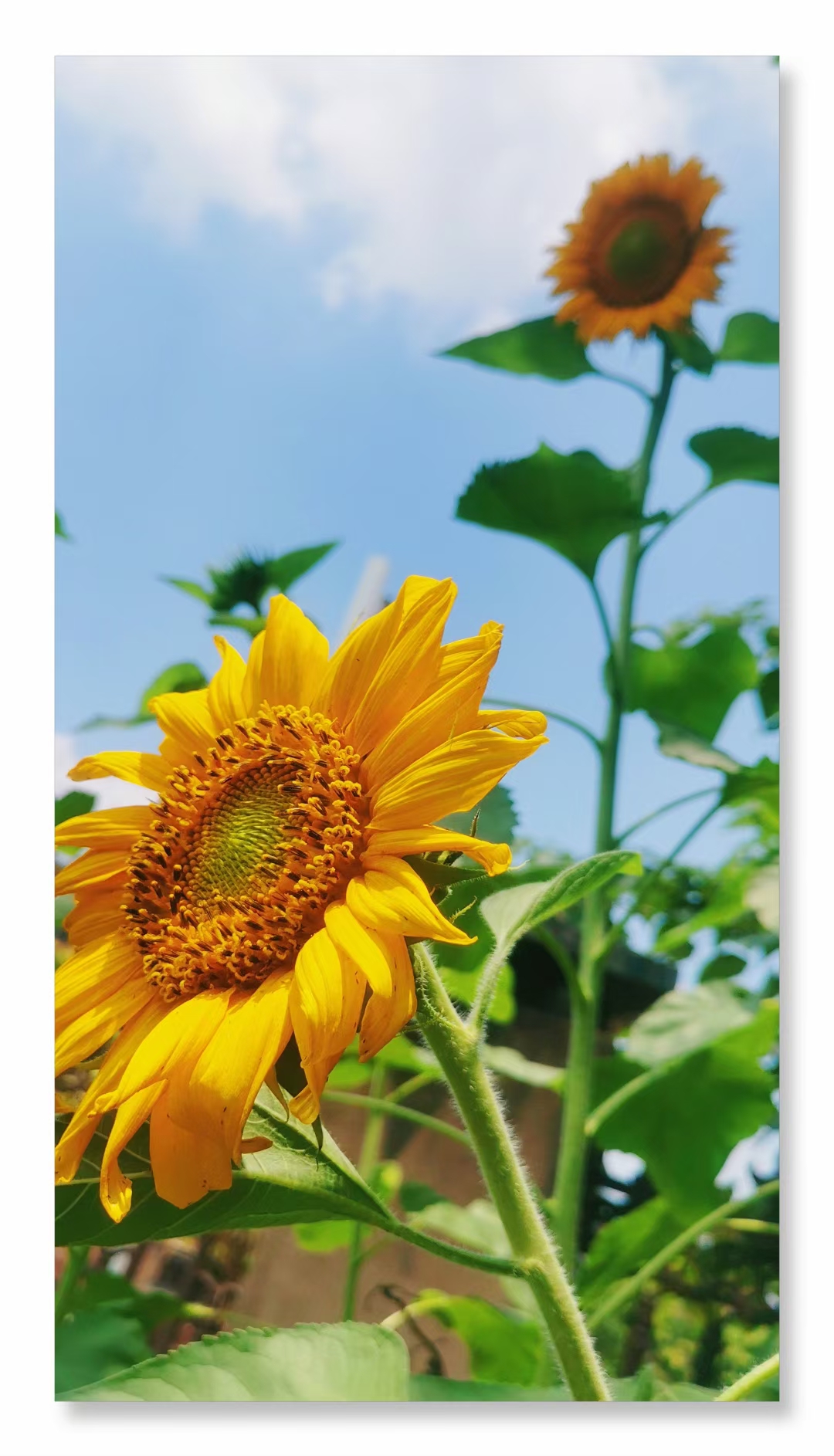 夏日晴天,向日葵盛开正艳,黄色花瓣在阳光下闪耀,绿叶蓝天相映成趣。背景模糊,细节却超清晰,这生机勃勃的画面,简直是自然之美的最佳诠释!